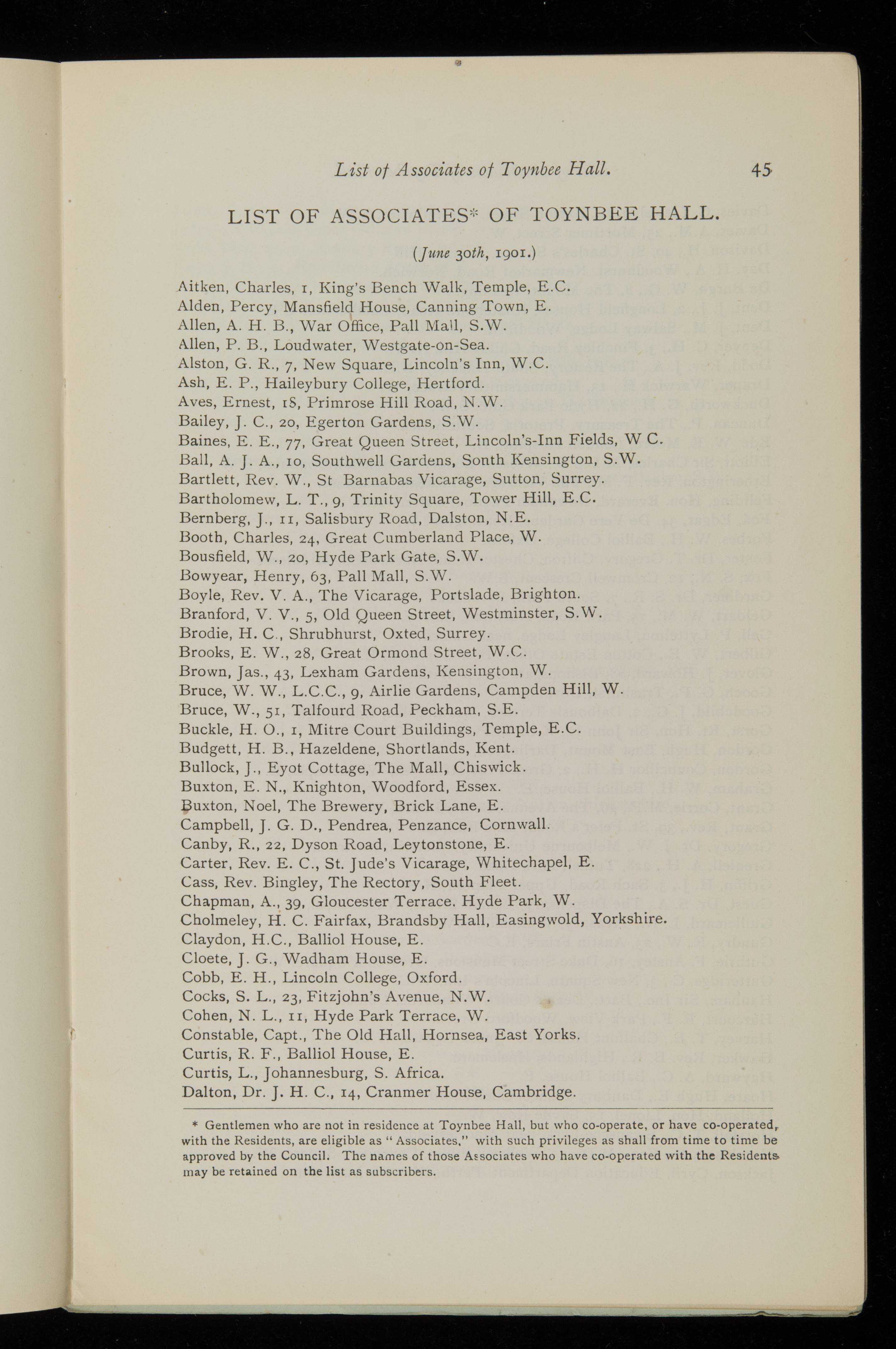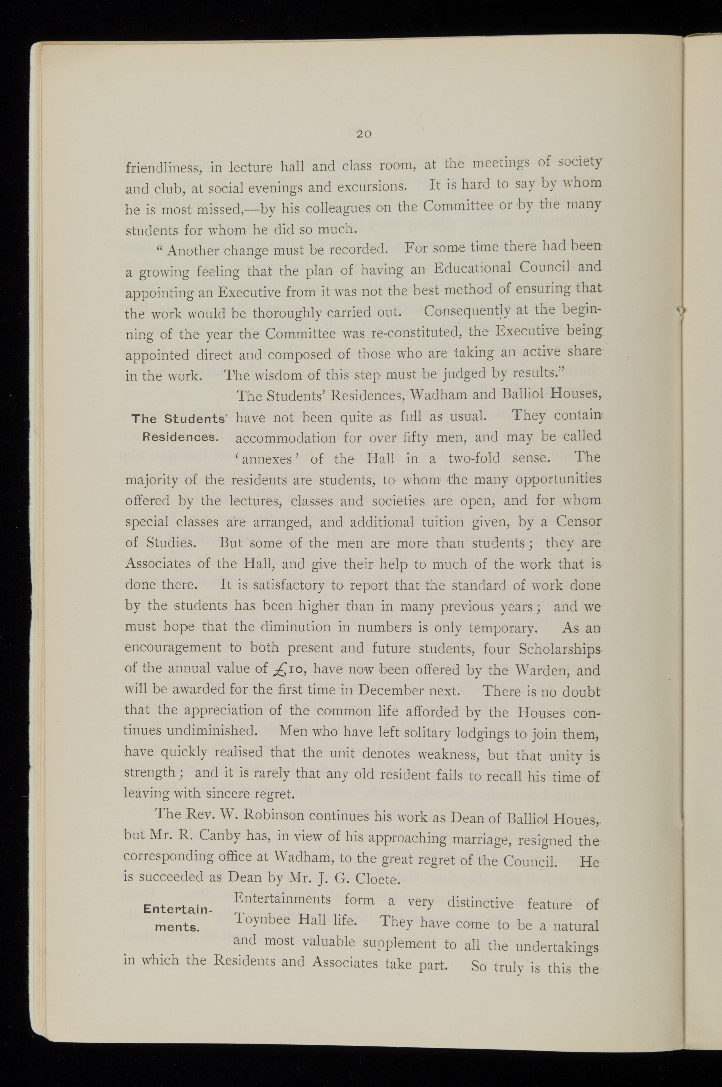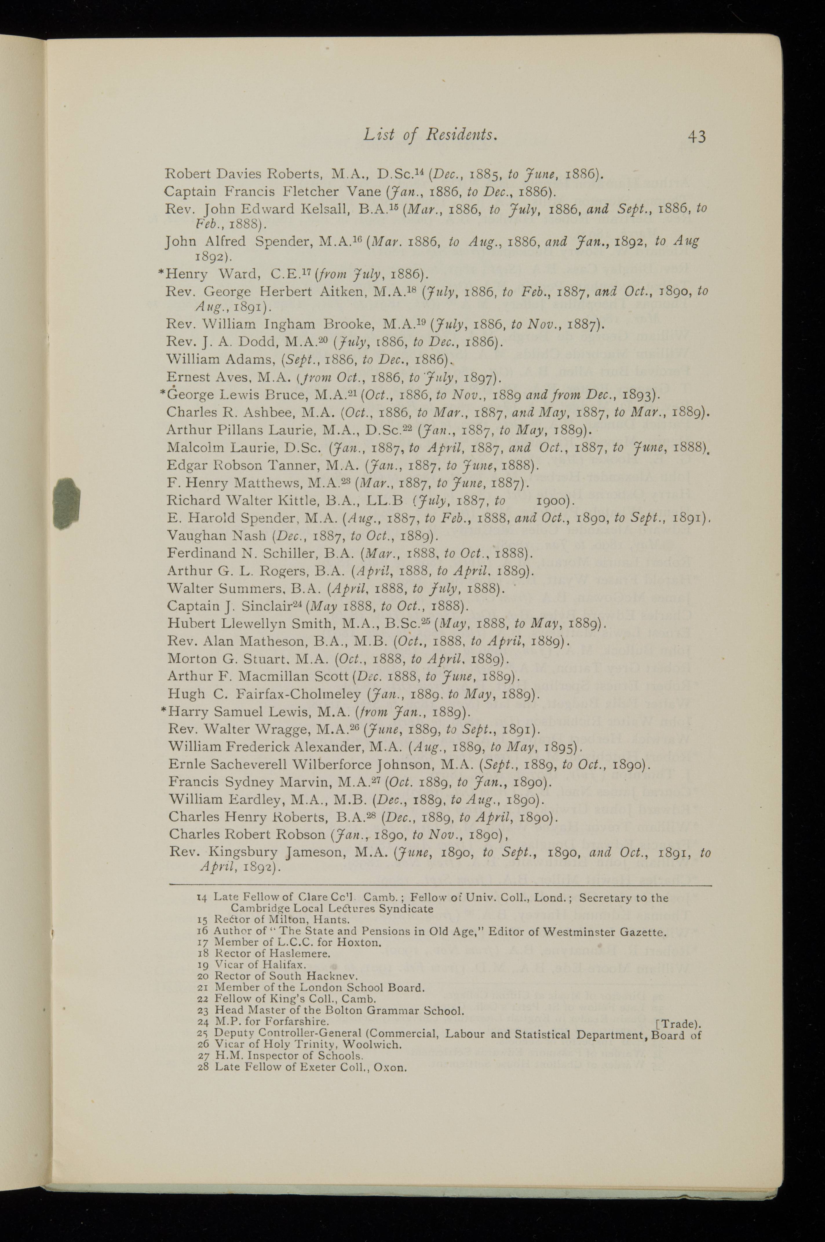 Contains lists of members, residents, articles, descriptions of events and records of classes, lectures and soceties. Includes financial records and reports from universities. 1 volume