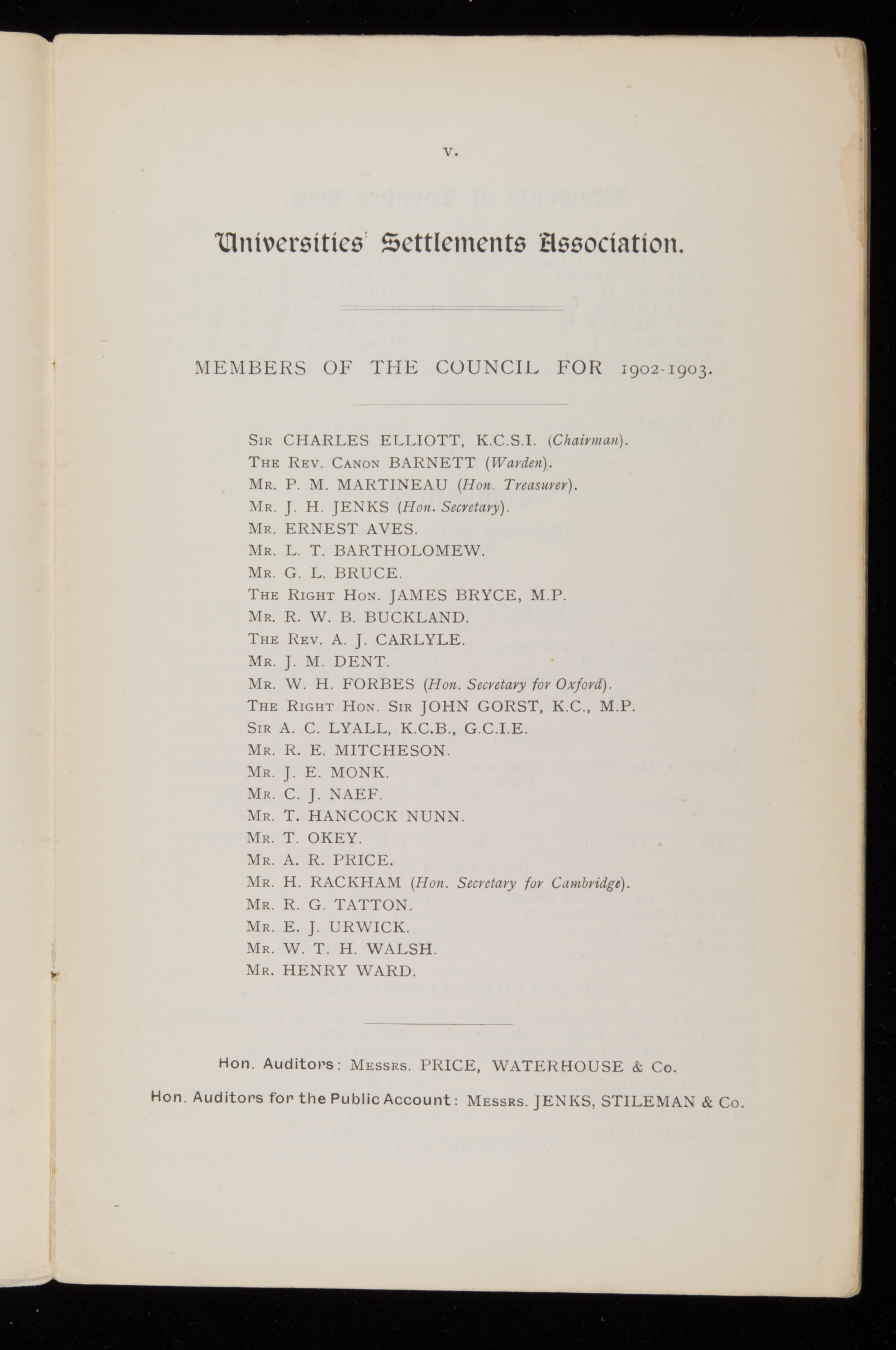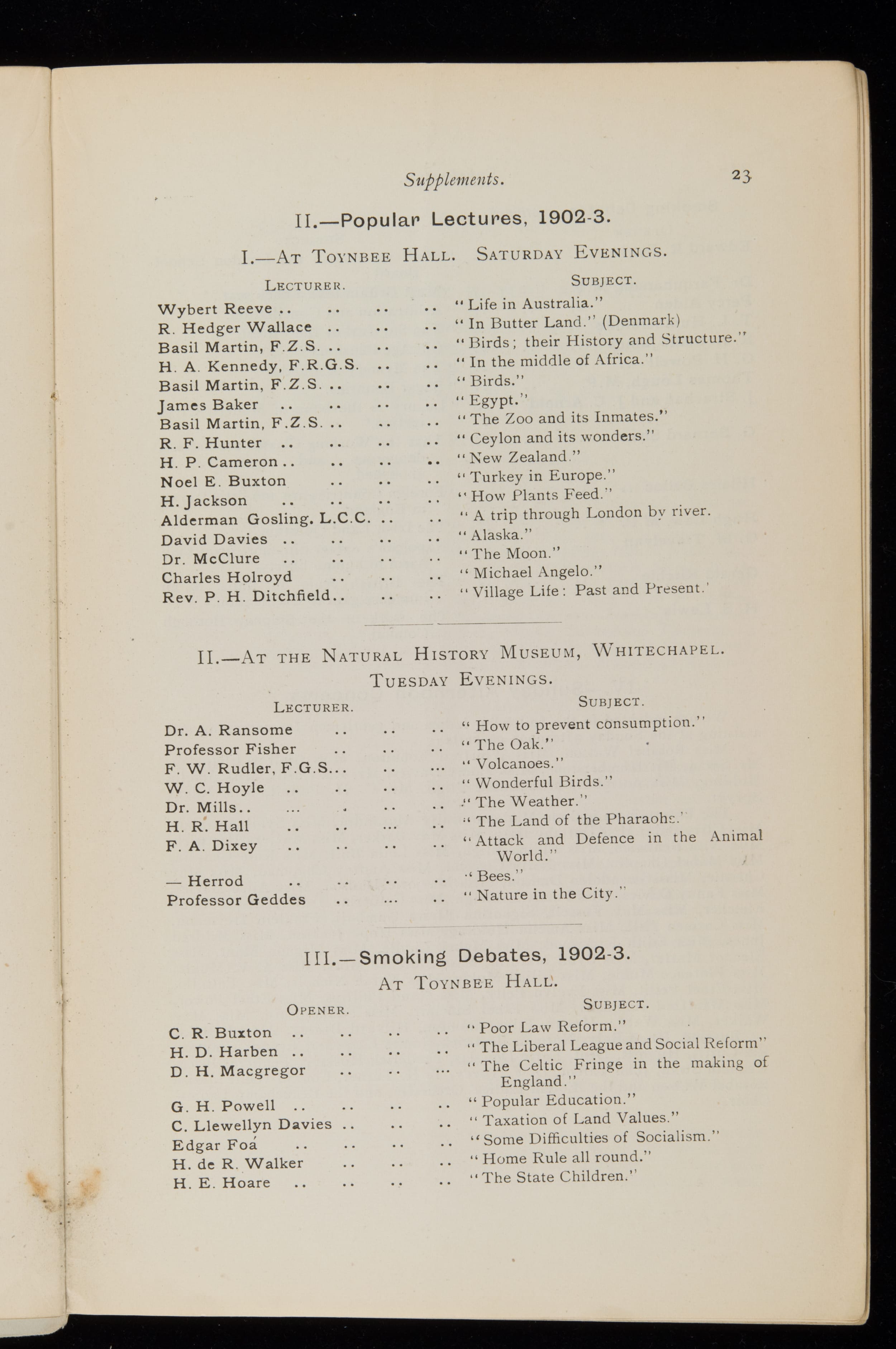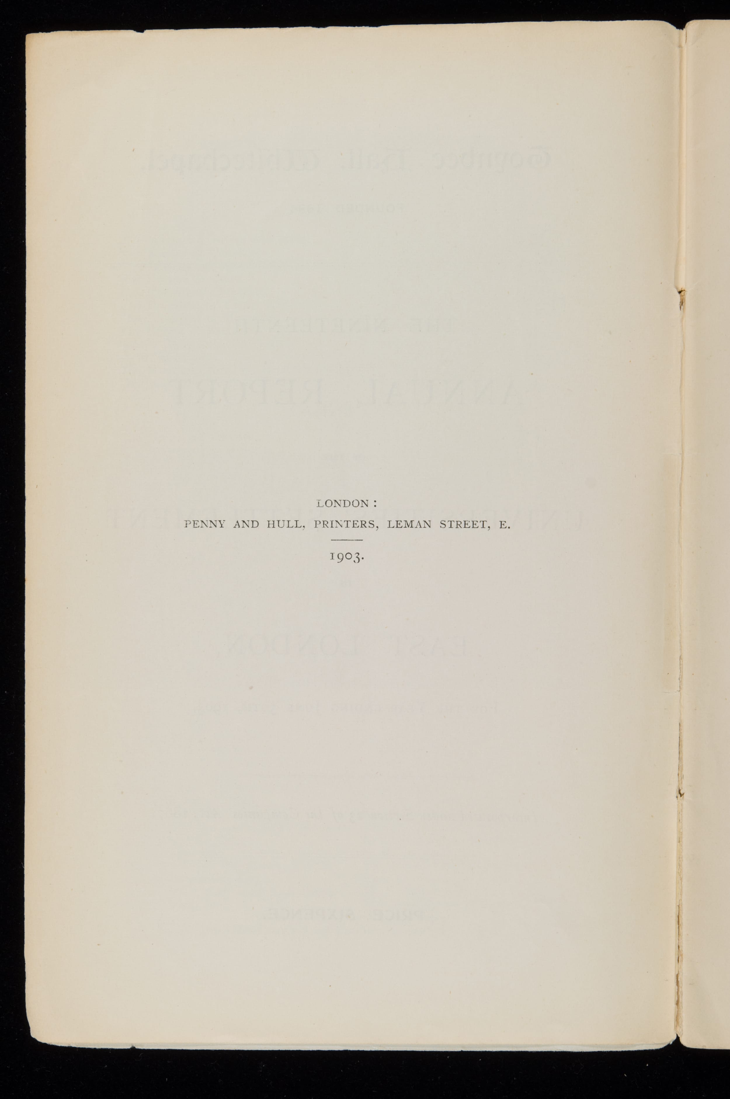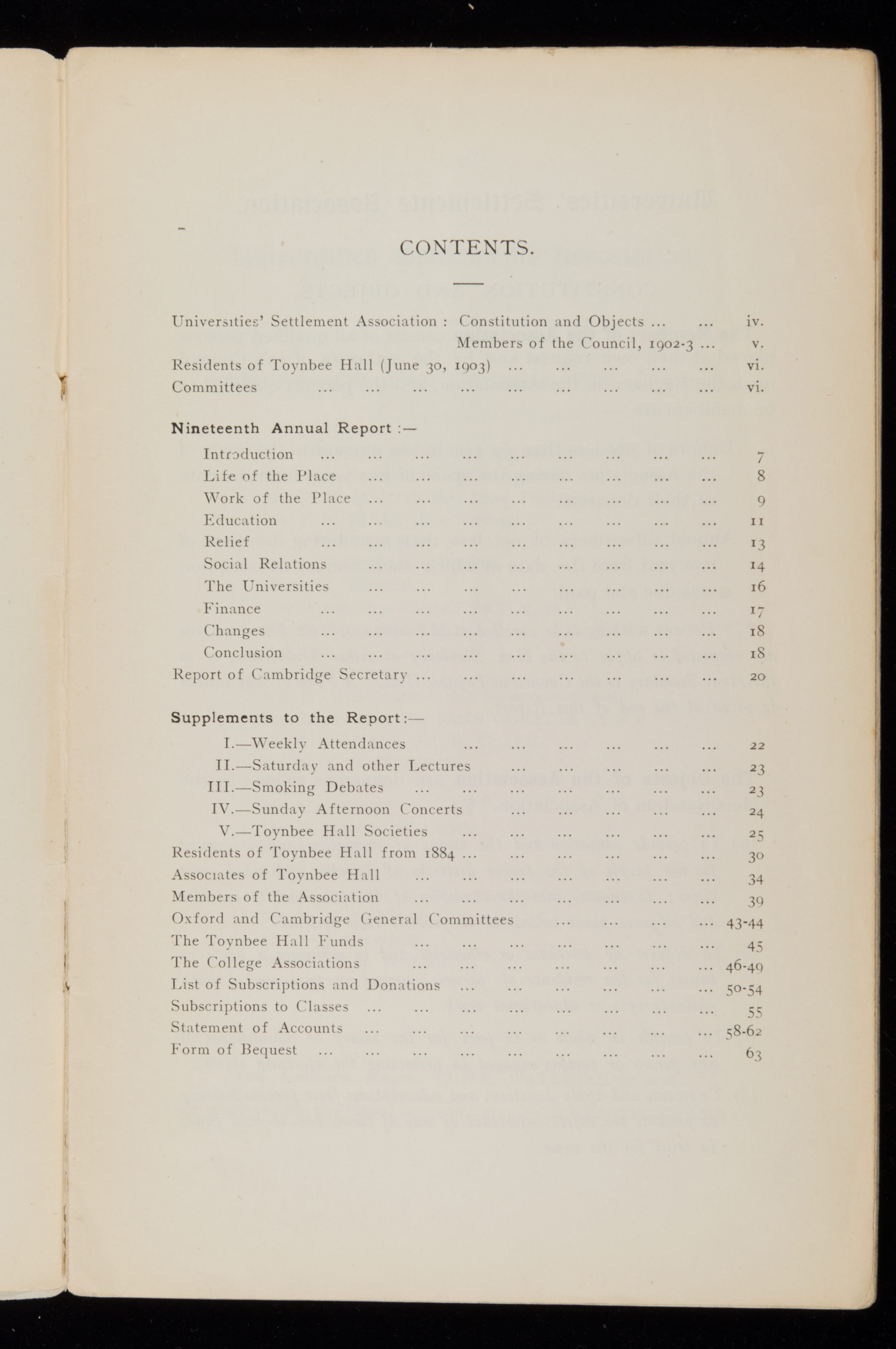 Toynbee Hall Annual Report 1903