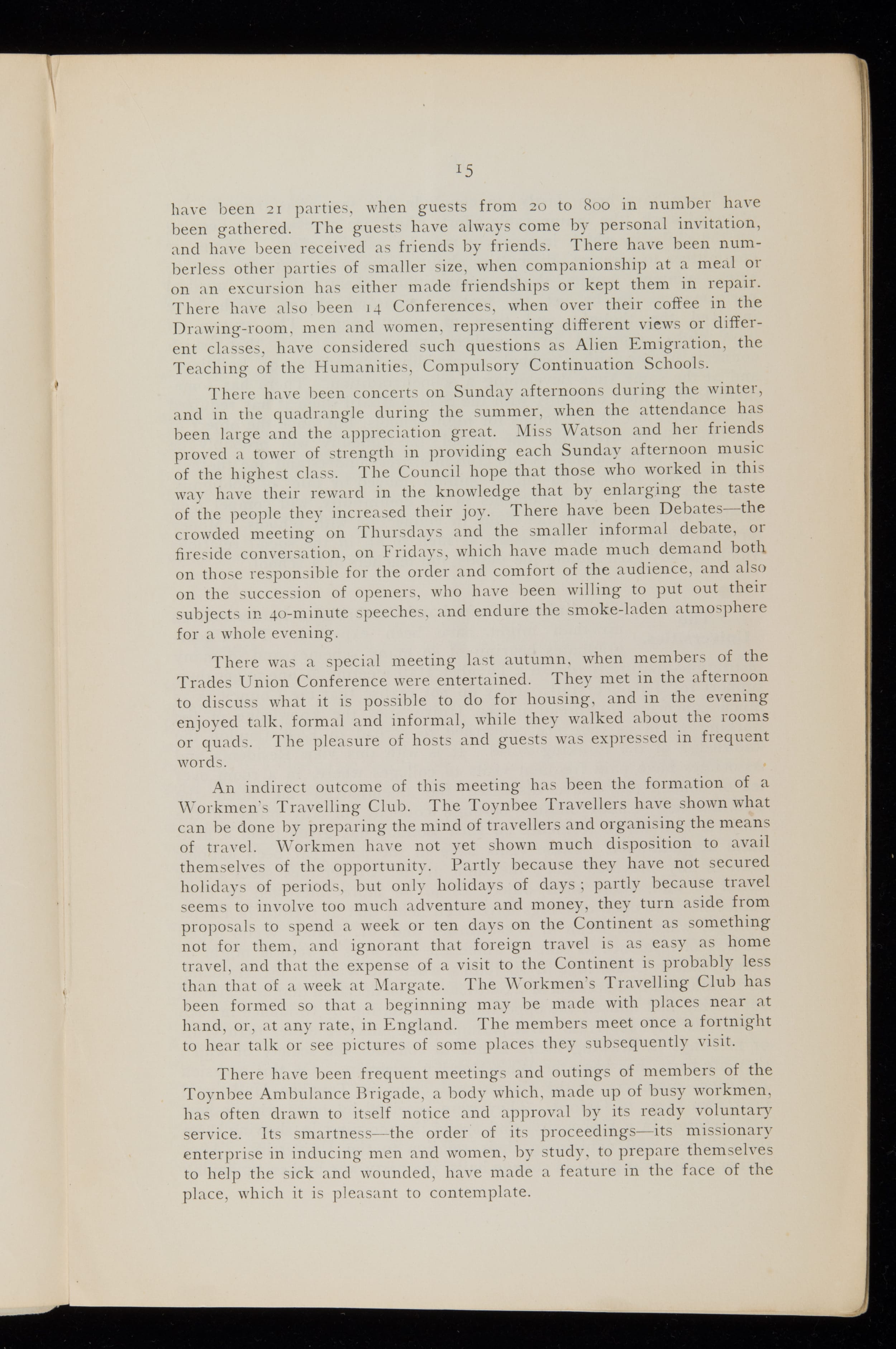 Contains reports of activities, classes, lectures, clubs, socities and lists of residents and members. Includes financial reports, George Bernard Shaw led a smoking debate. 1 Volume