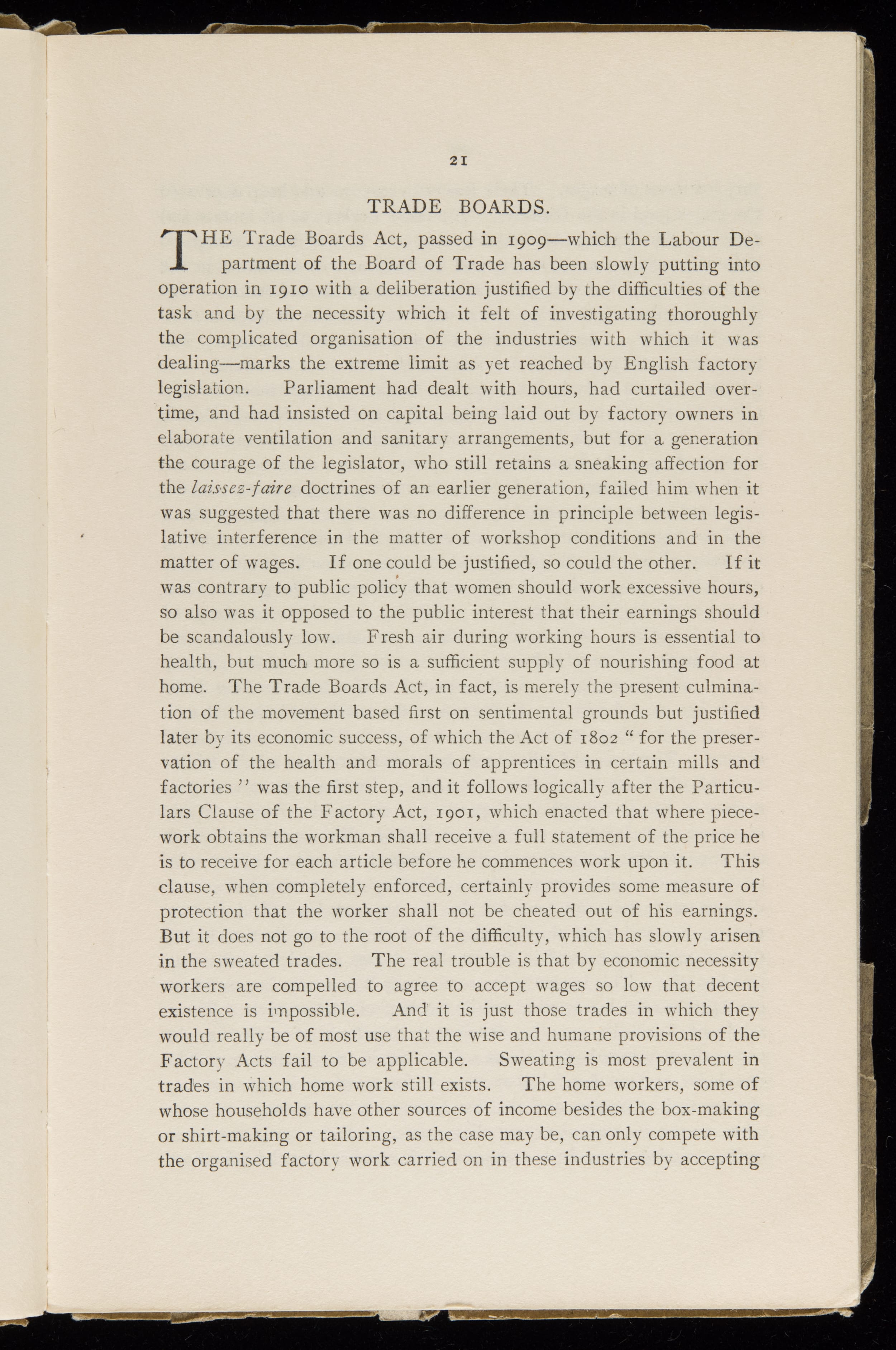 Contains a report on the Trade Boards Act passed in1909. Also includes reference to Clement Attlee’s debate on railway nationalisation. 1 volume