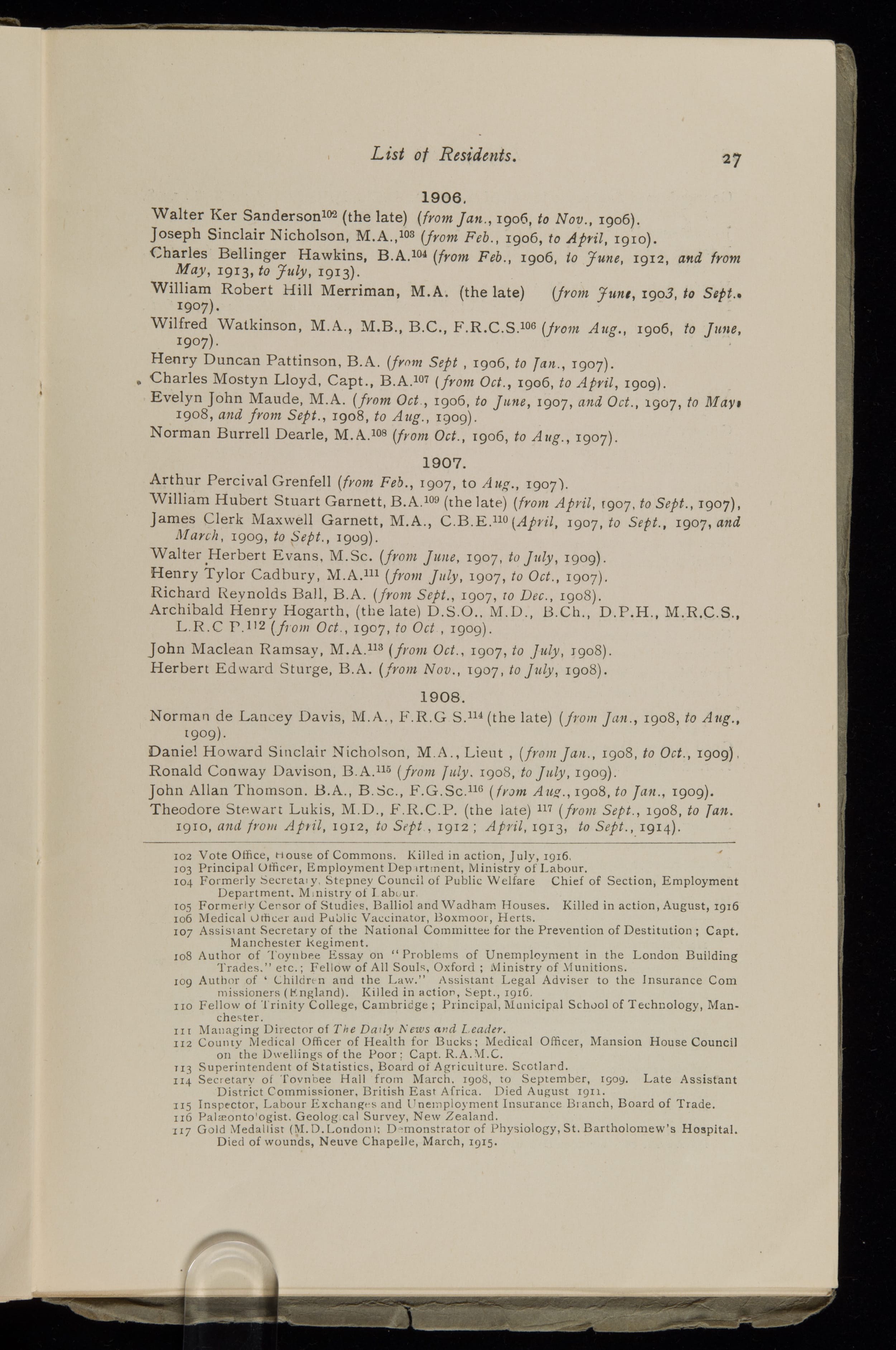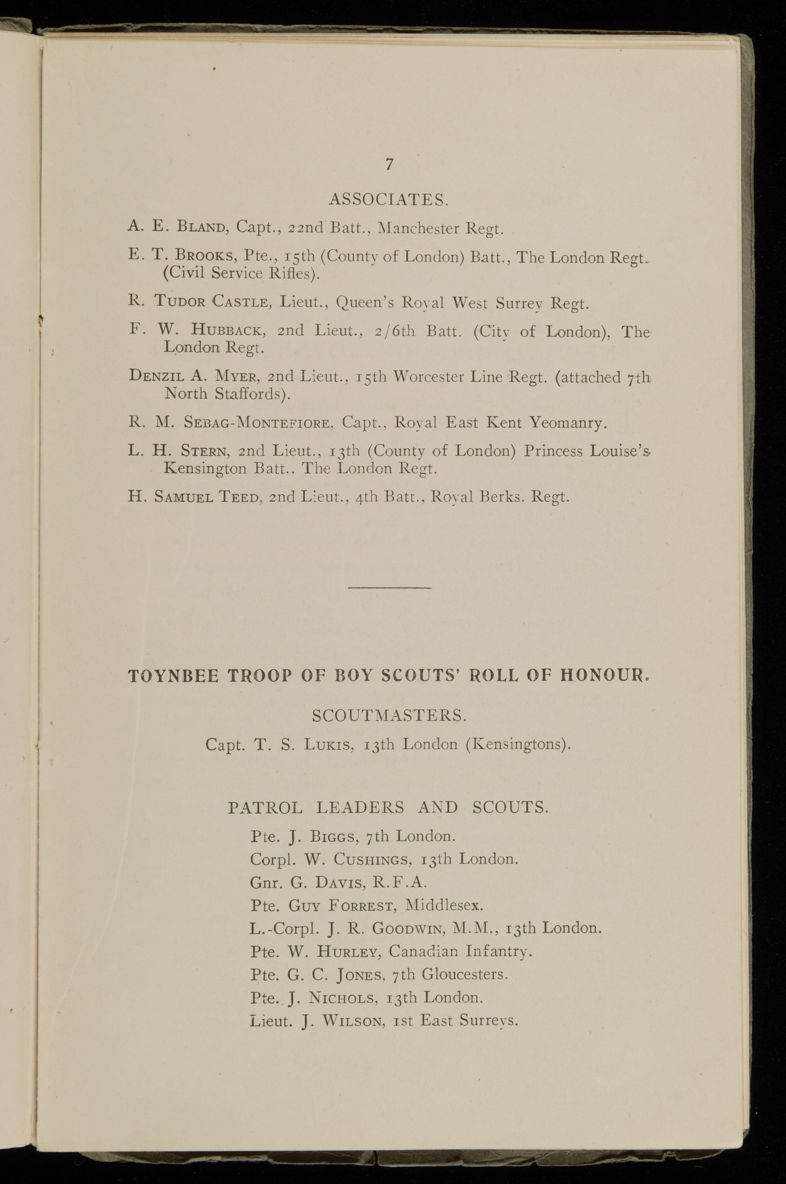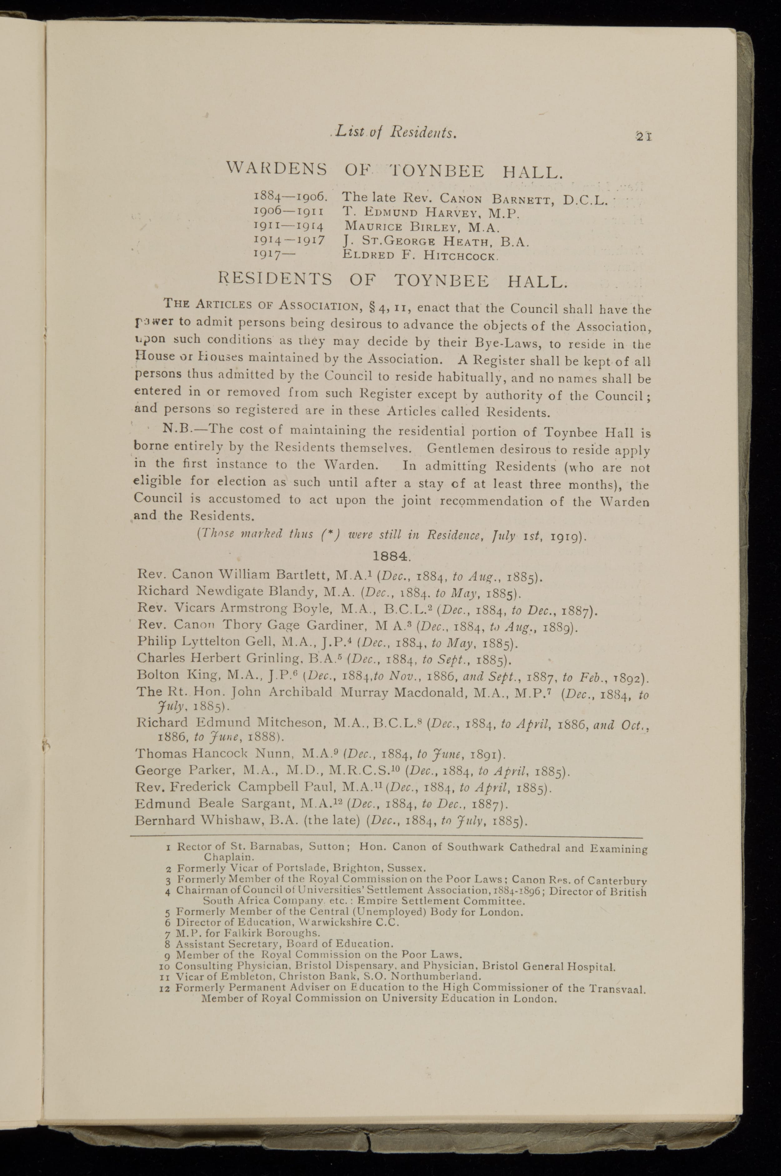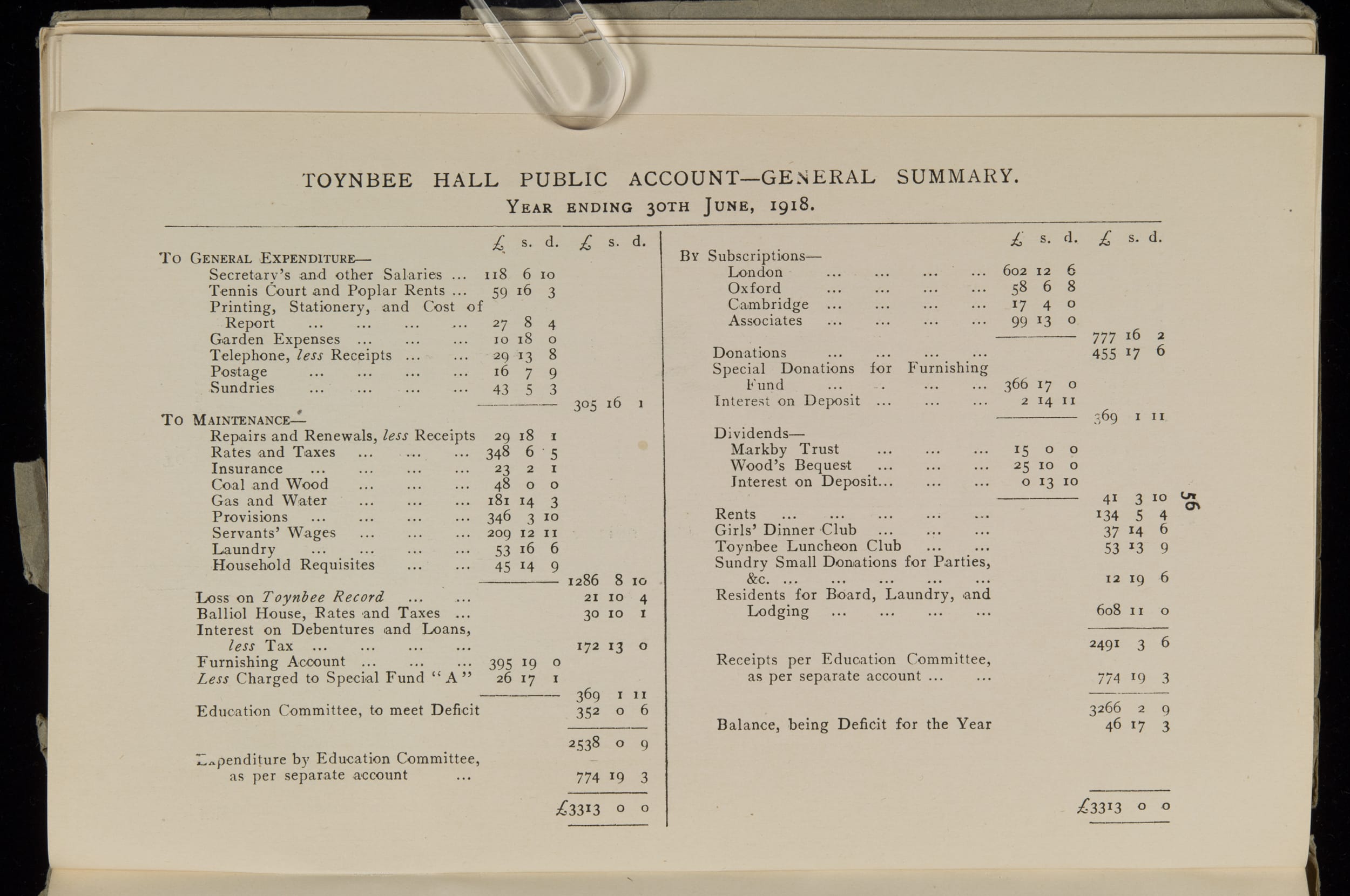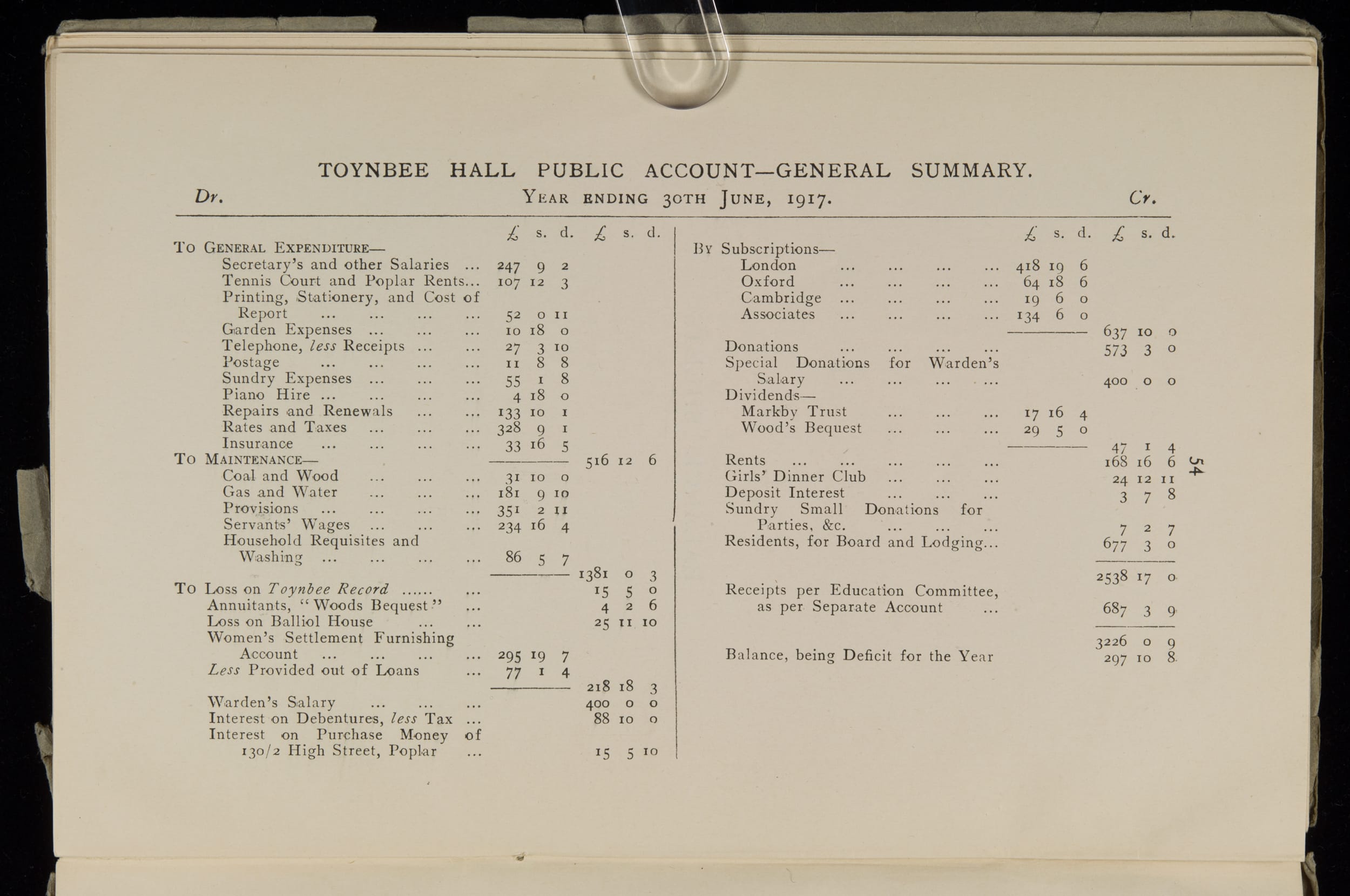 Annual Reports 1916- 1919 Contains a war report and lists members, residents and residents of the womens settlement. Lists those who died in action. 1 volume