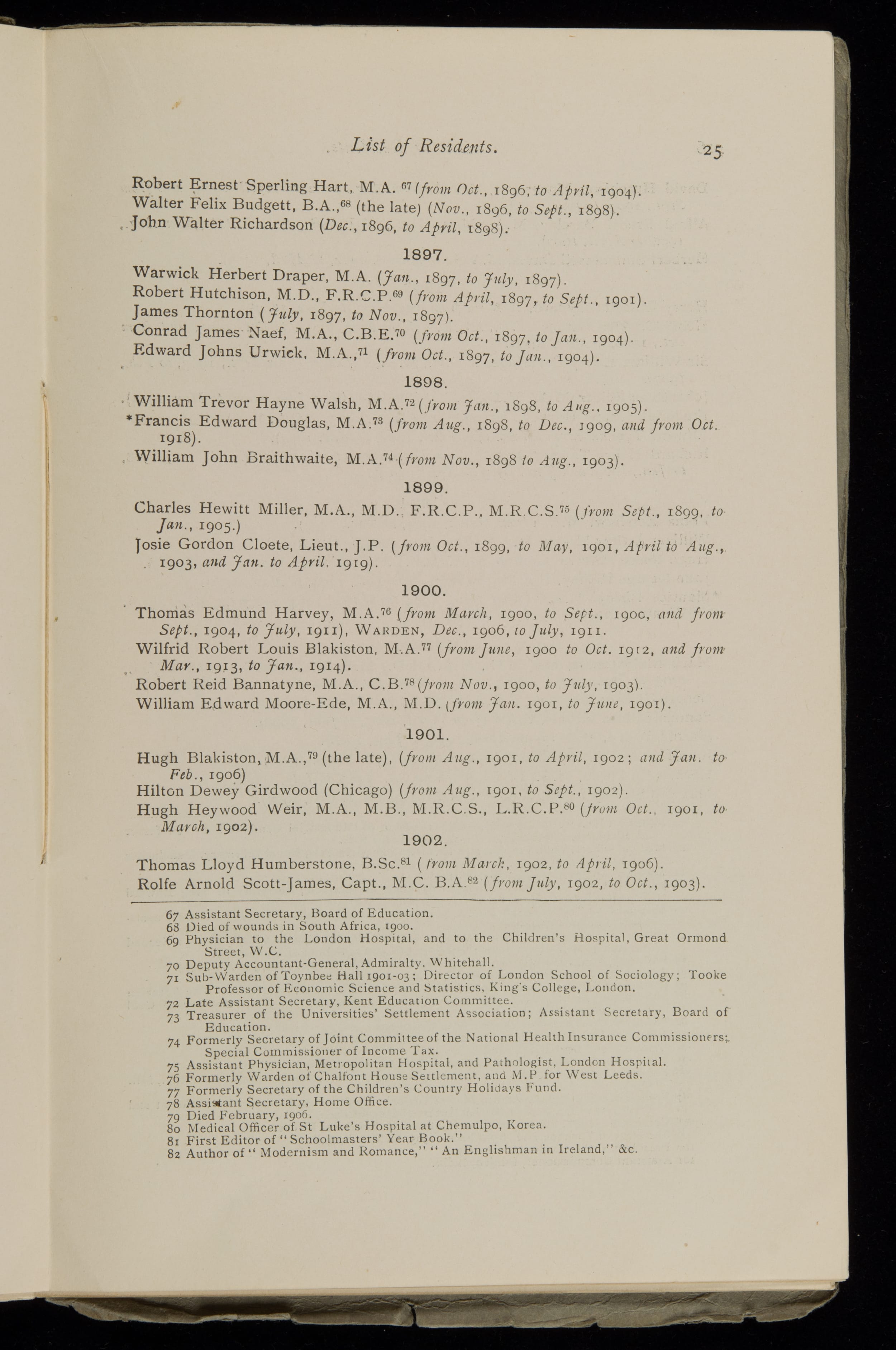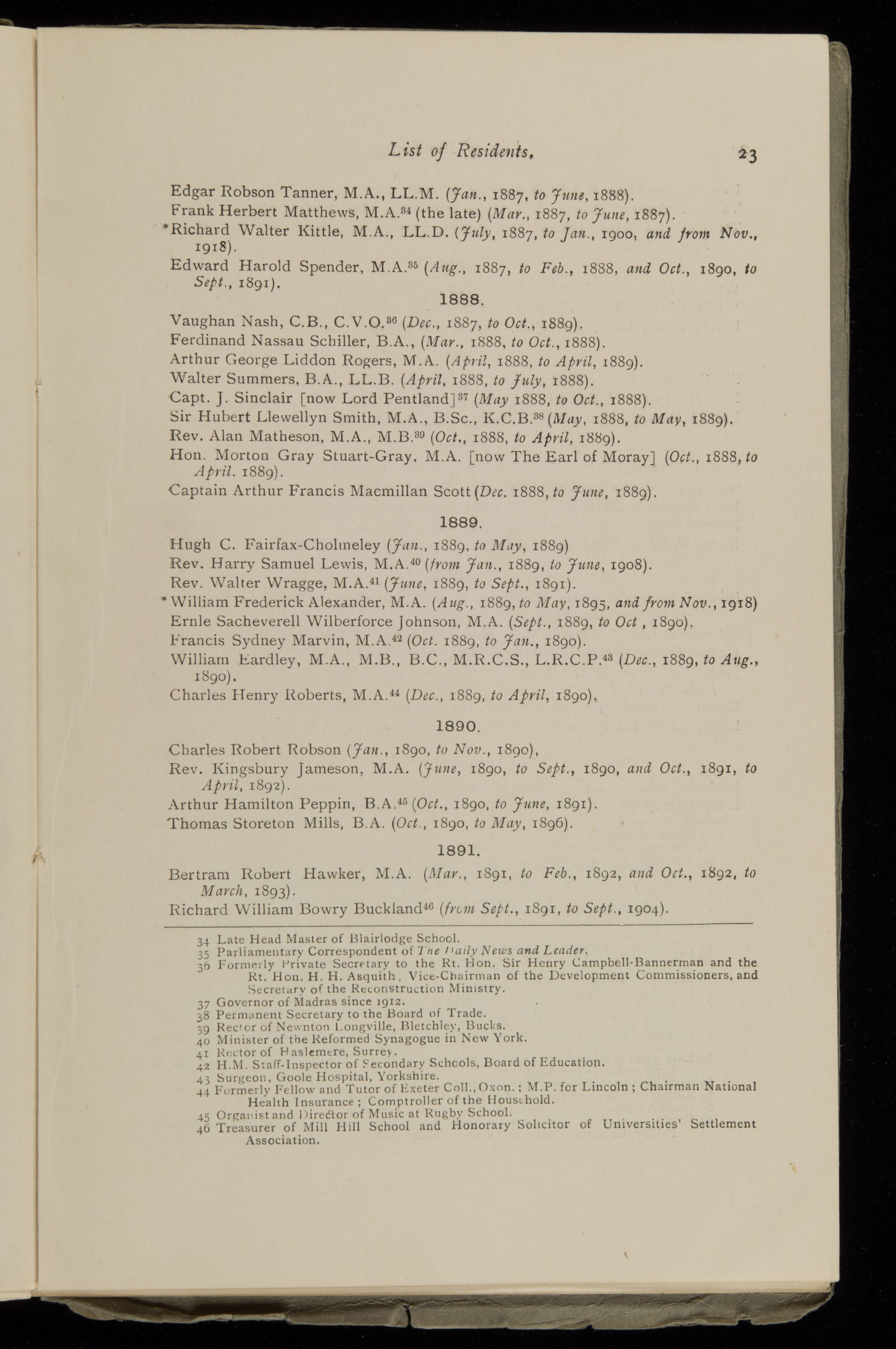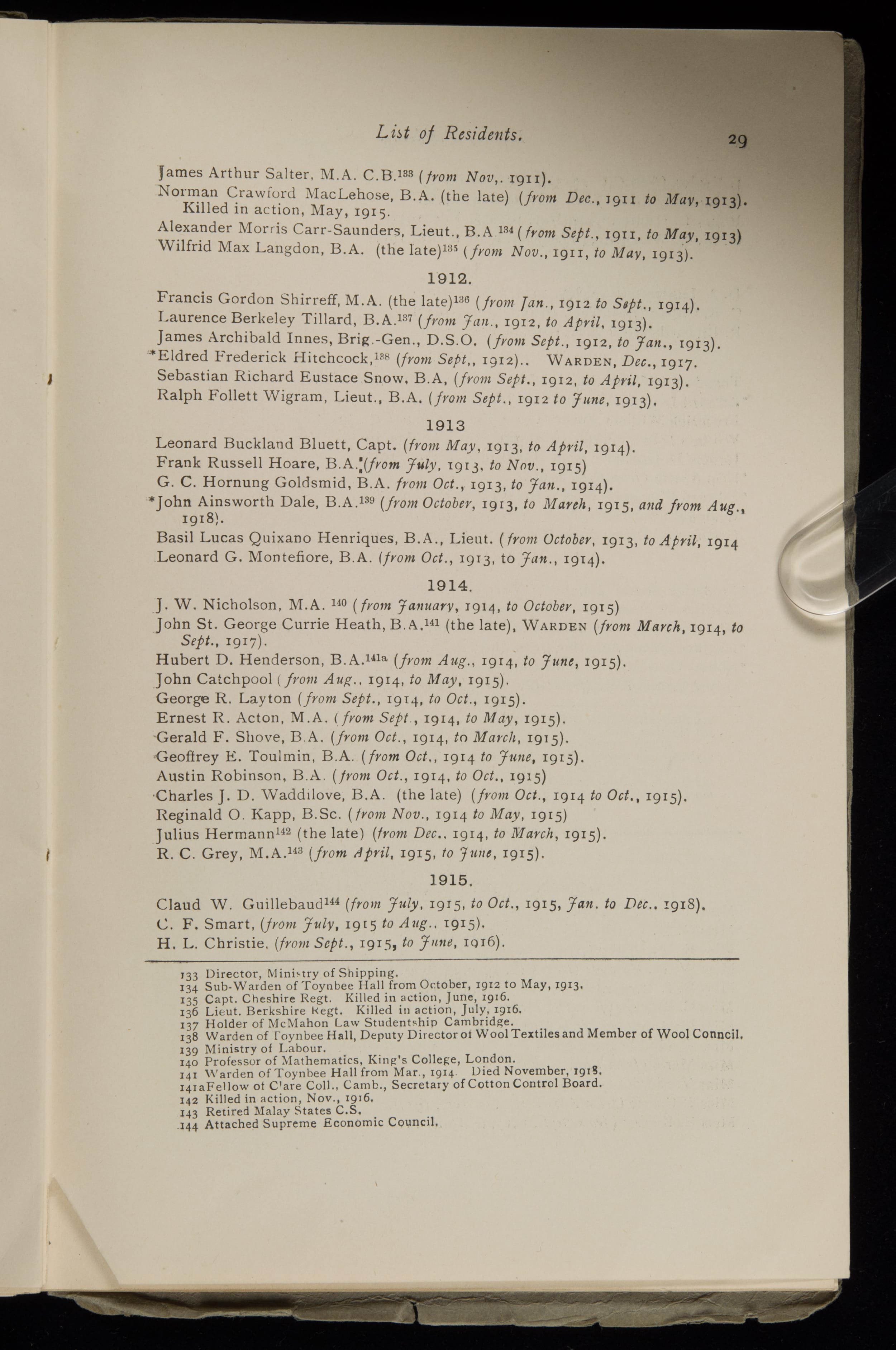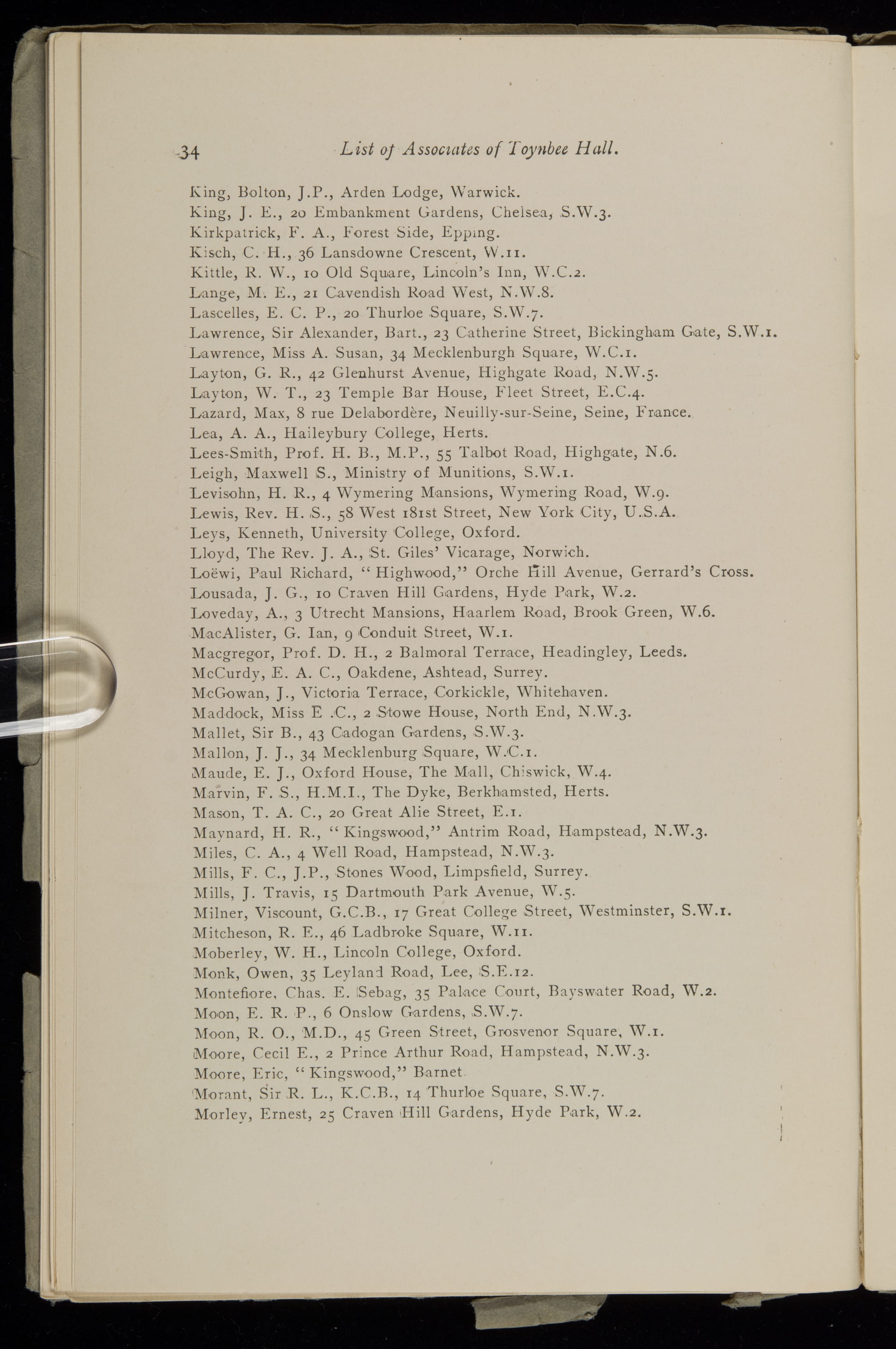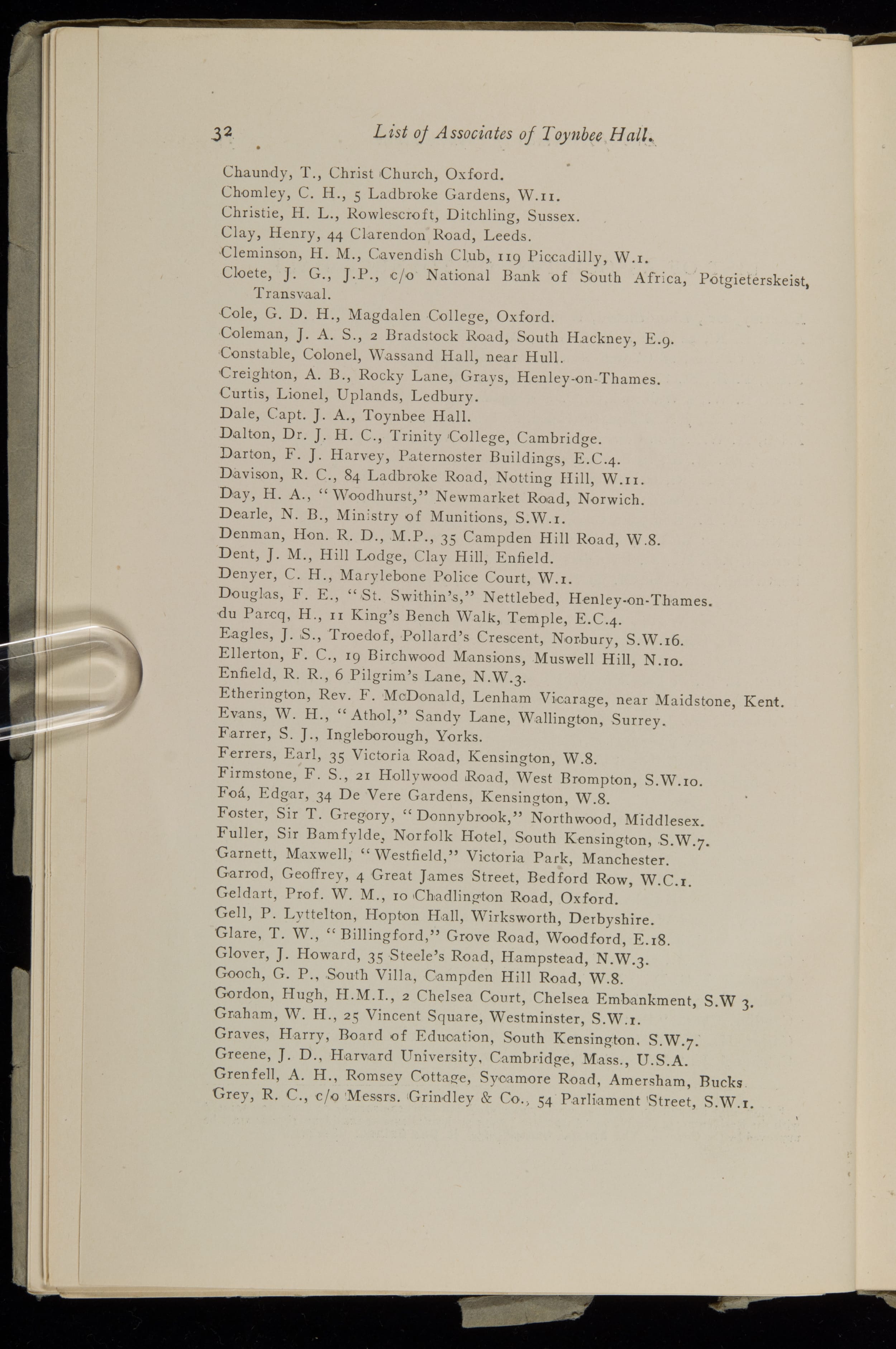 Annual Reports 1916- 1919 Contains a war report and lists members, residents and residents of the womens settlement. Lists those who died in action. 1 volume