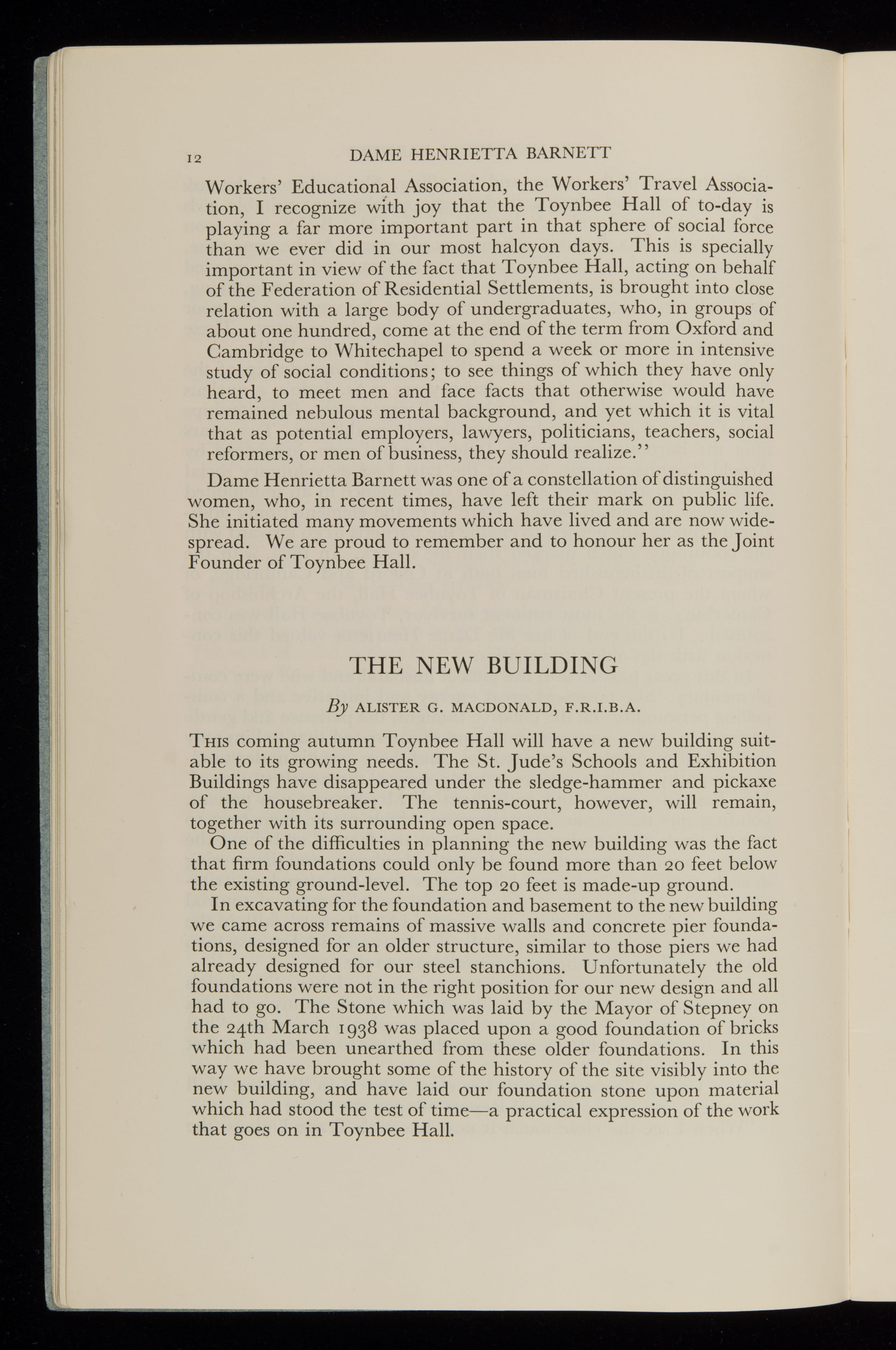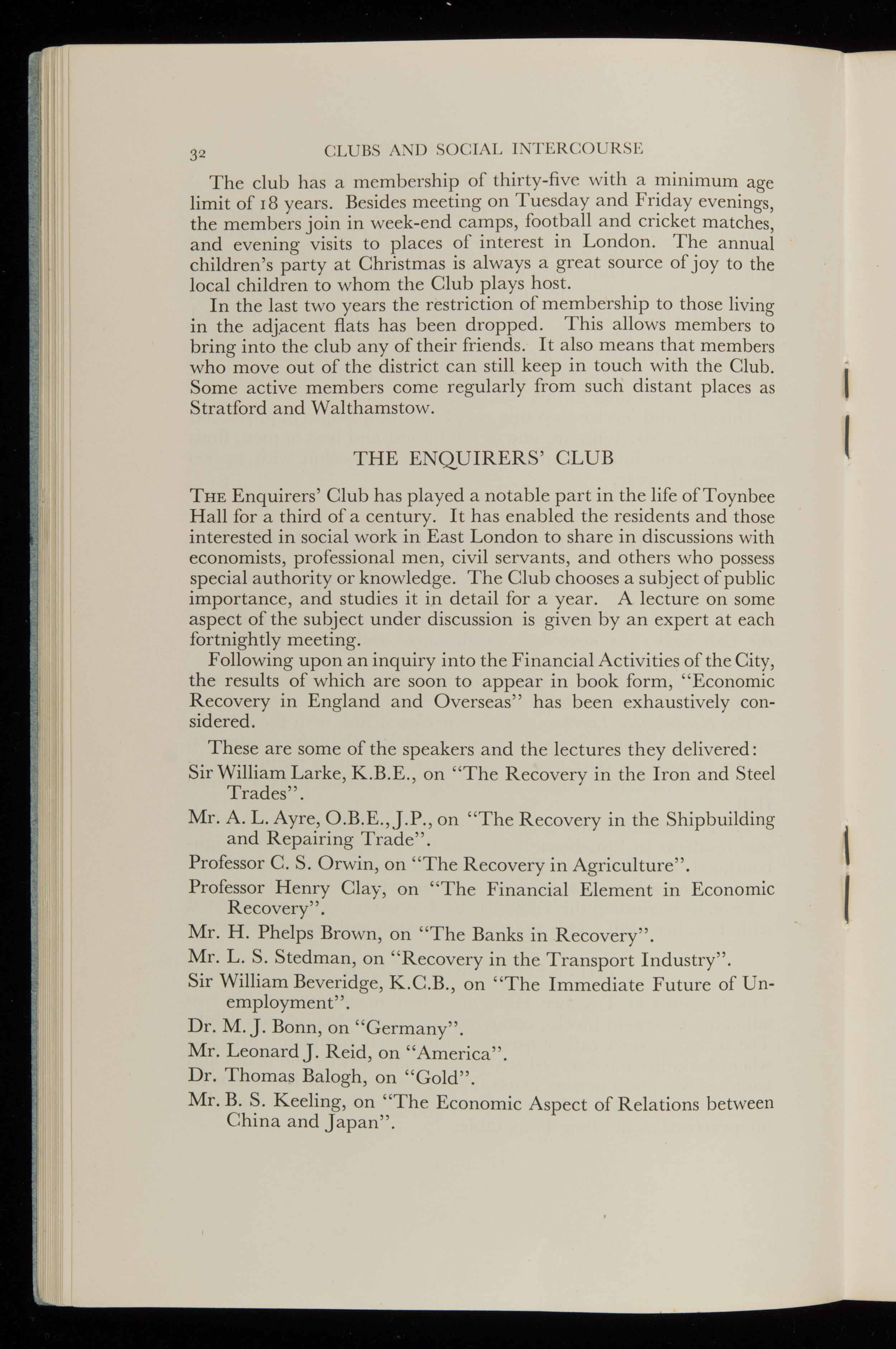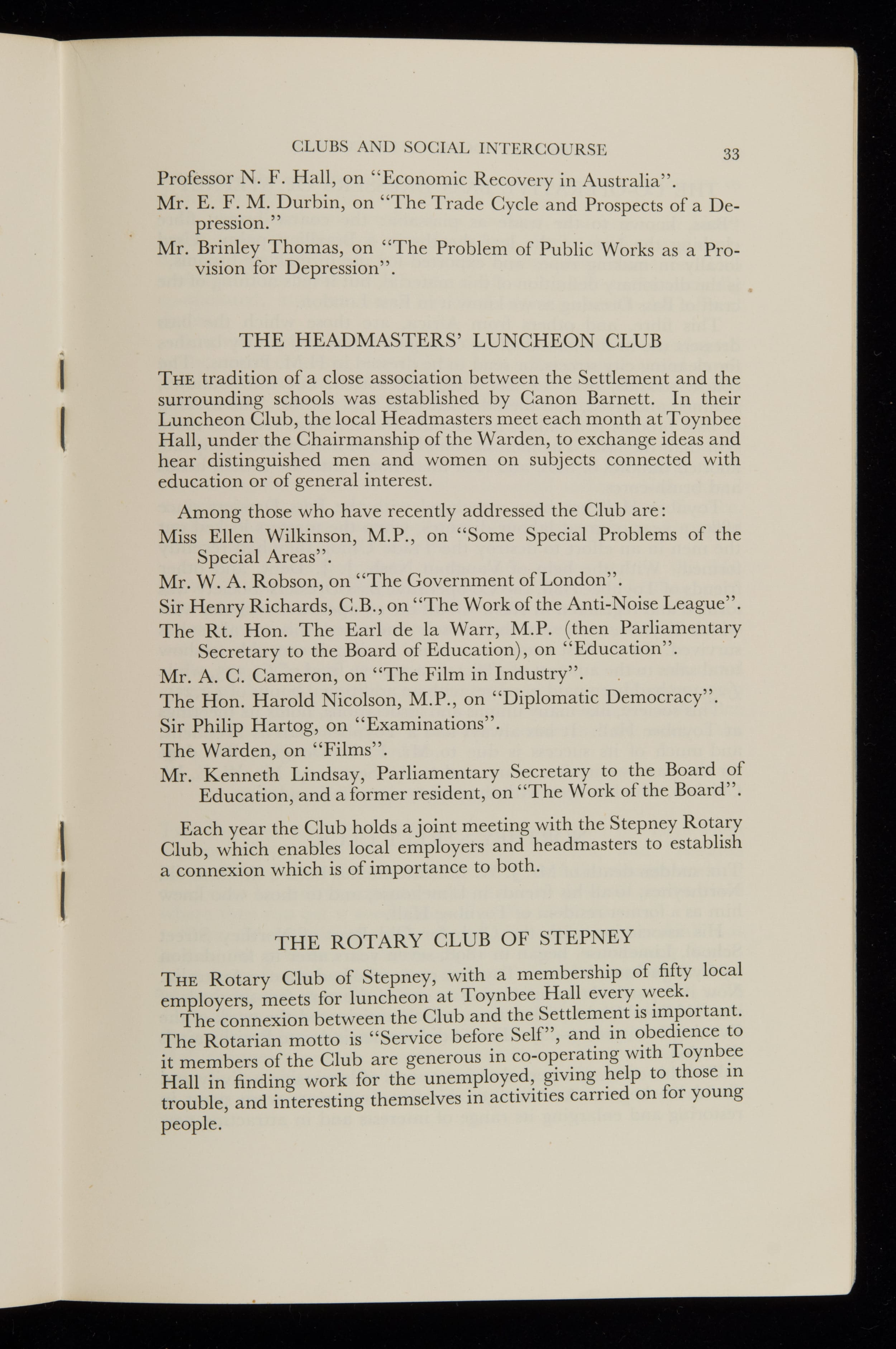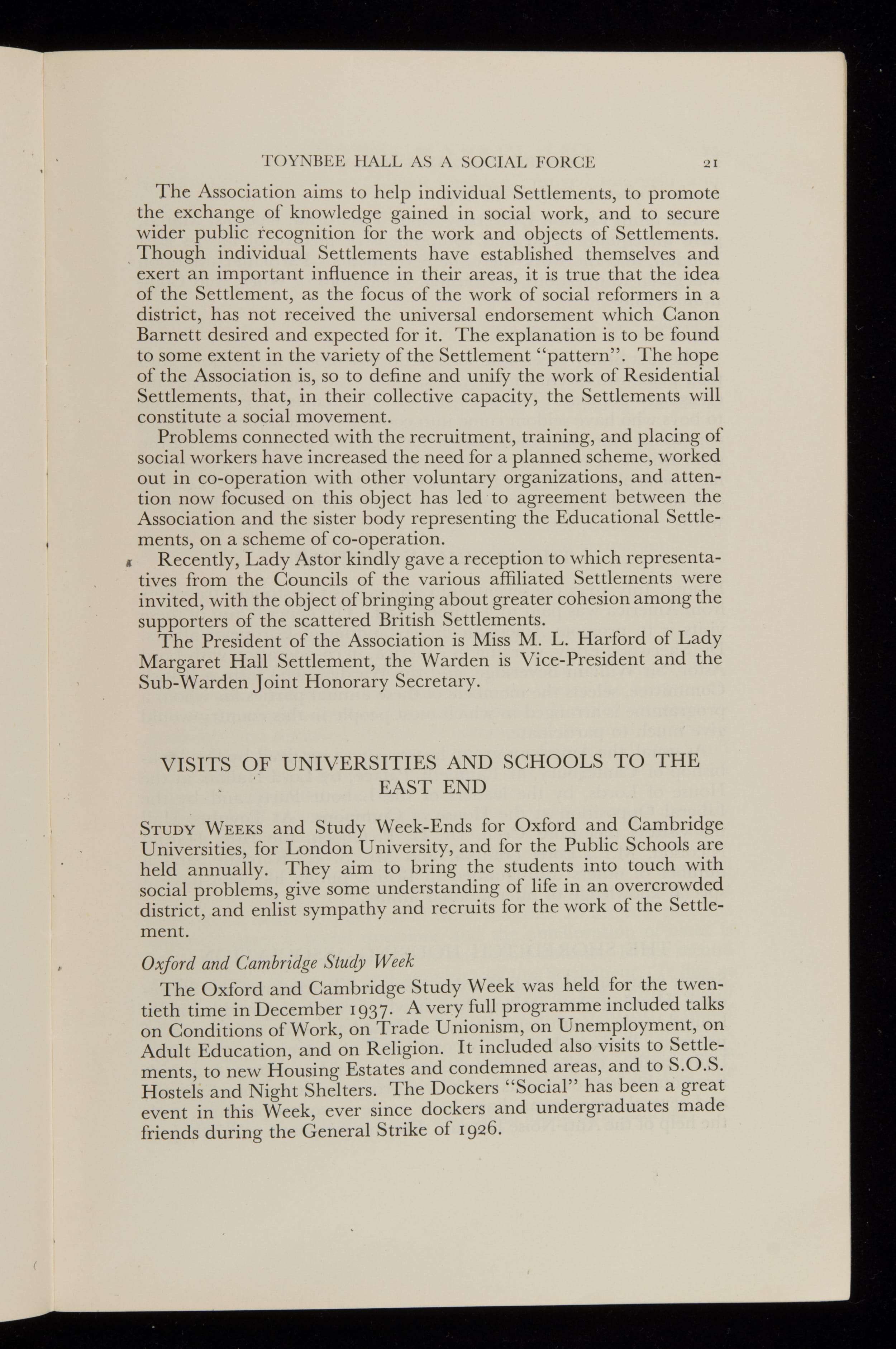 Toynbee Hall Annual Report 1935-1938