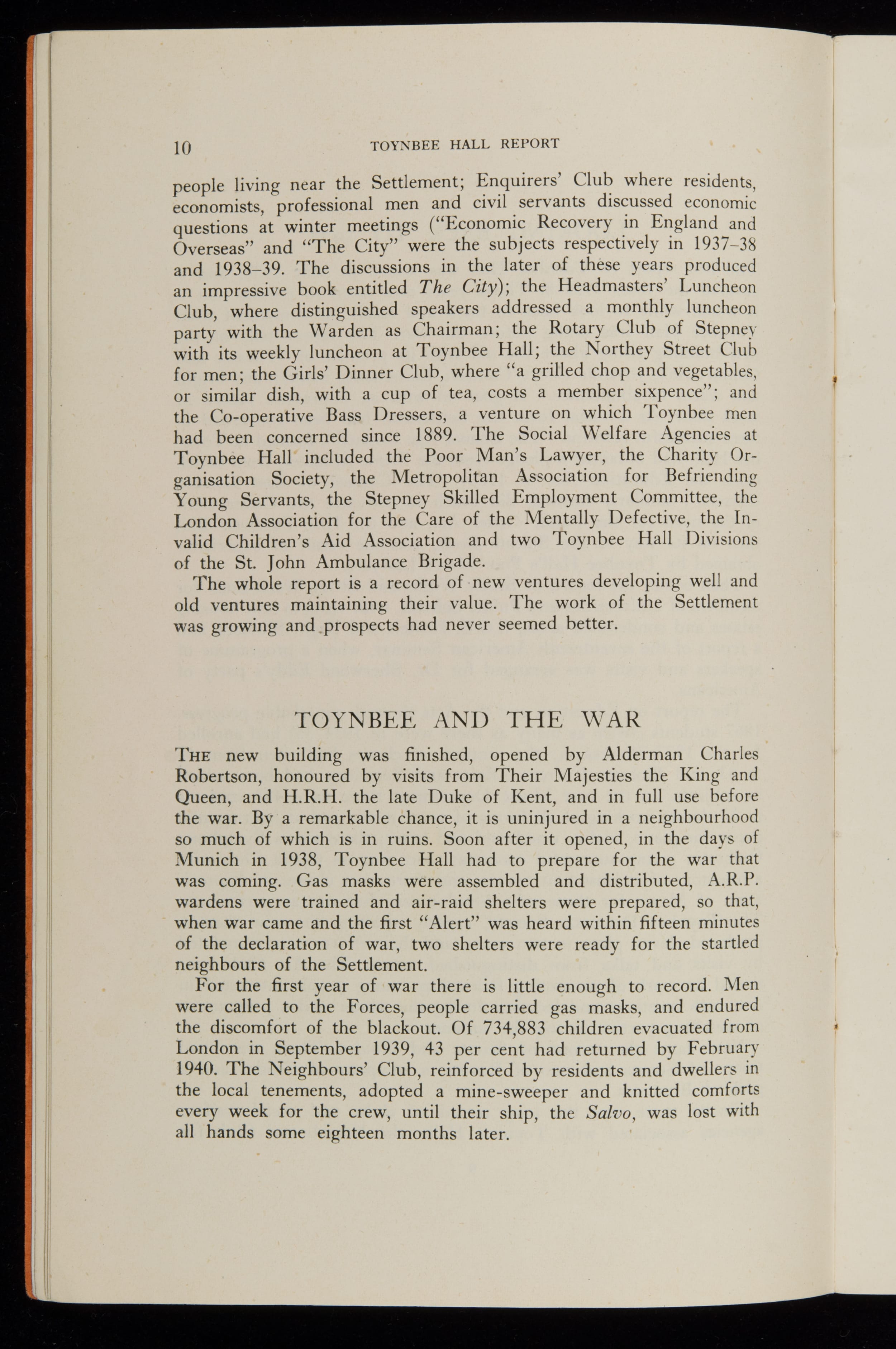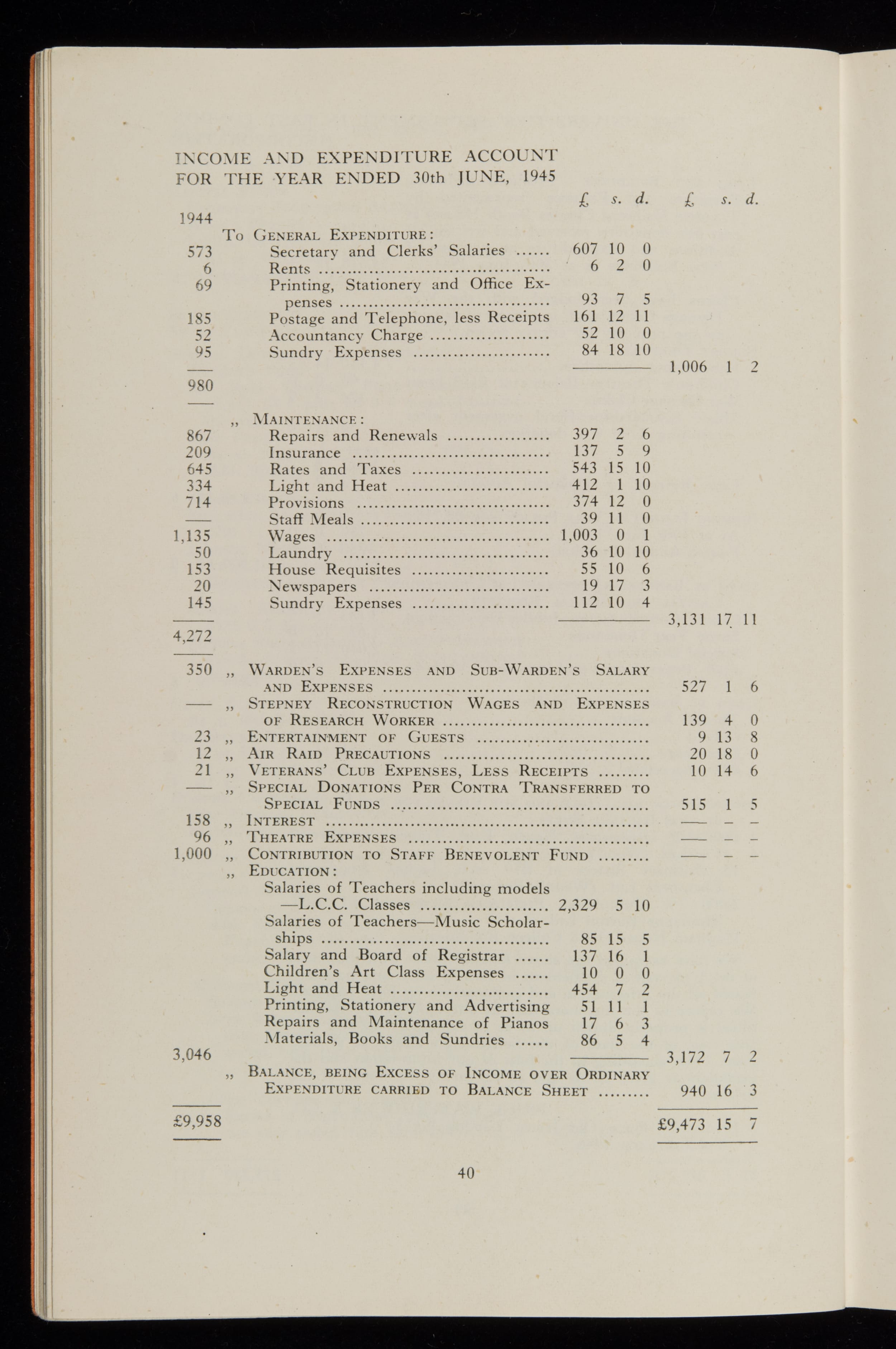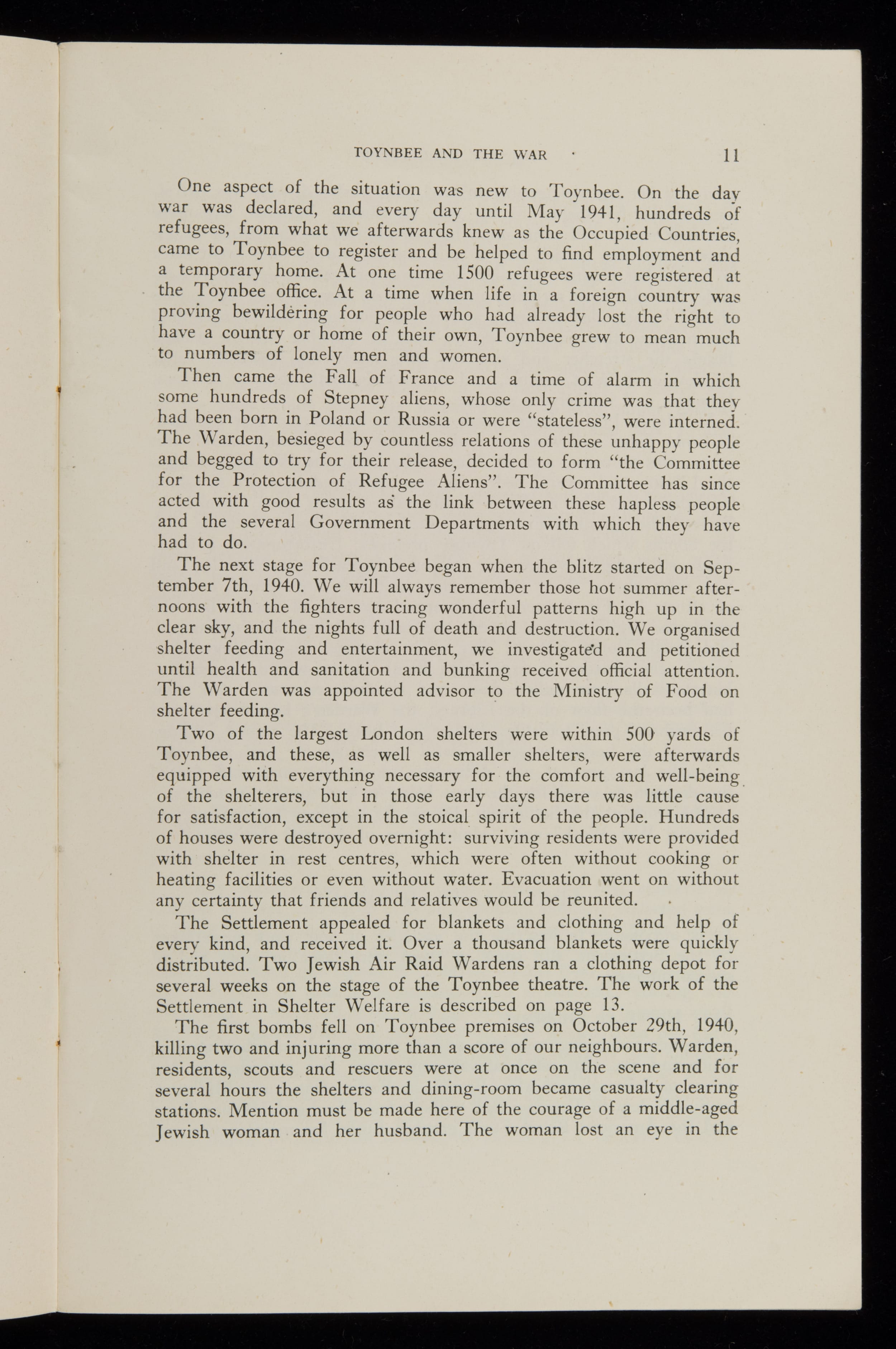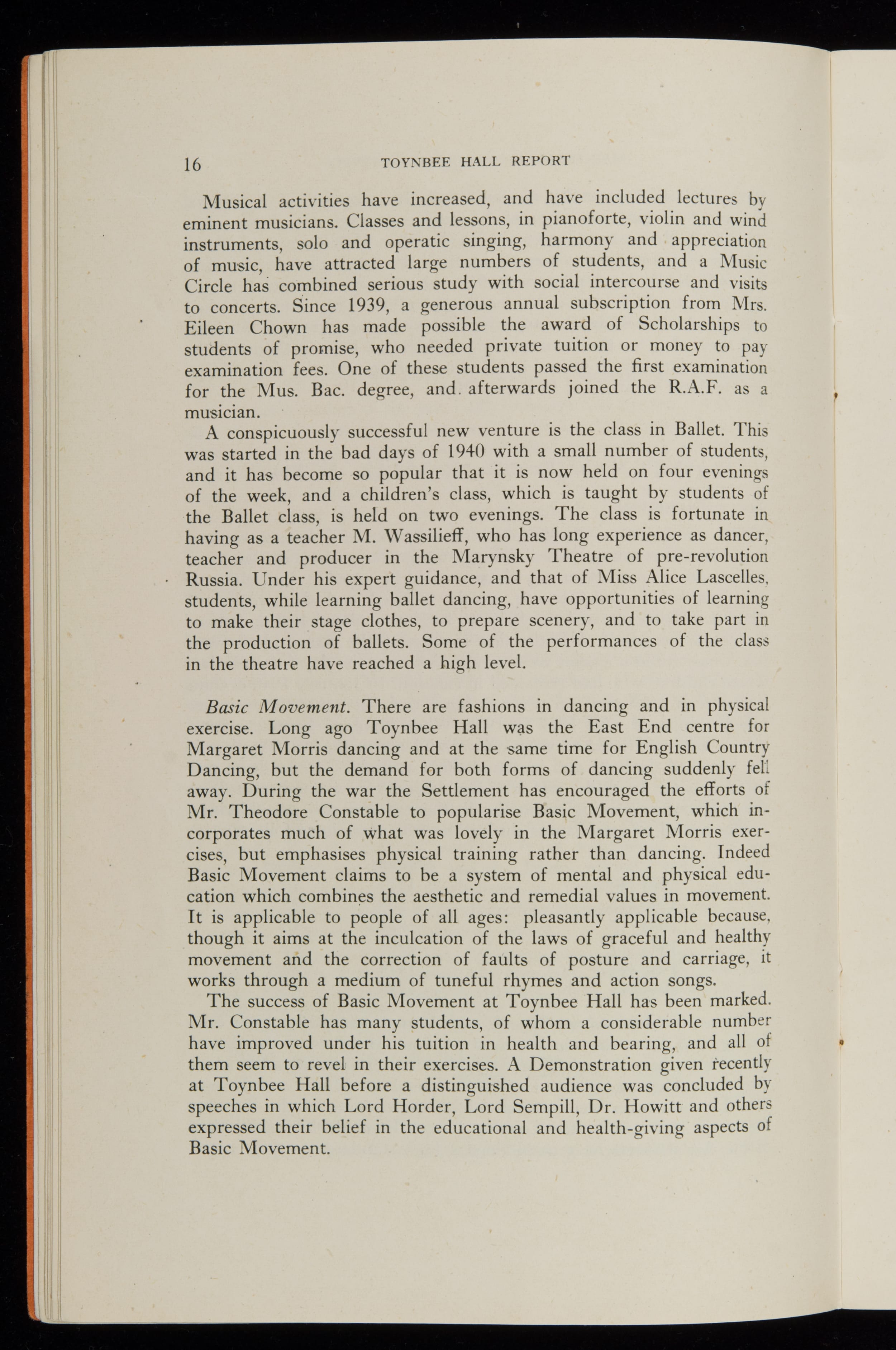 Contains photographs of the Queen Mothers visit, the ballet school and other activities, includes descriptions of special war work, a look back, a look forward and reports on all activities and finance. 1 volume