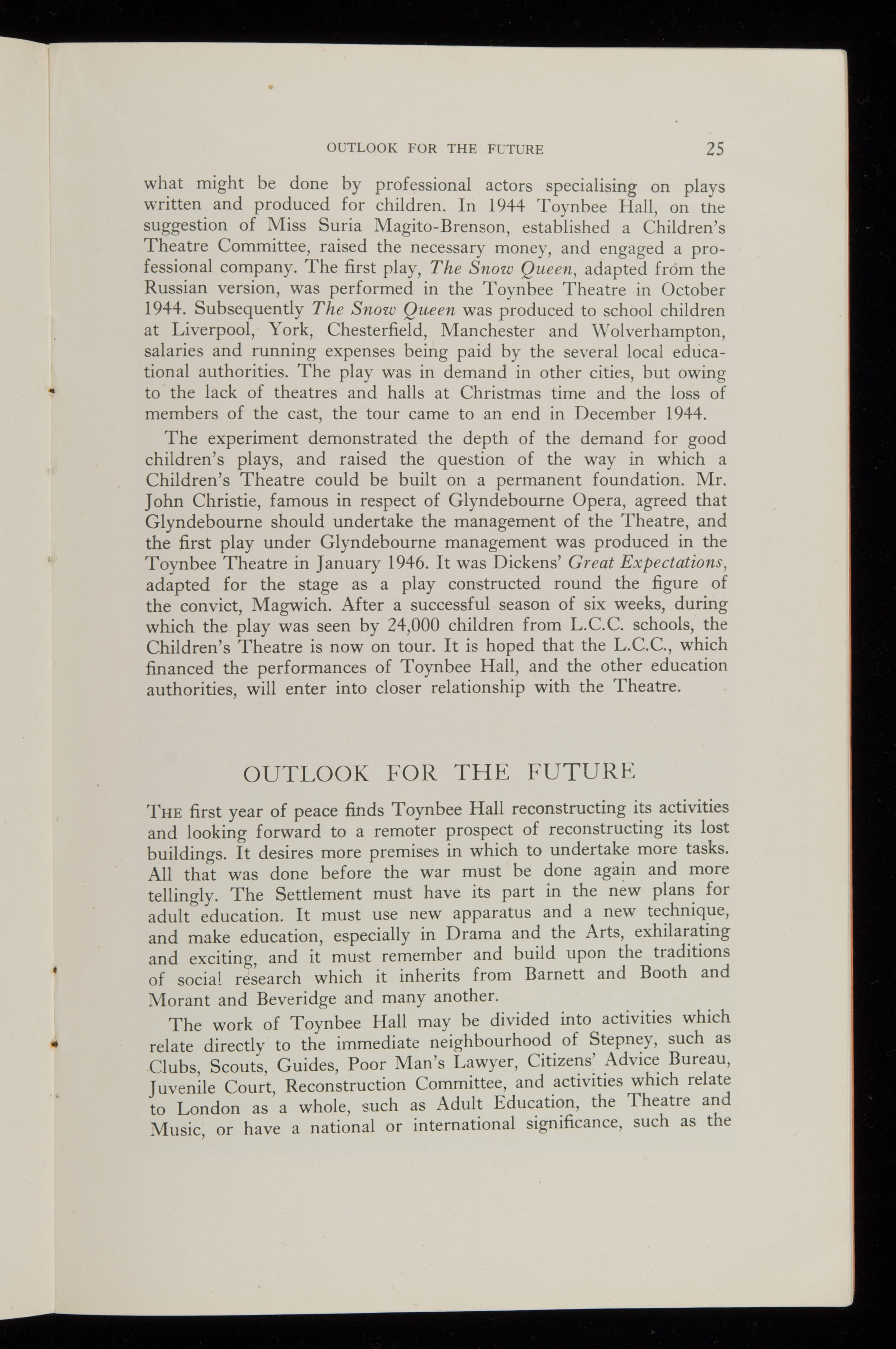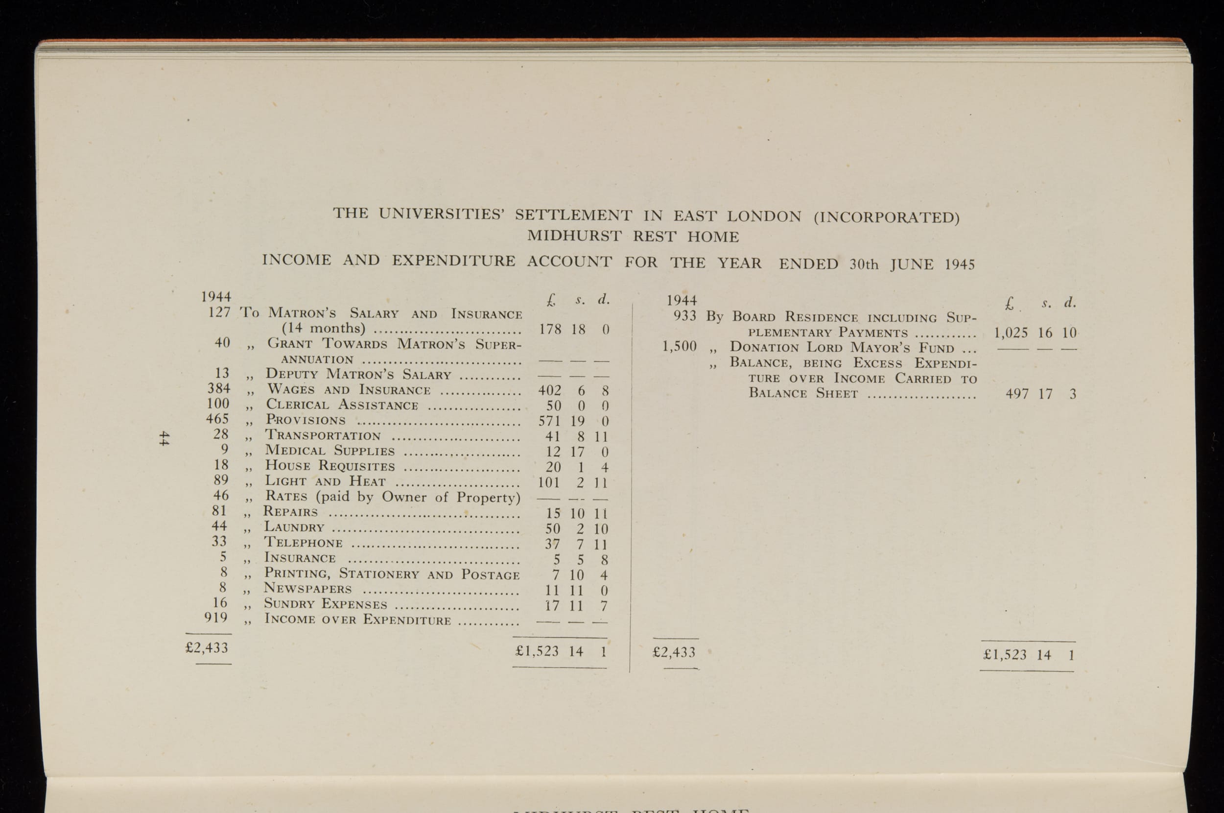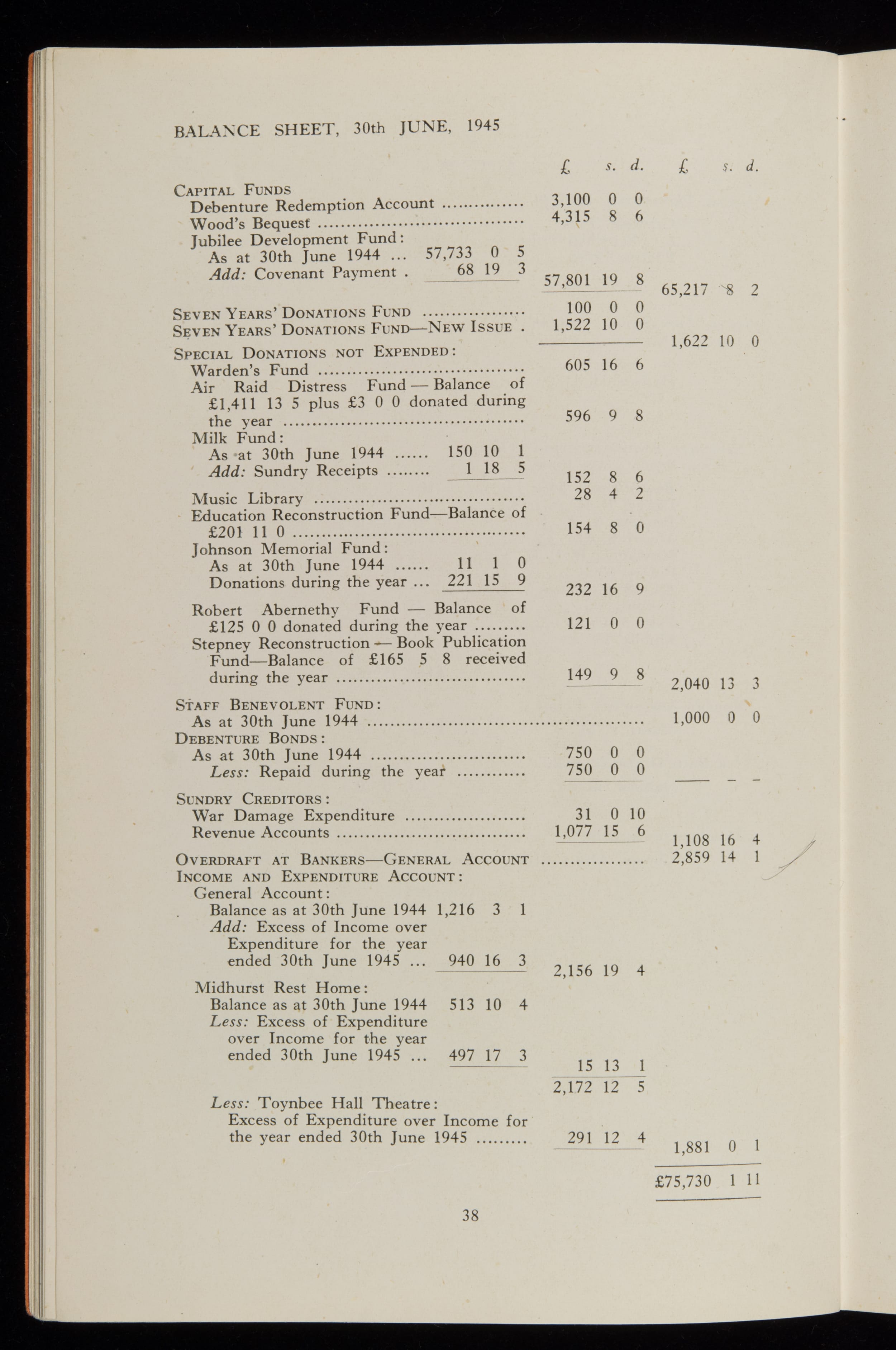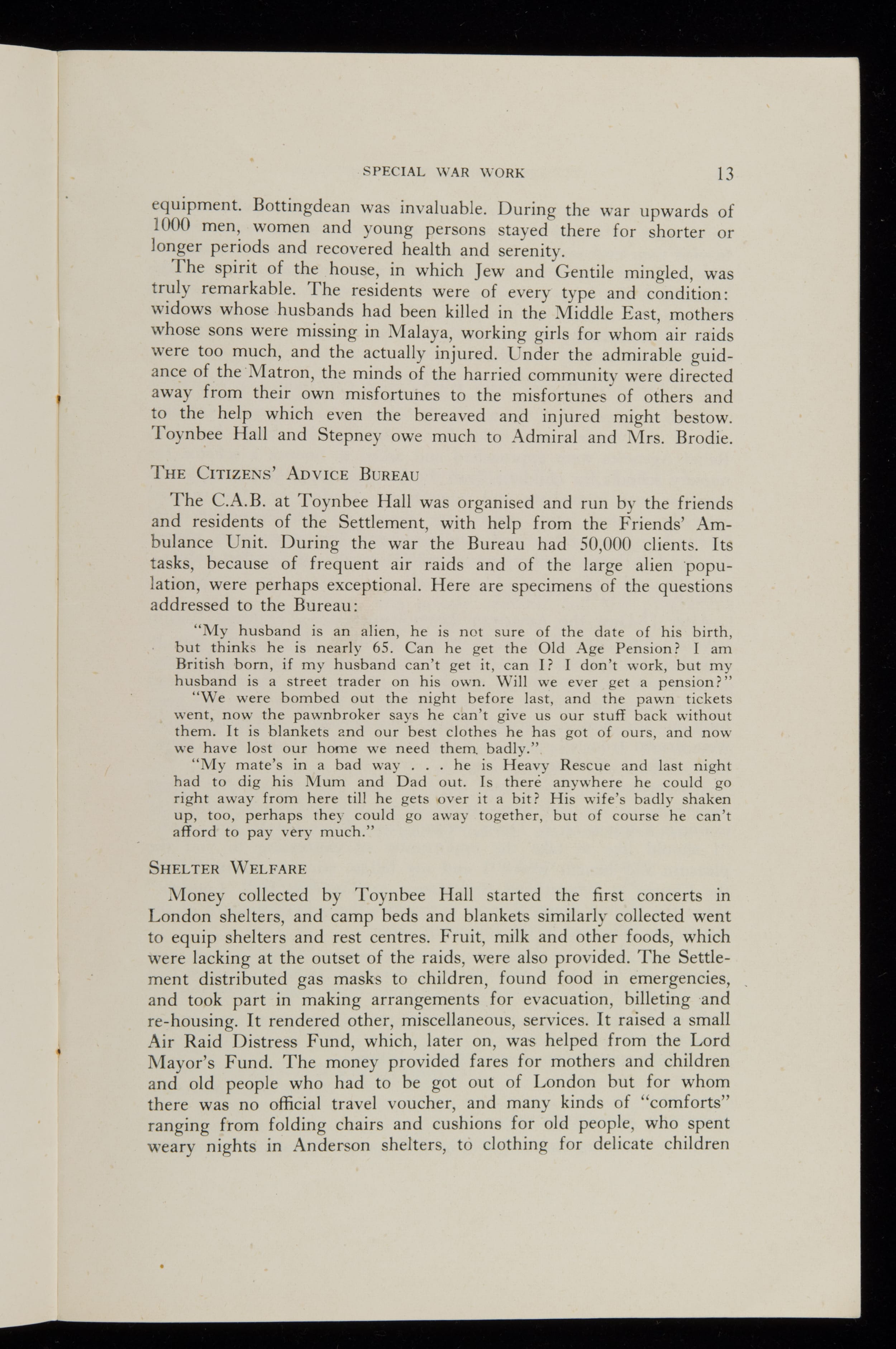 Contains photographs of the Queen Mothers visit, the ballet school and other activities, includes descriptions of special war work, a look back, a look forward and reports on all activities and finance. 1 volume