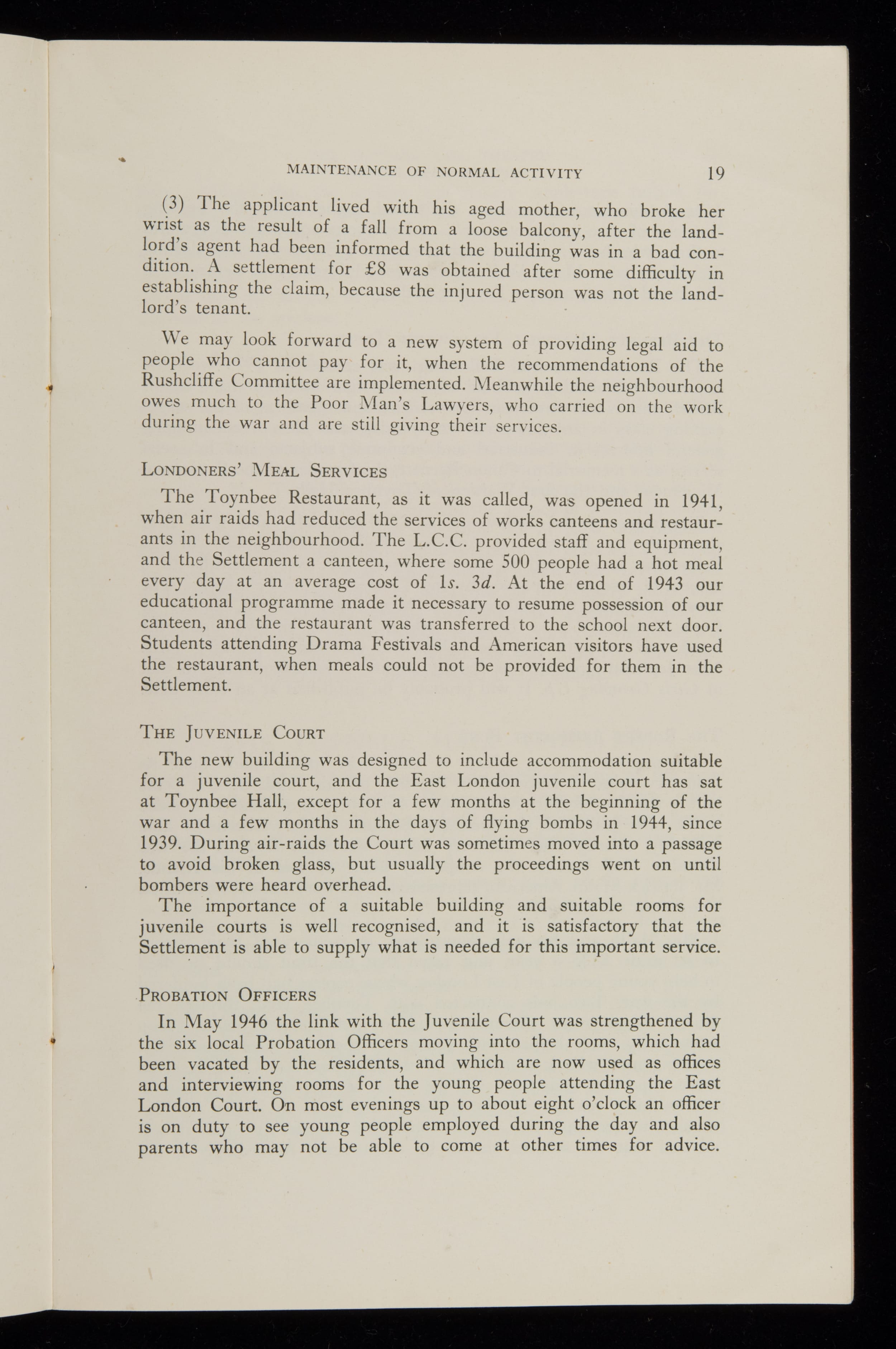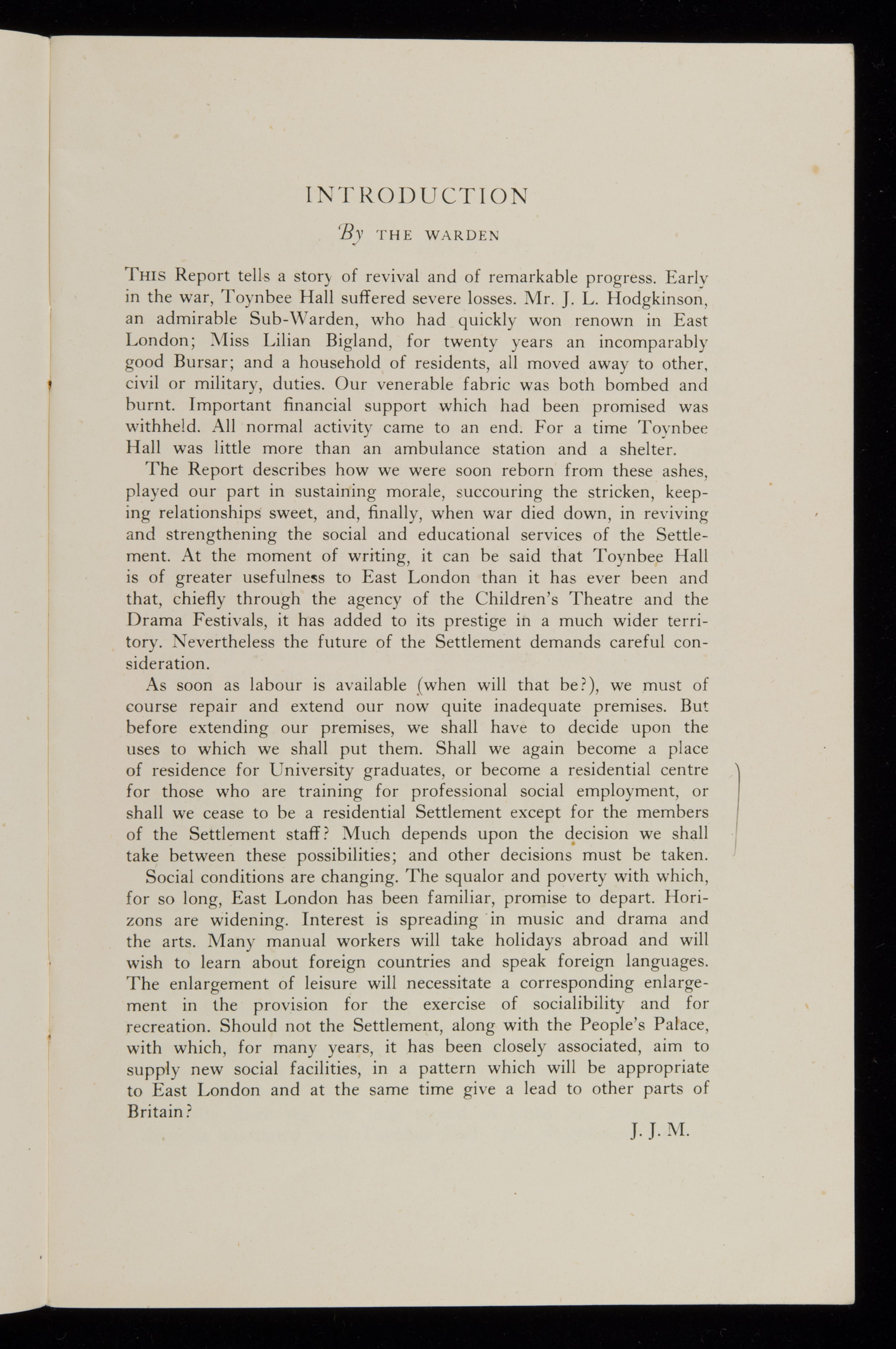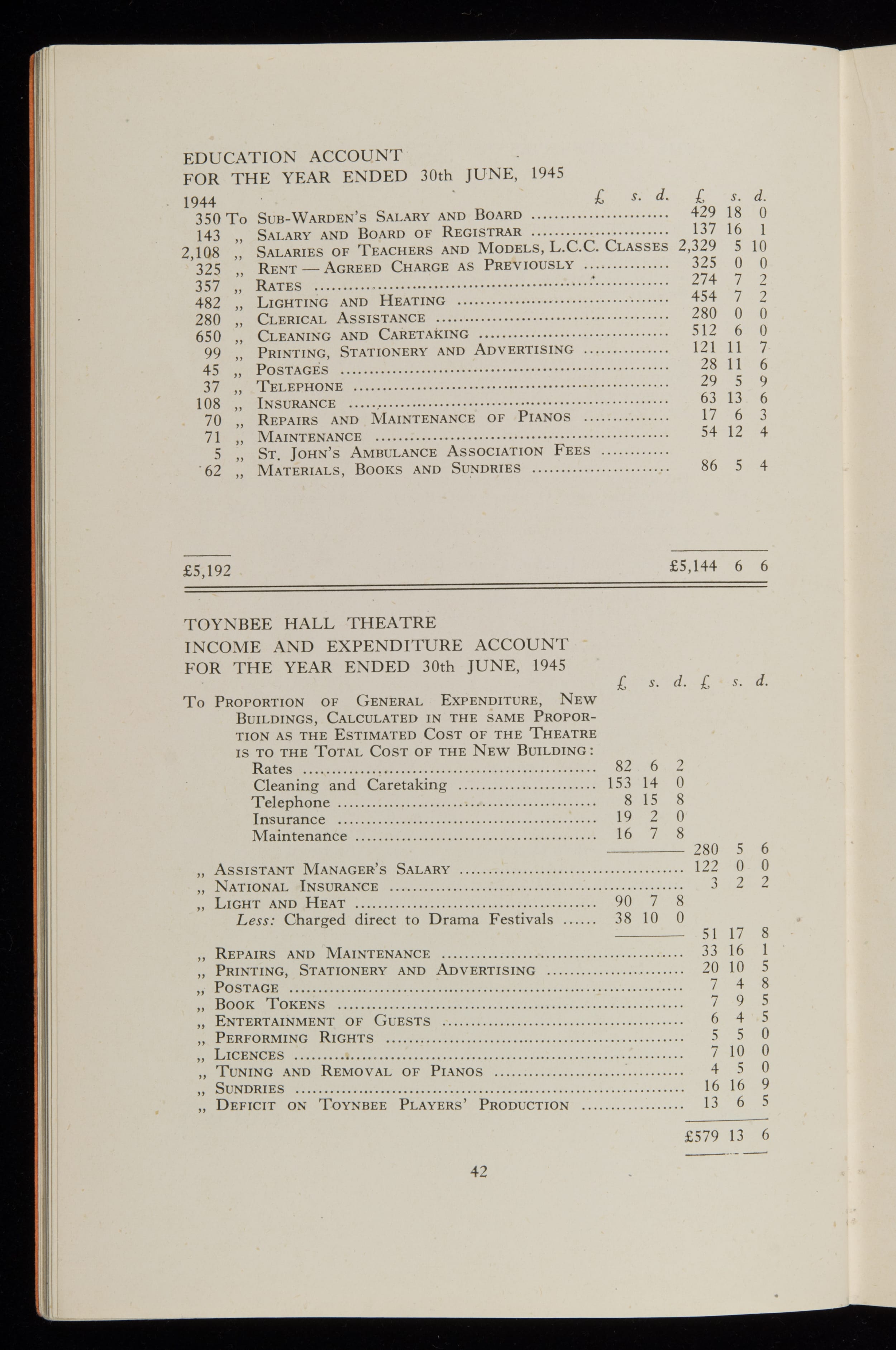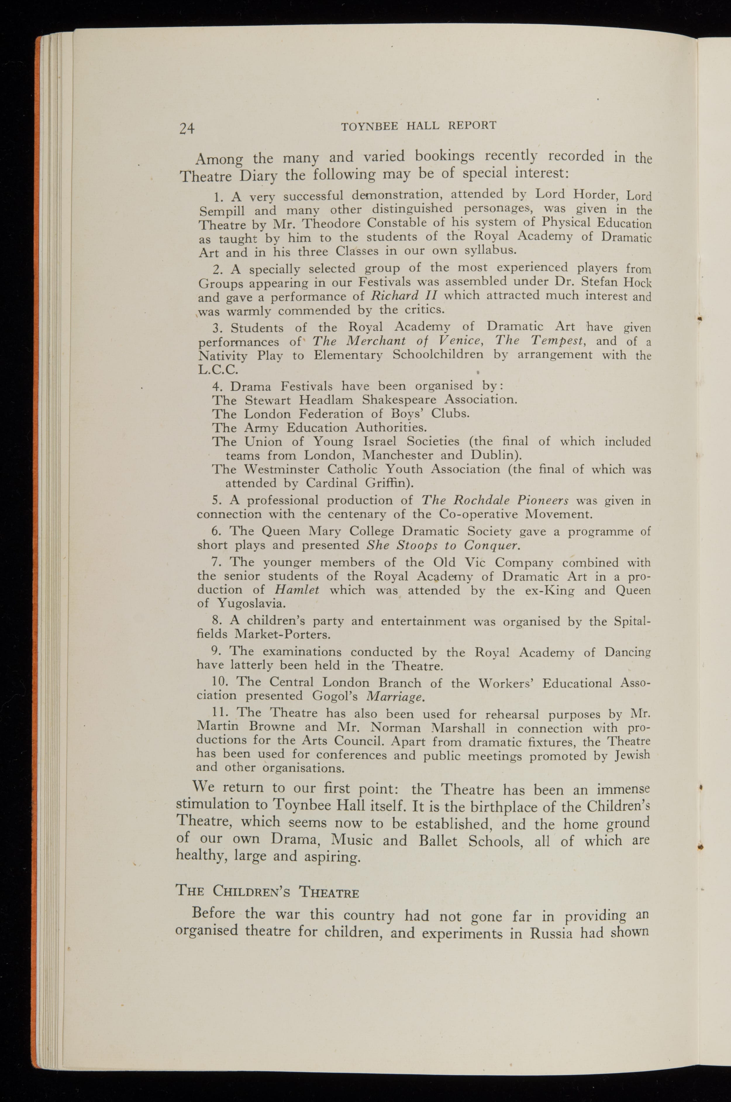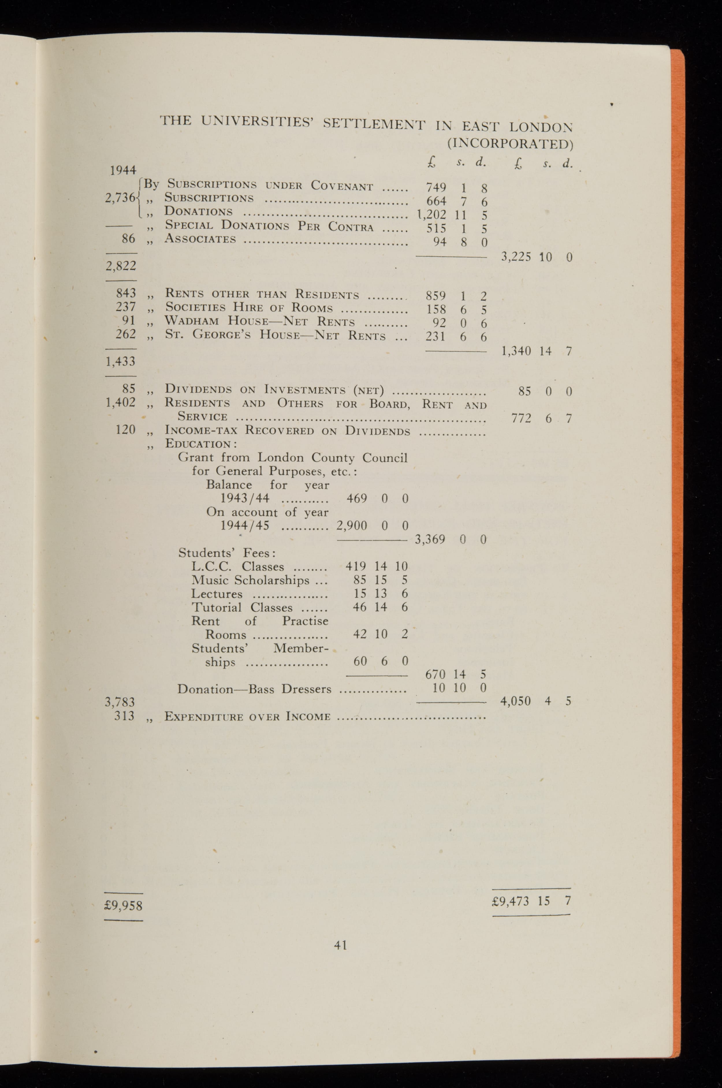 Contains photographs of the Queen Mothers visit, the ballet school and other activities, includes descriptions of special war work, a look back, a look forward and reports on all activities and finance. 1 volume