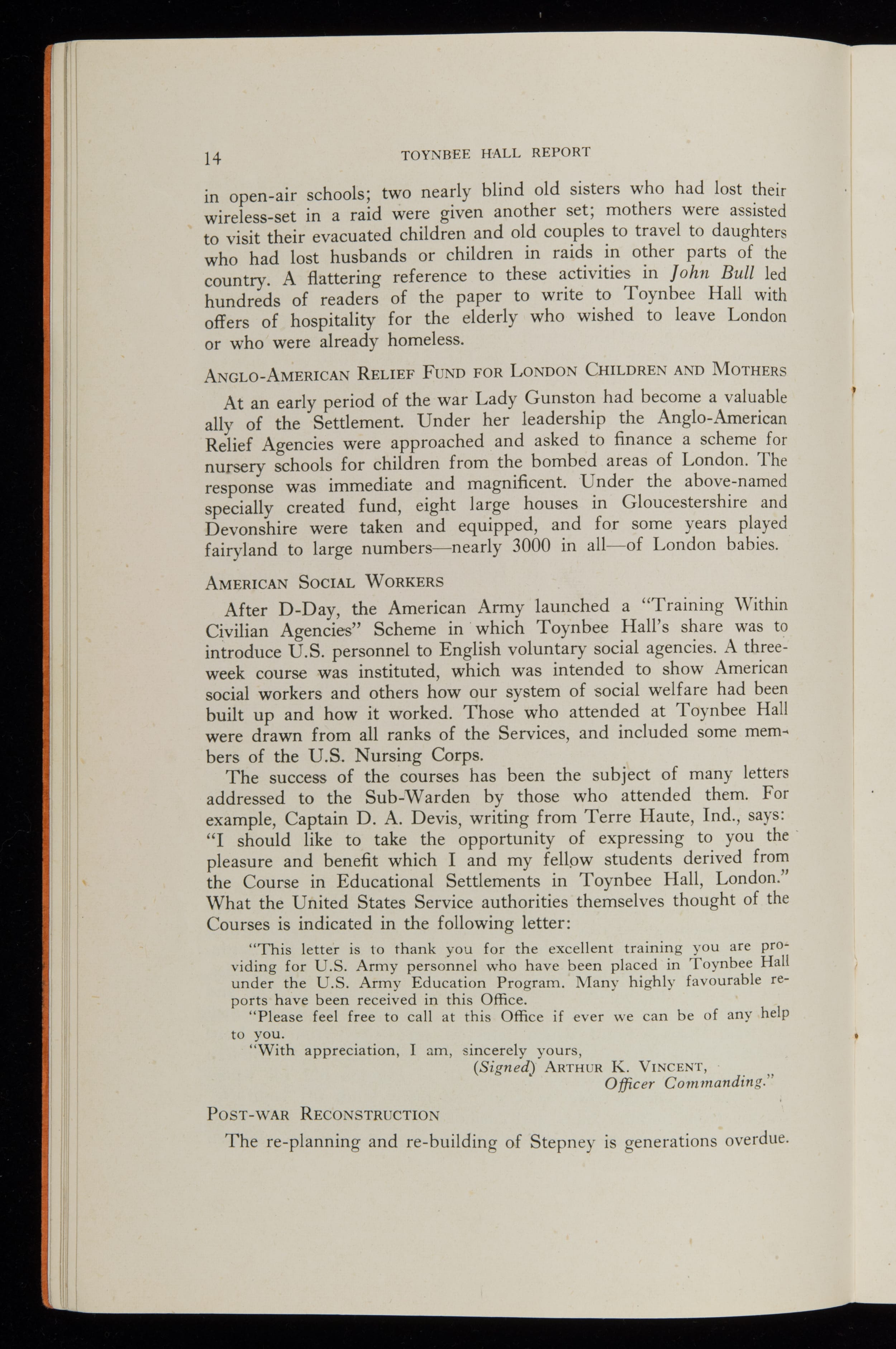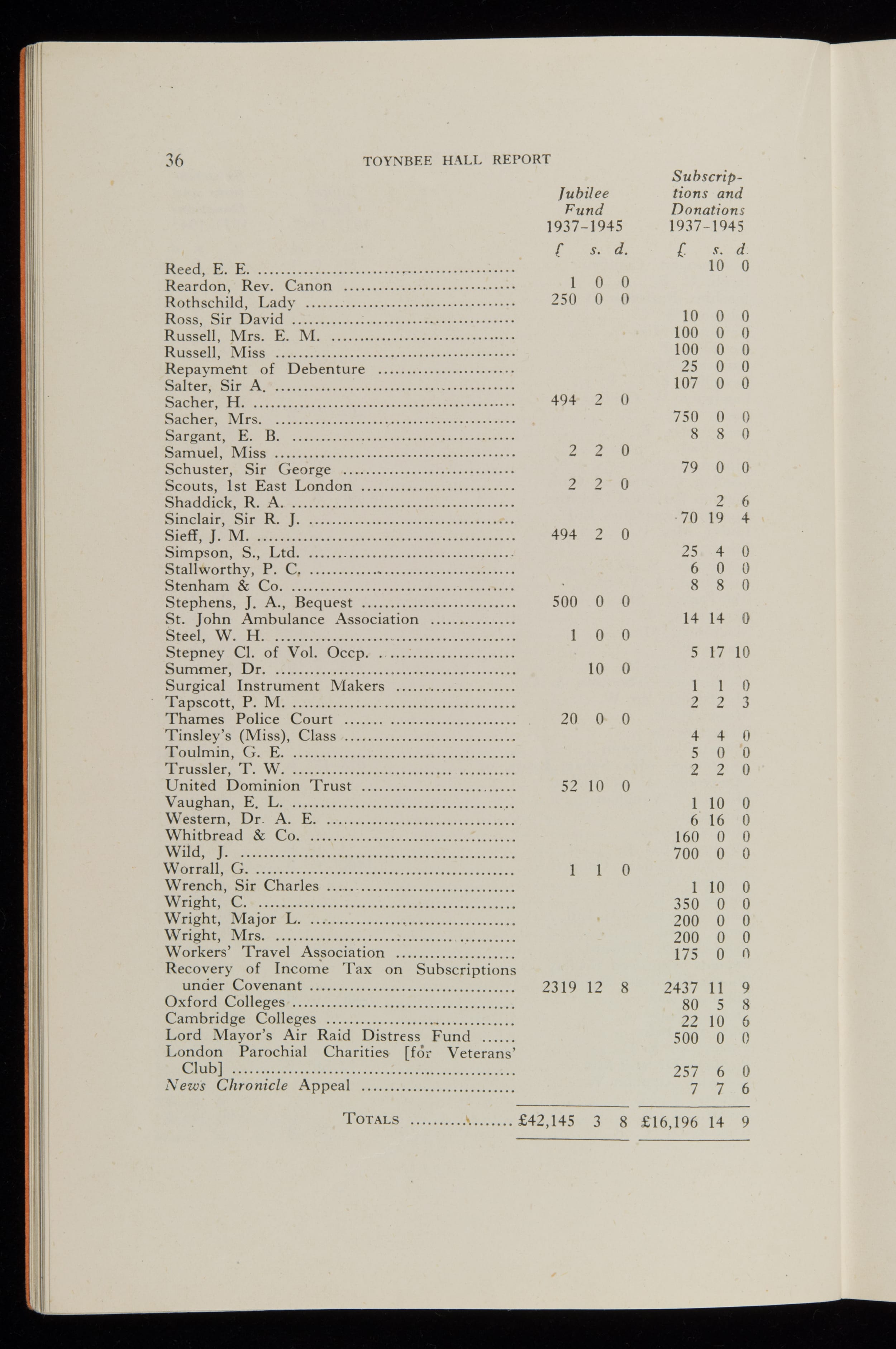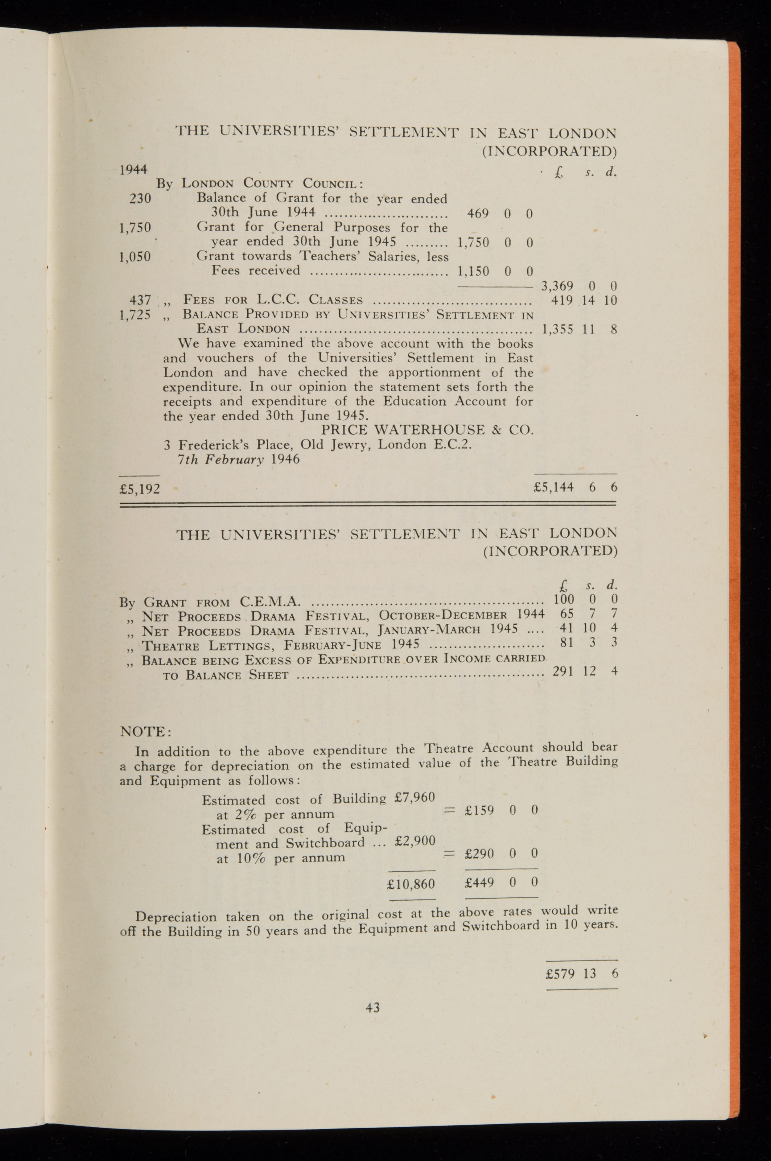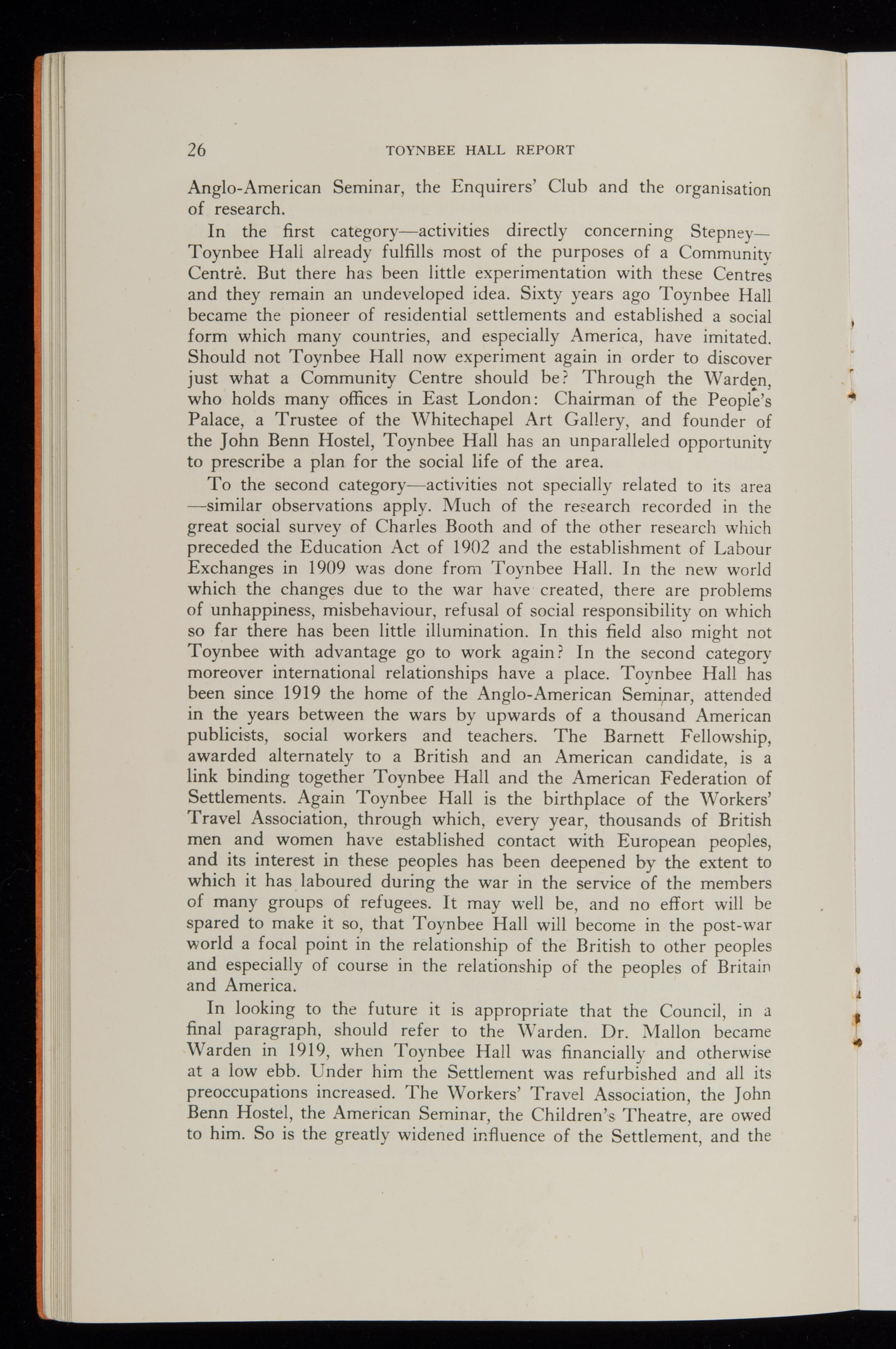 Contains photographs of the Queen Mothers visit, the ballet school and other activities, includes descriptions of special war work, a look back, a look forward and reports on all activities and finance. 1 volume