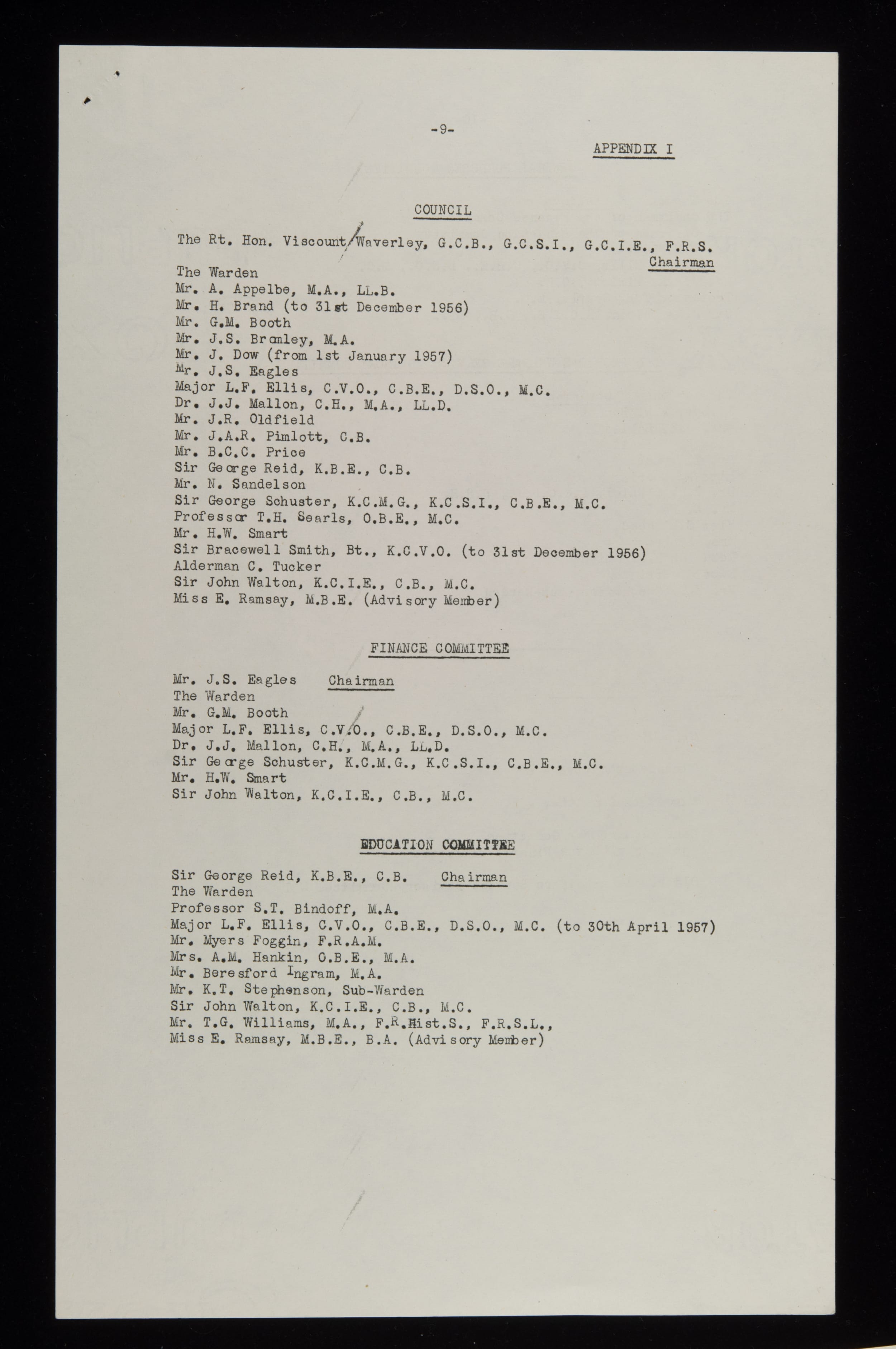 Contains a short financial report, an account of activities and a list of Council members. 1 volume