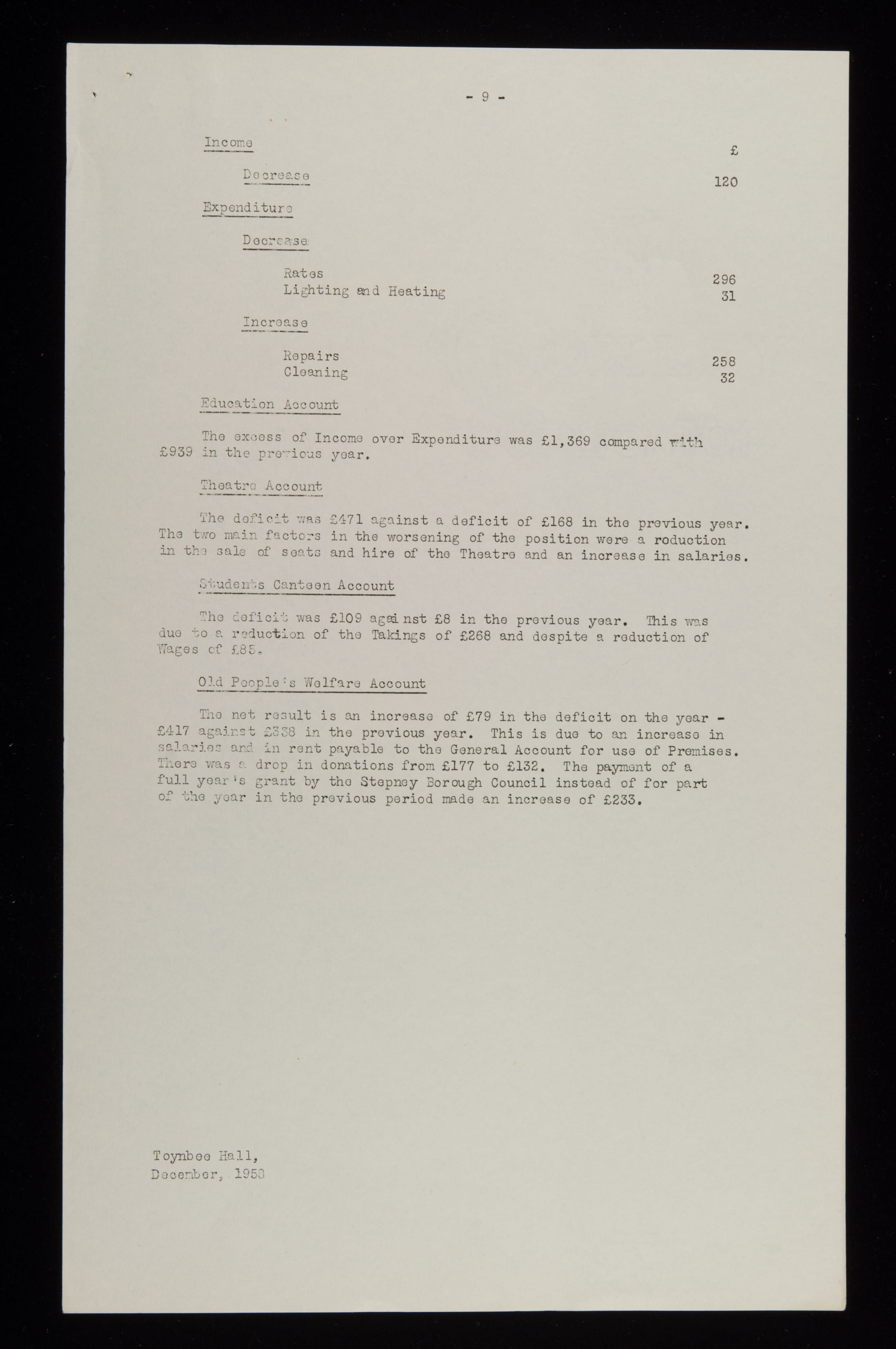 Contains a report on the consideration of future policy particularly regarding adult education classes. 1 volume