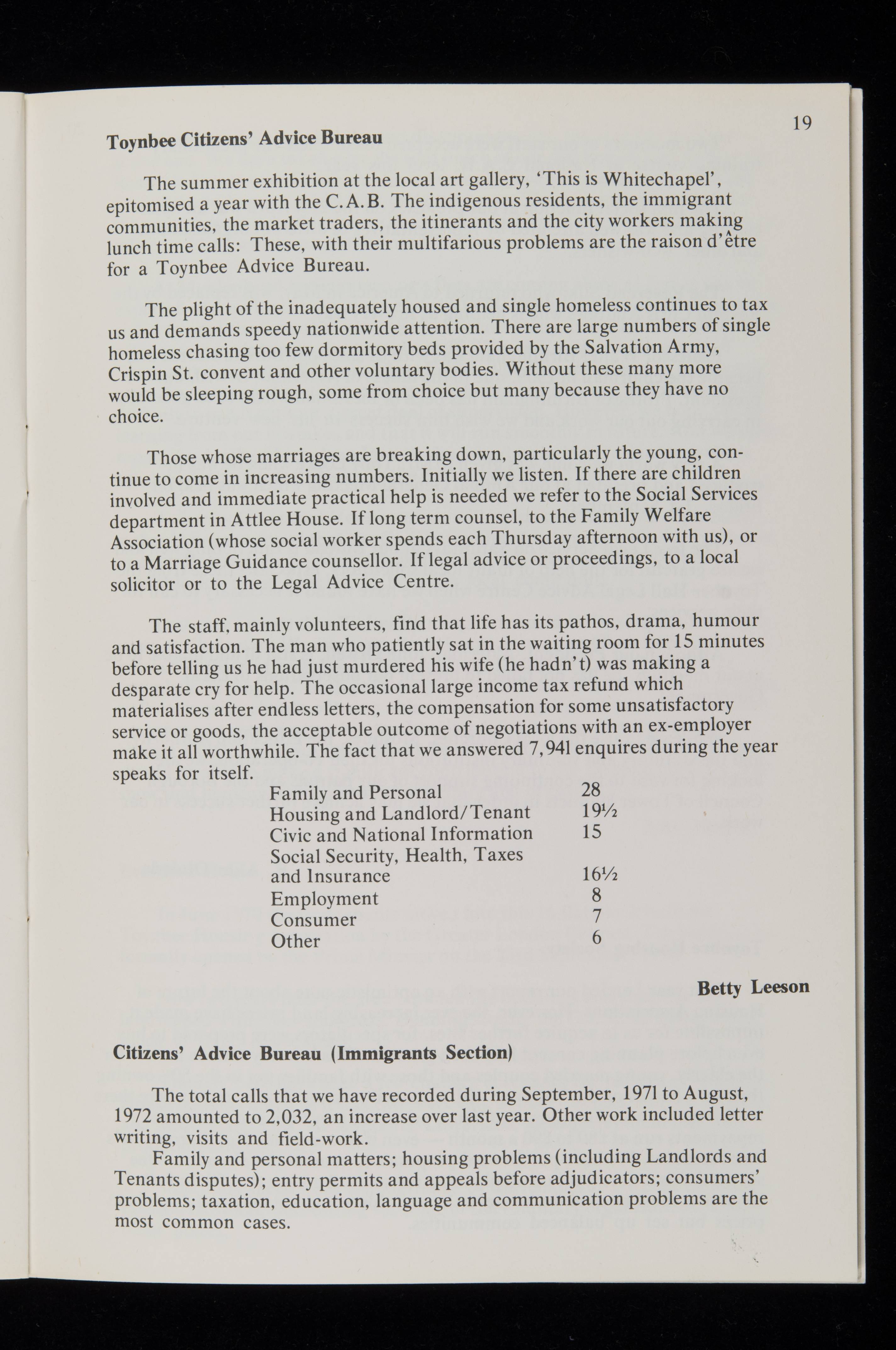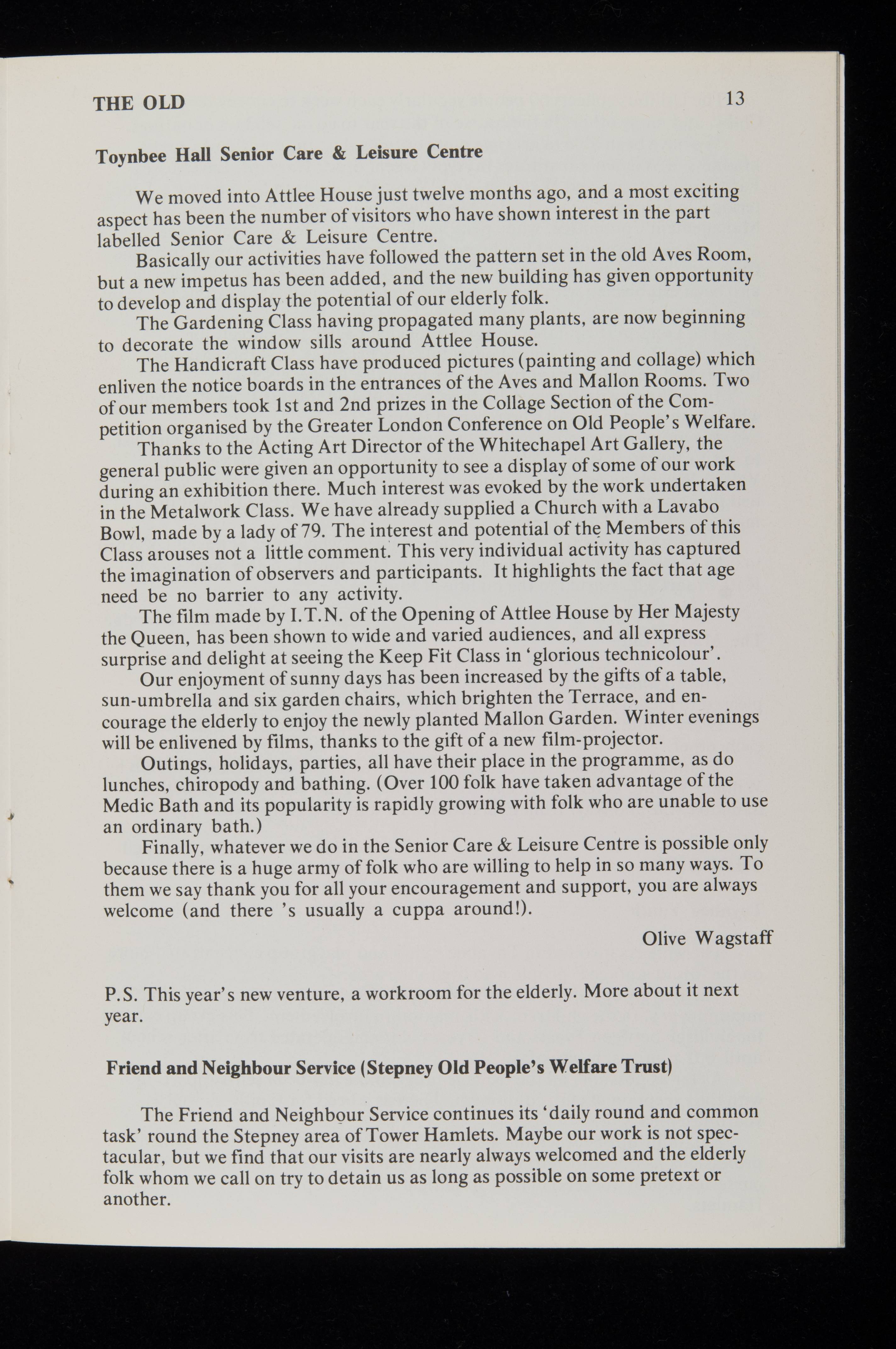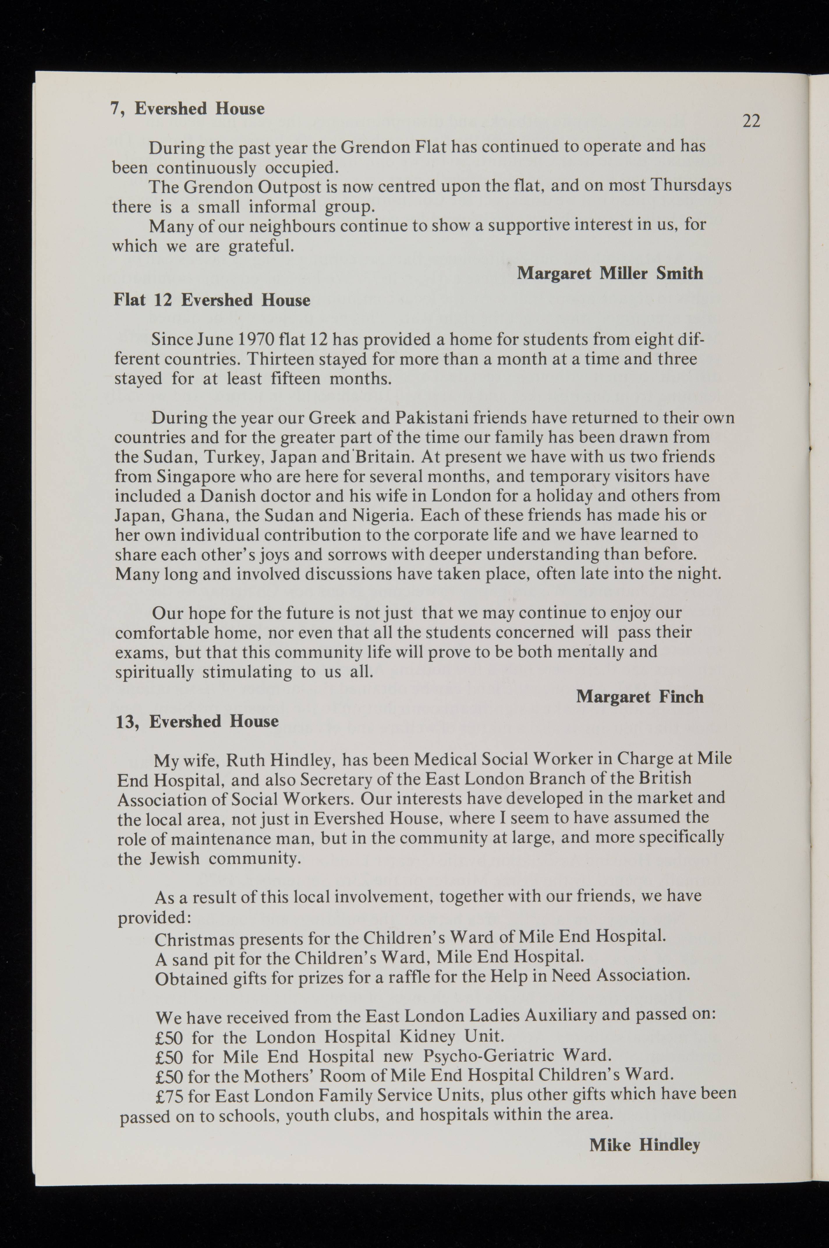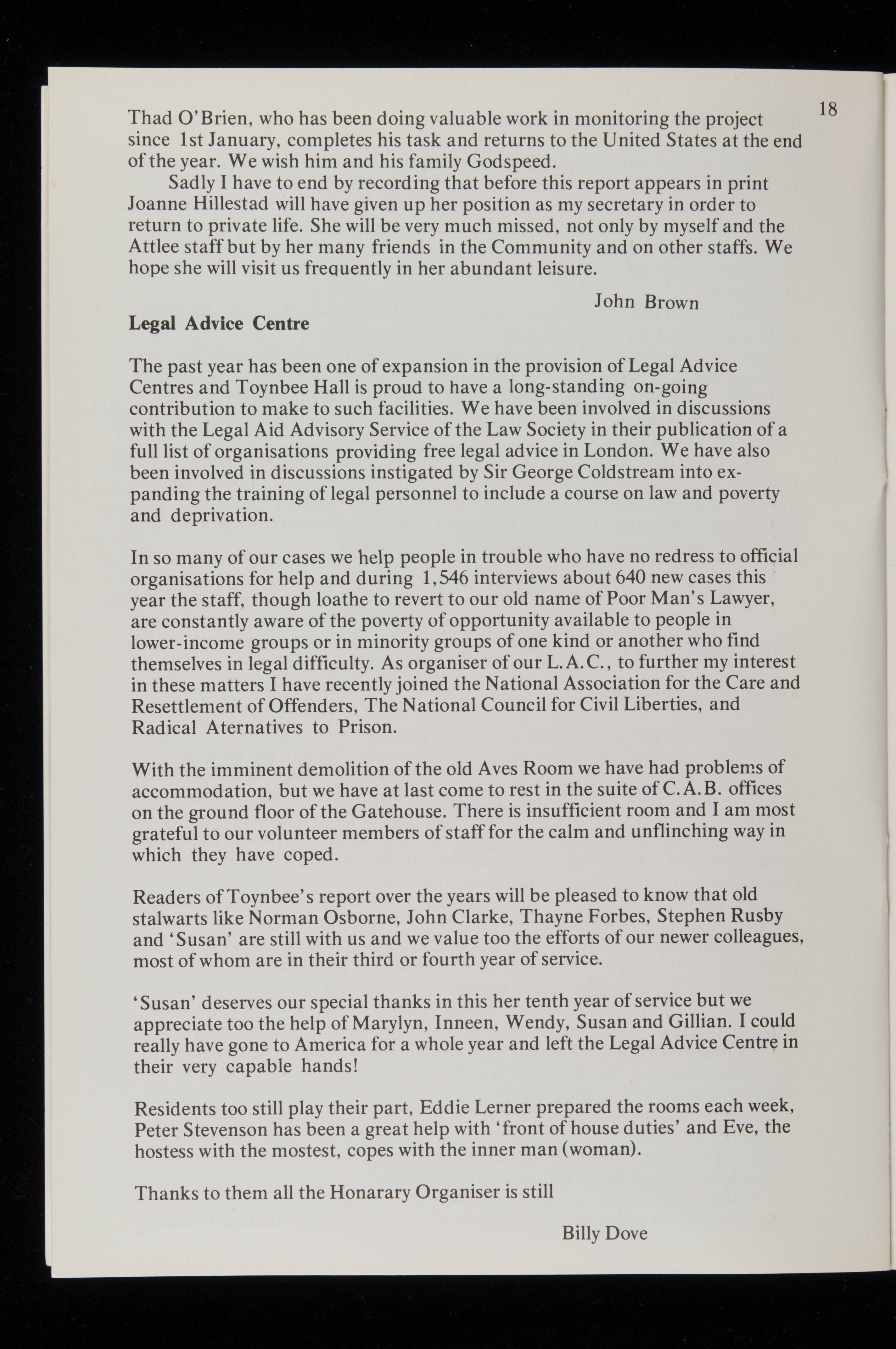 Contains indepth report by Walter Birmingham of all activities at Toynbee Hall. 1 volume