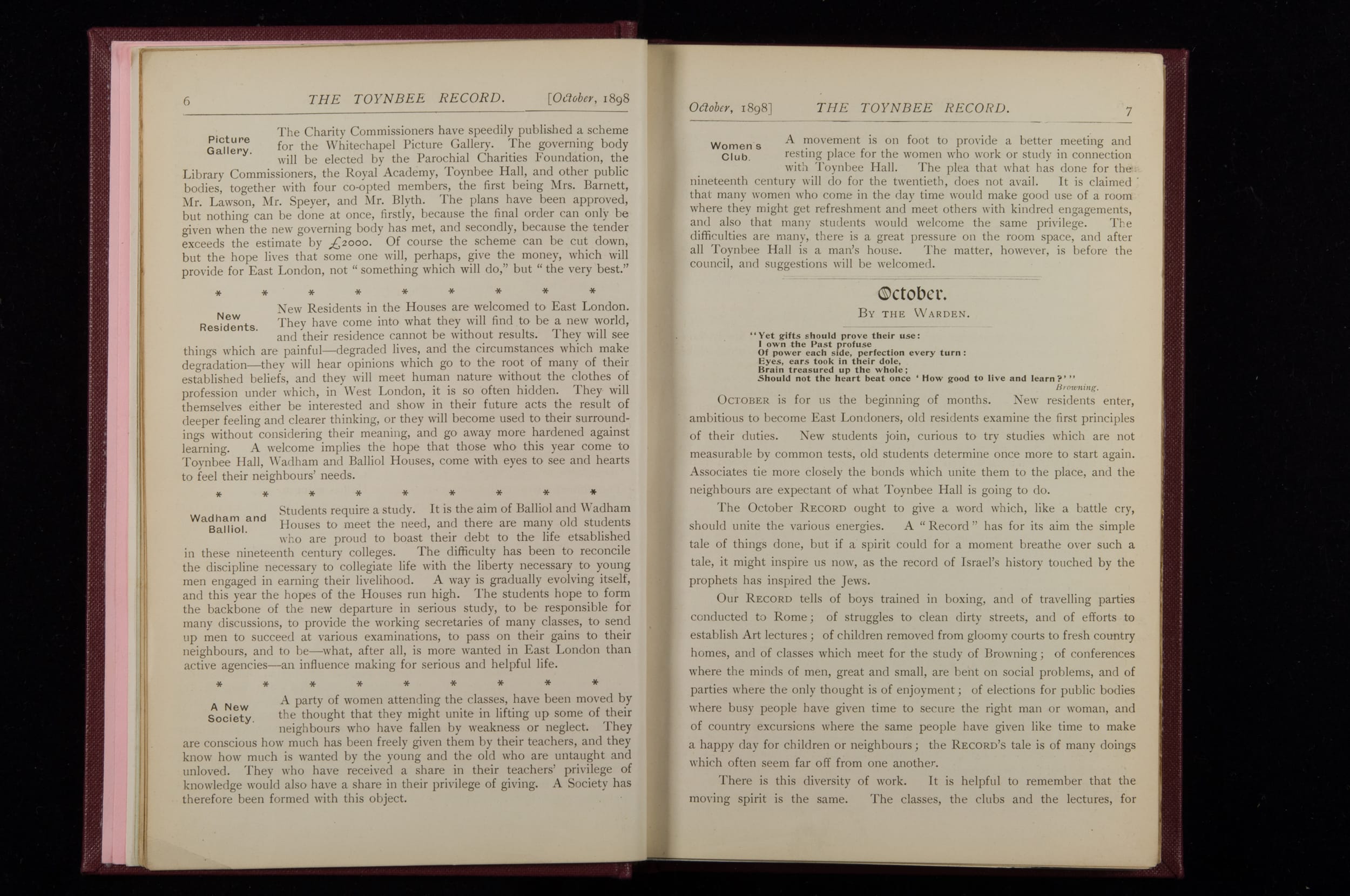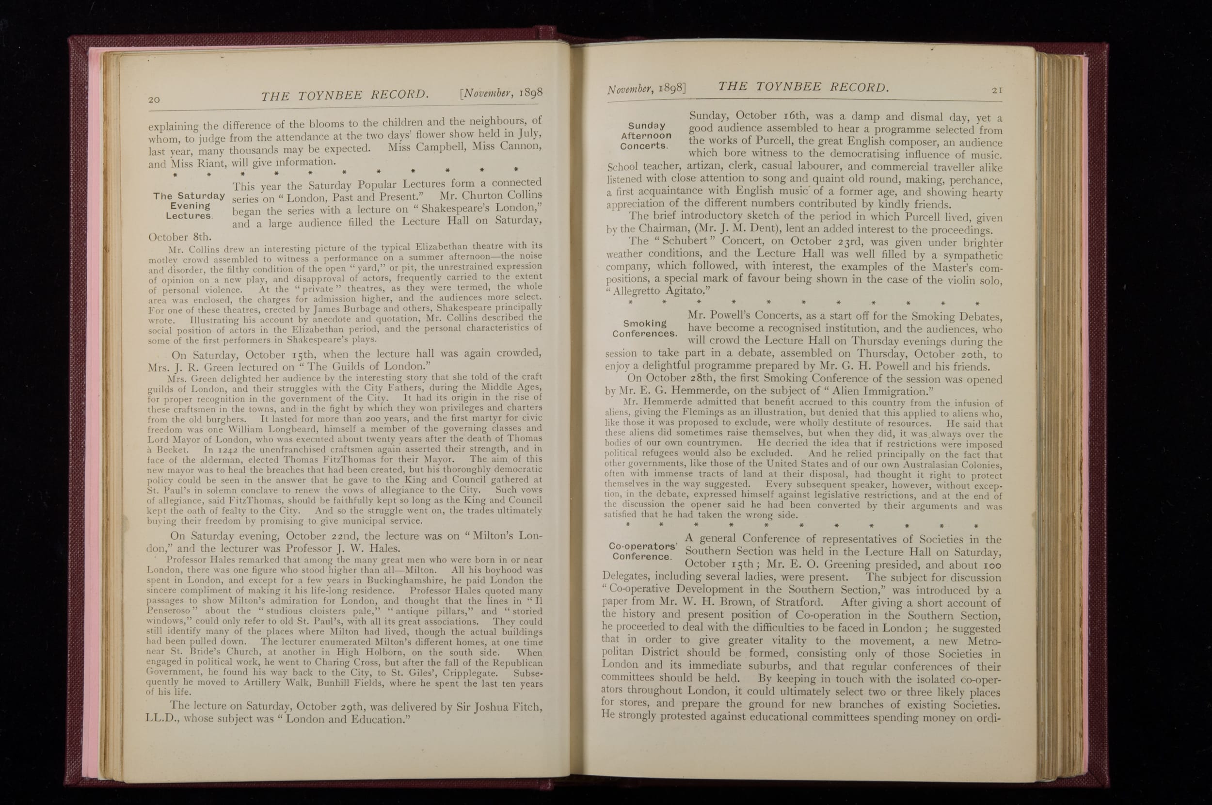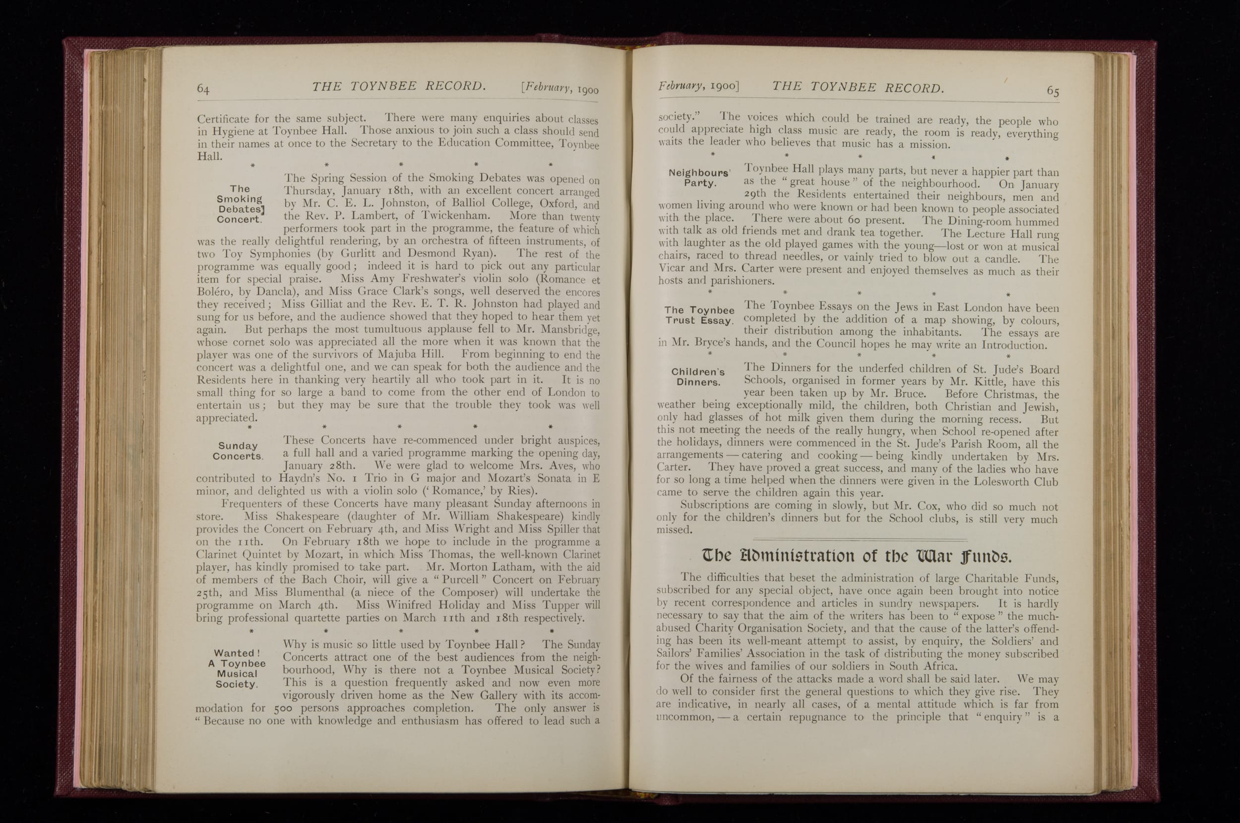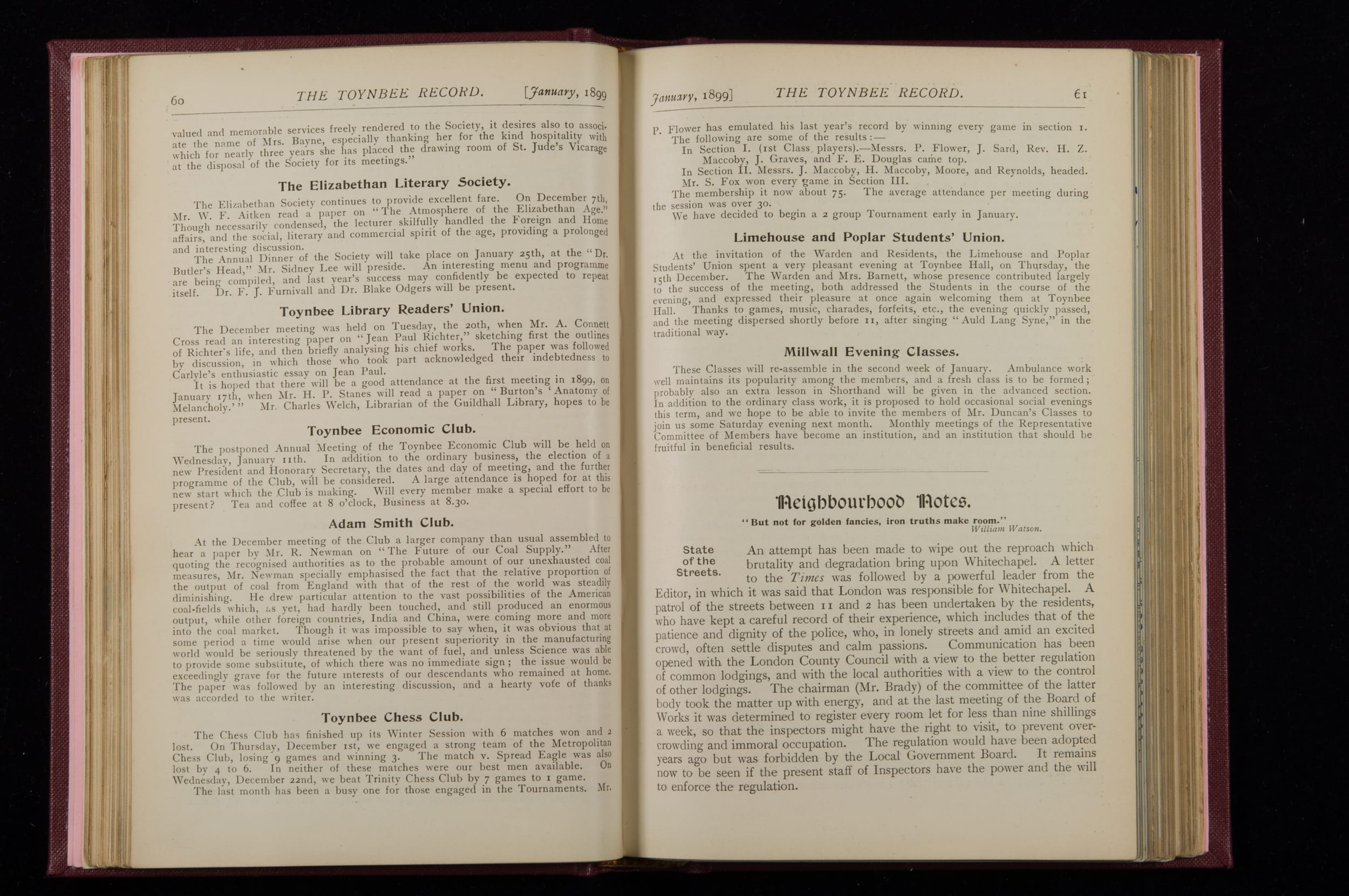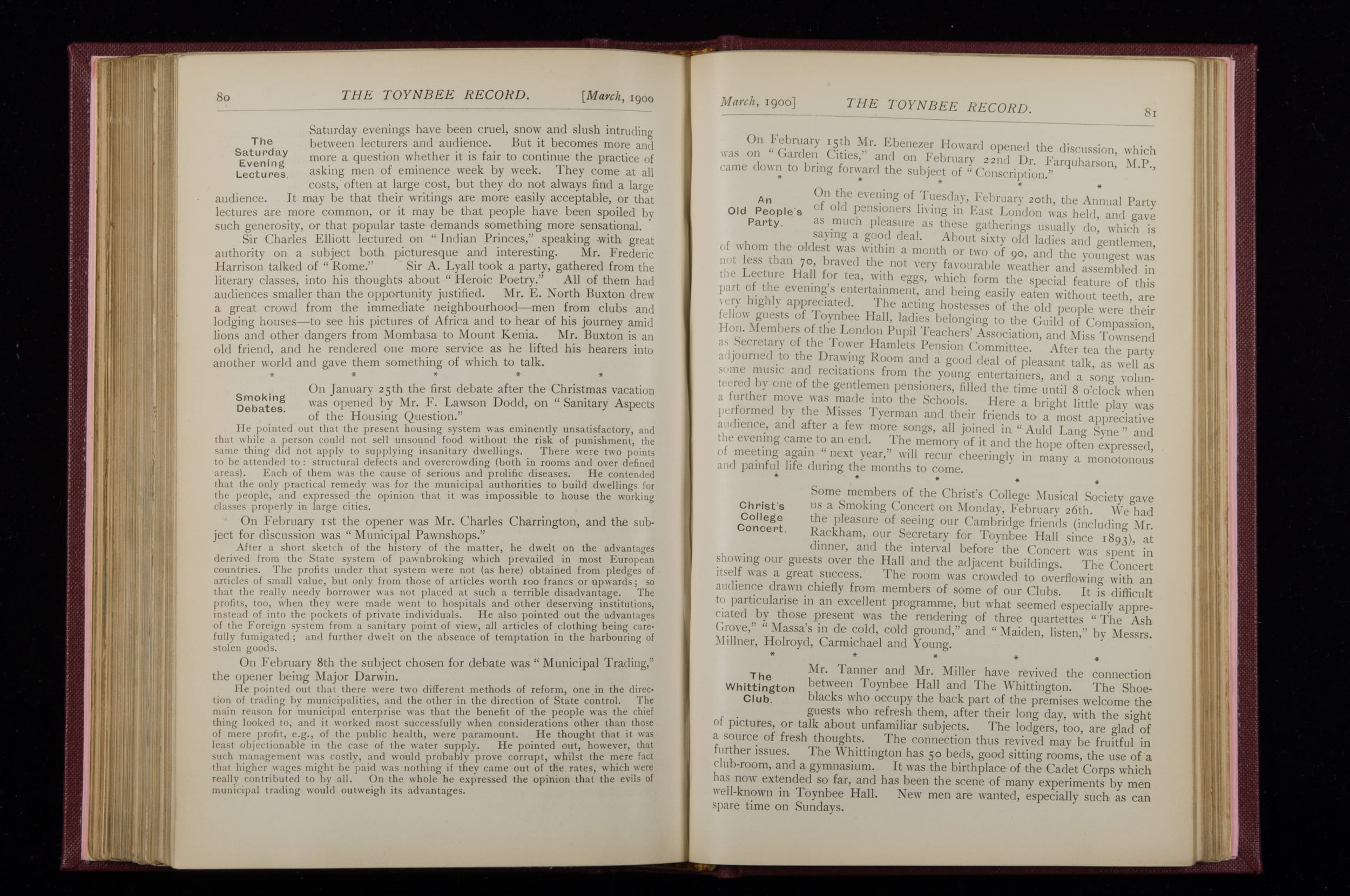 Toynbee Hall Record 1898 – 1900