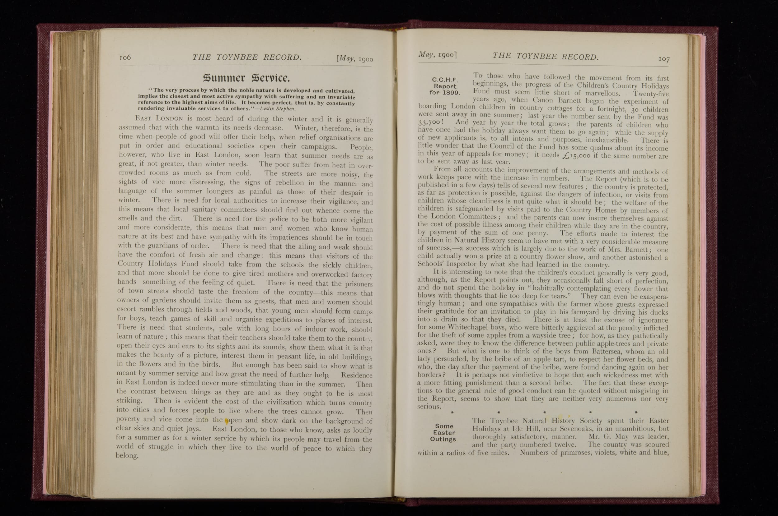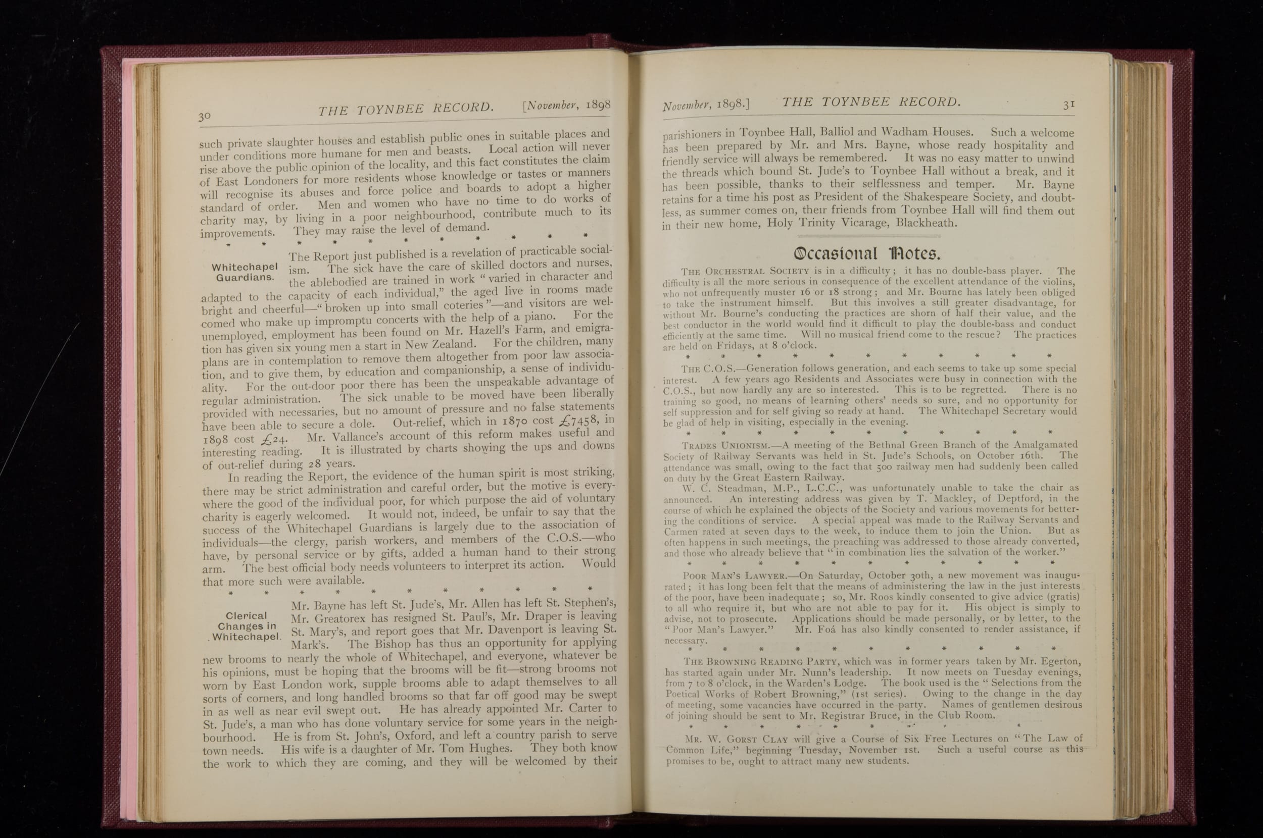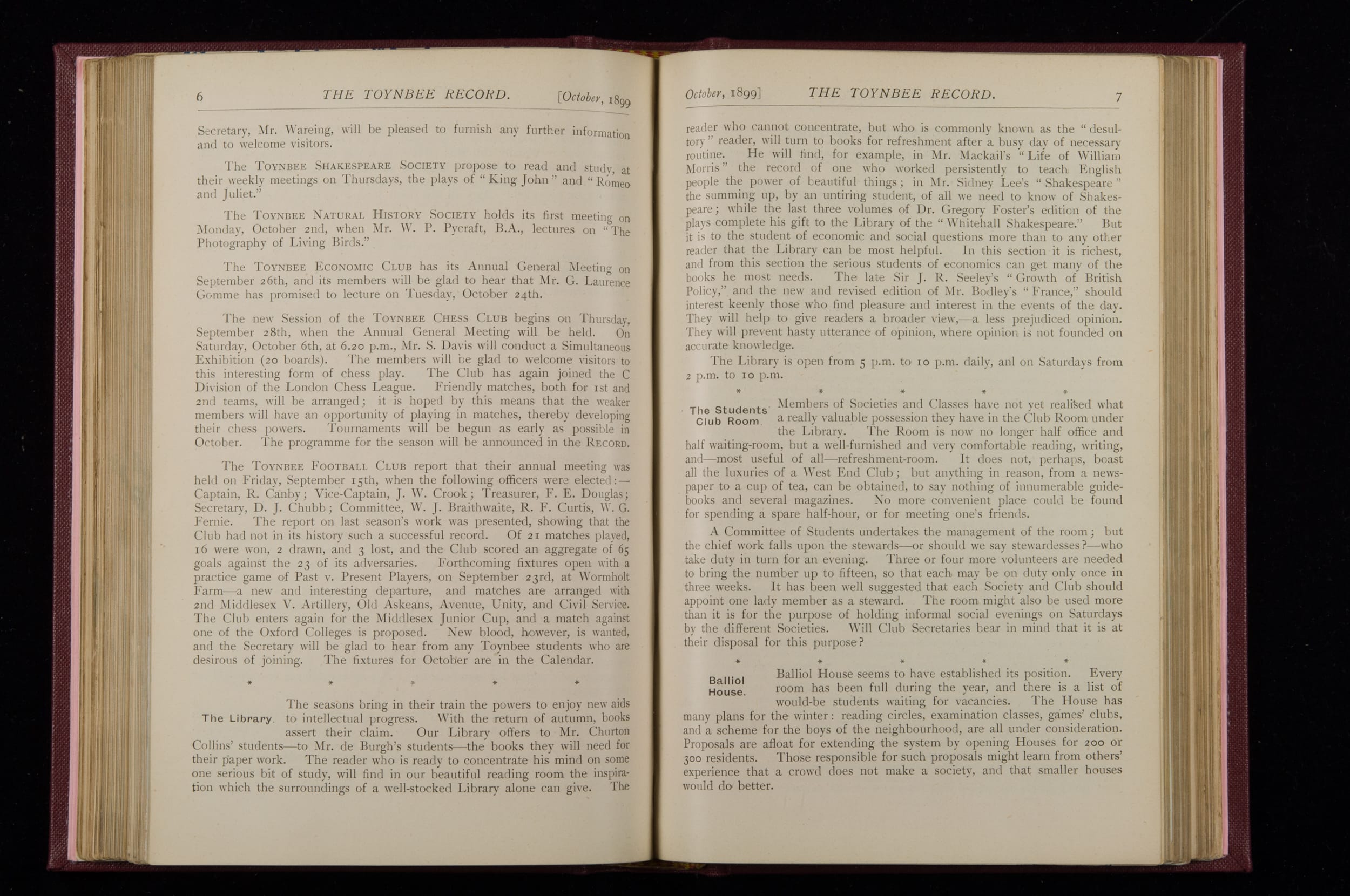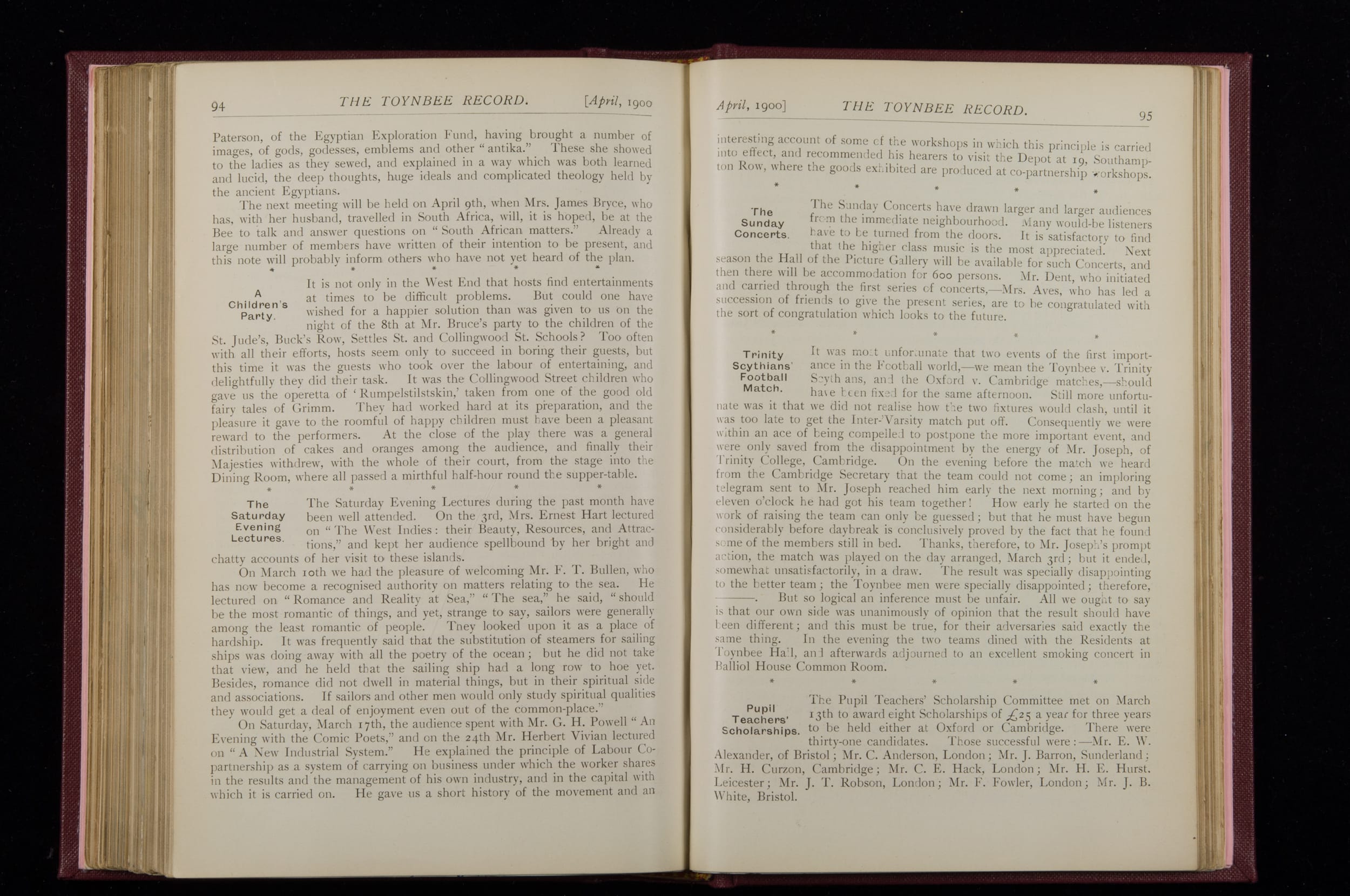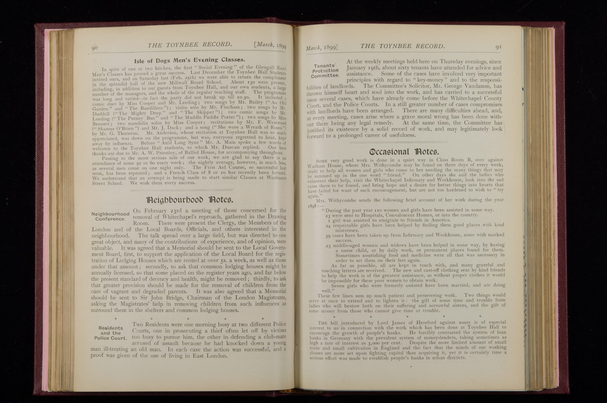Toynbee Hall Record 1898 – 1900