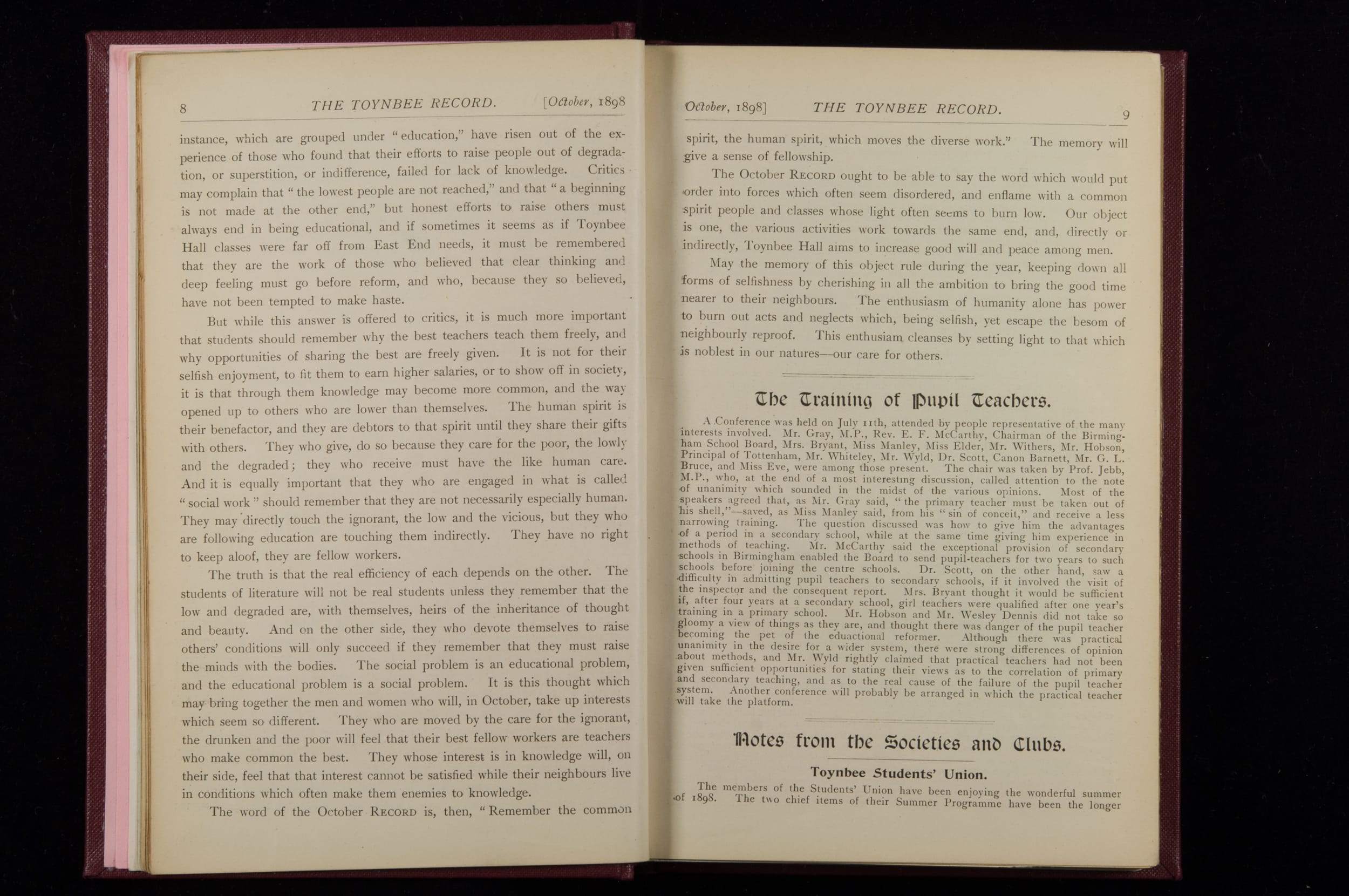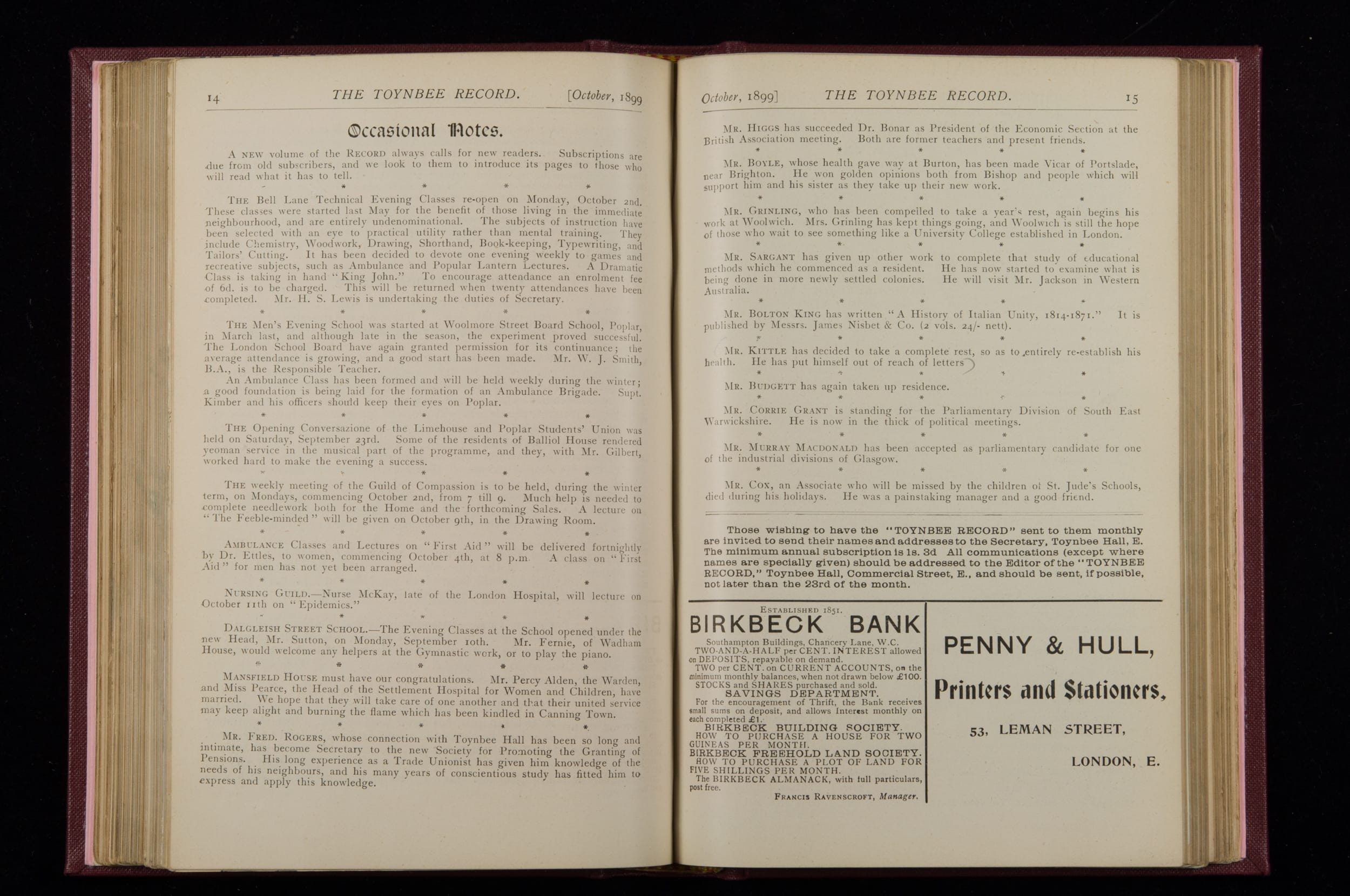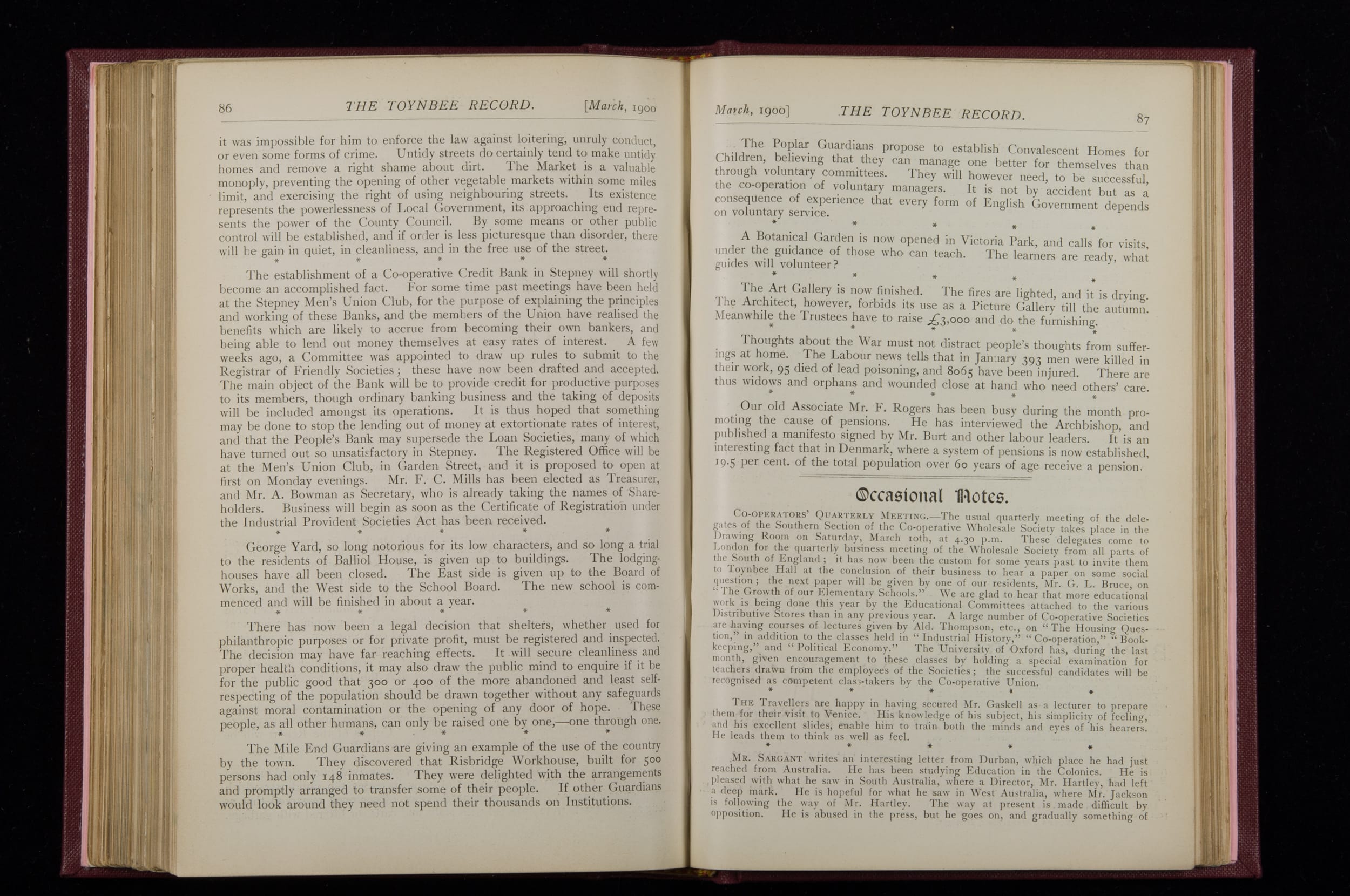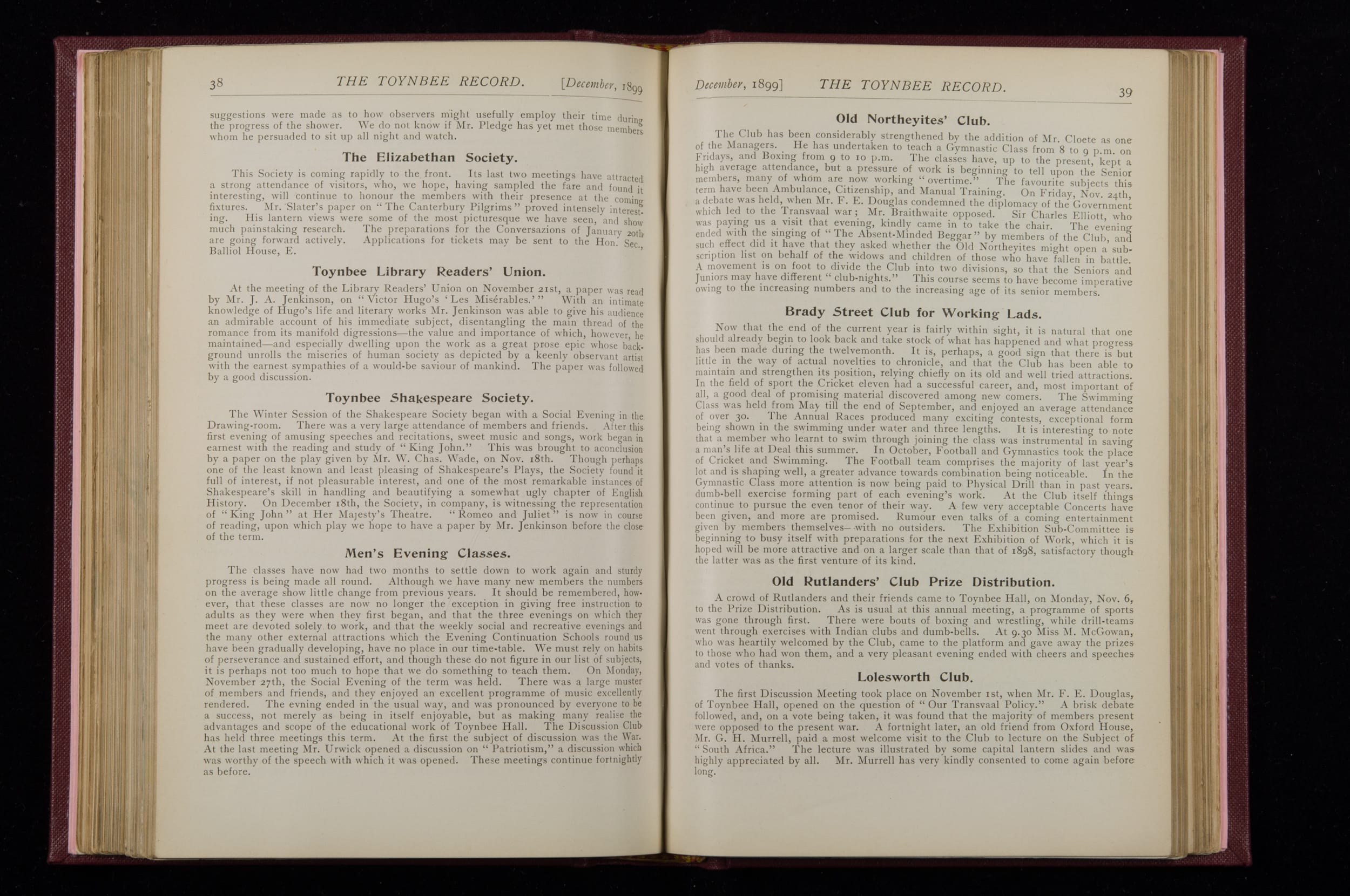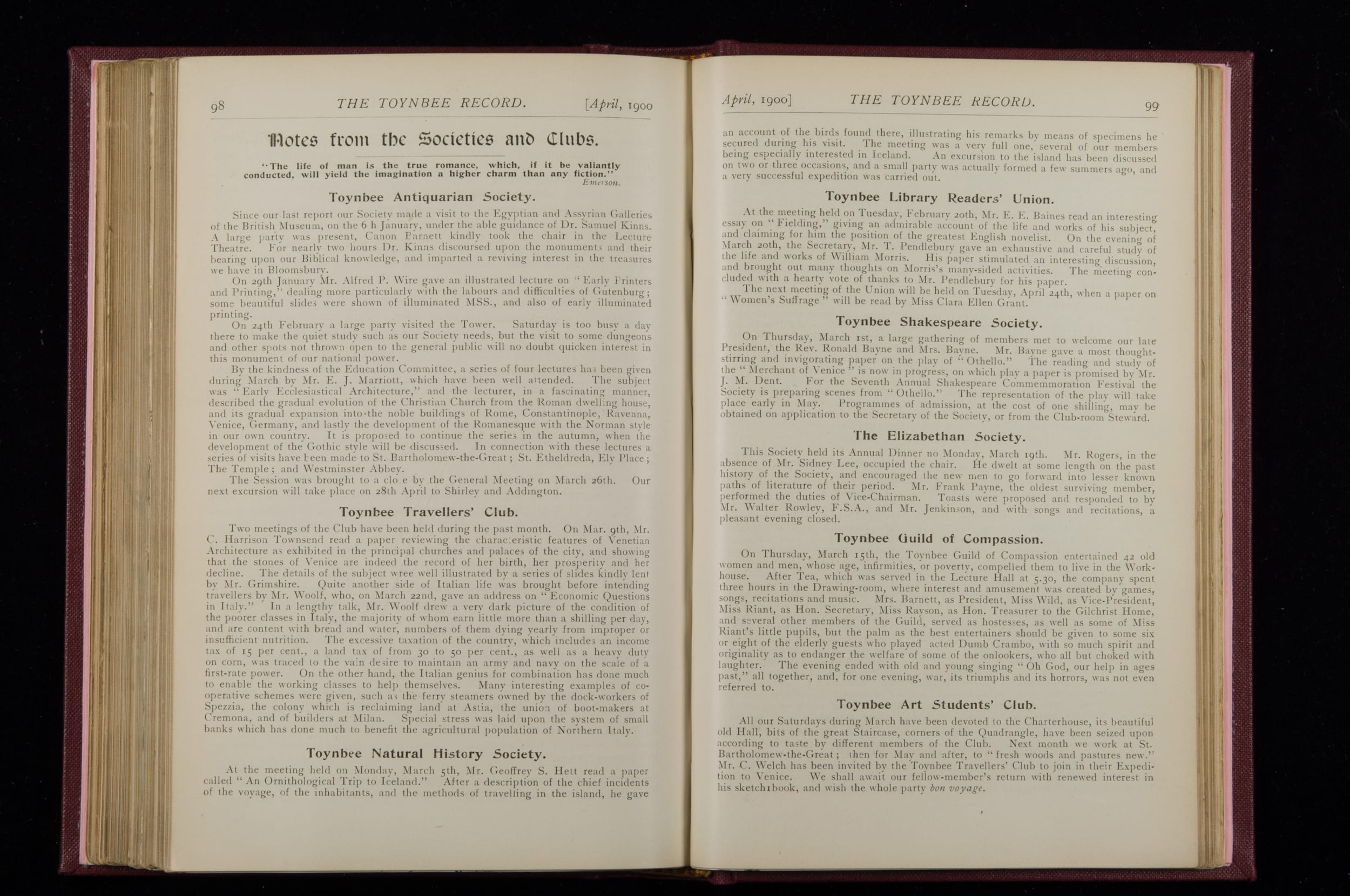 Toynbee Hall Record 1898 – 1900