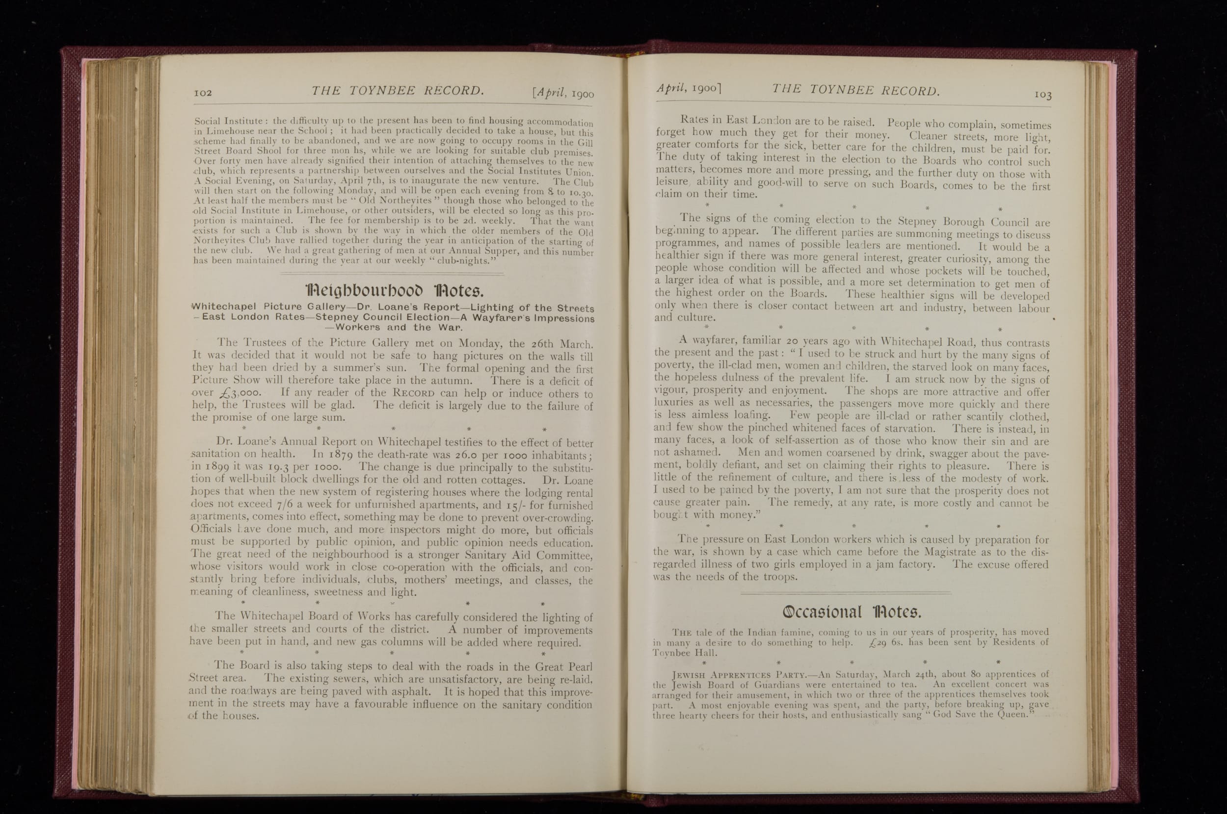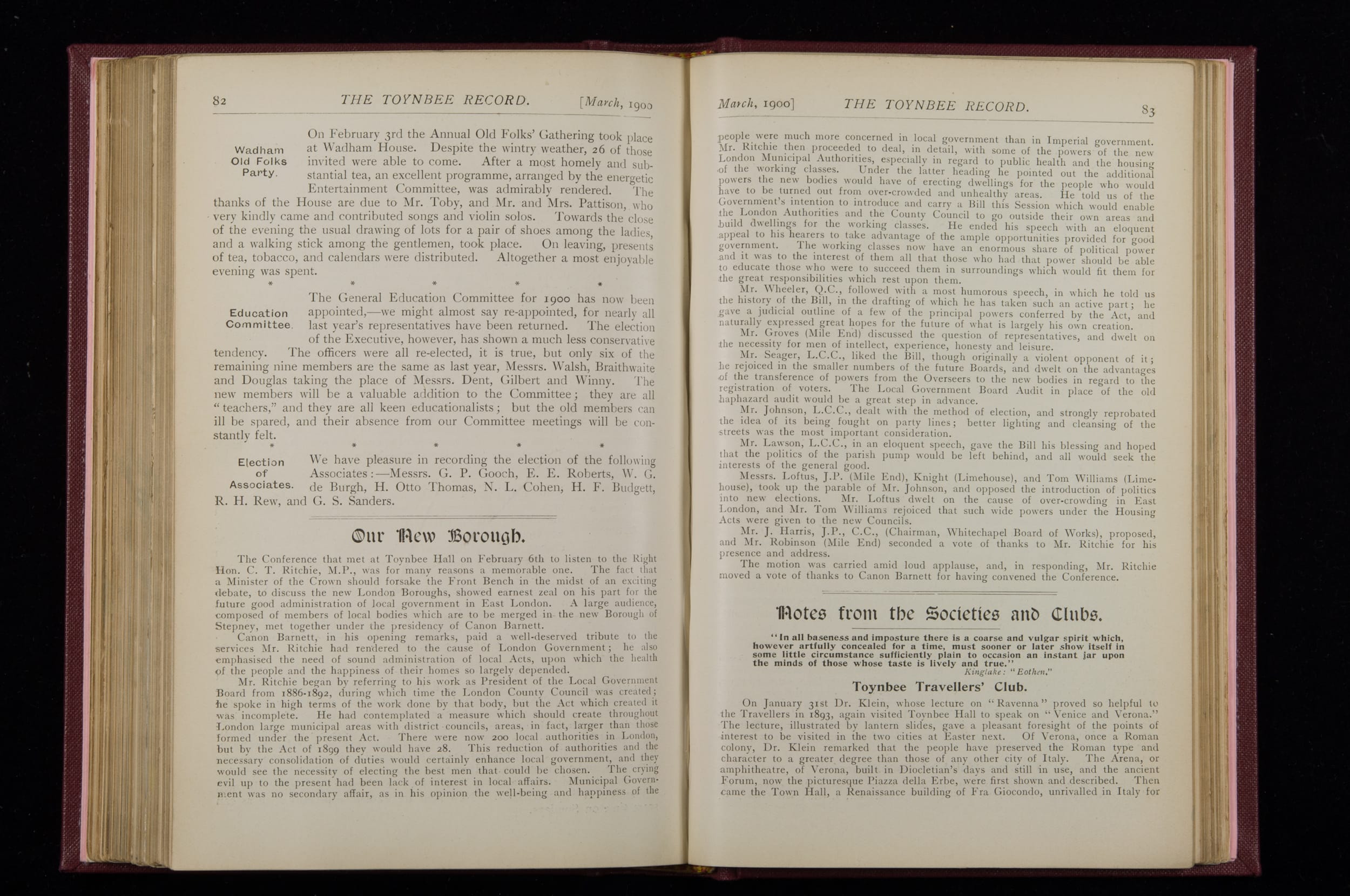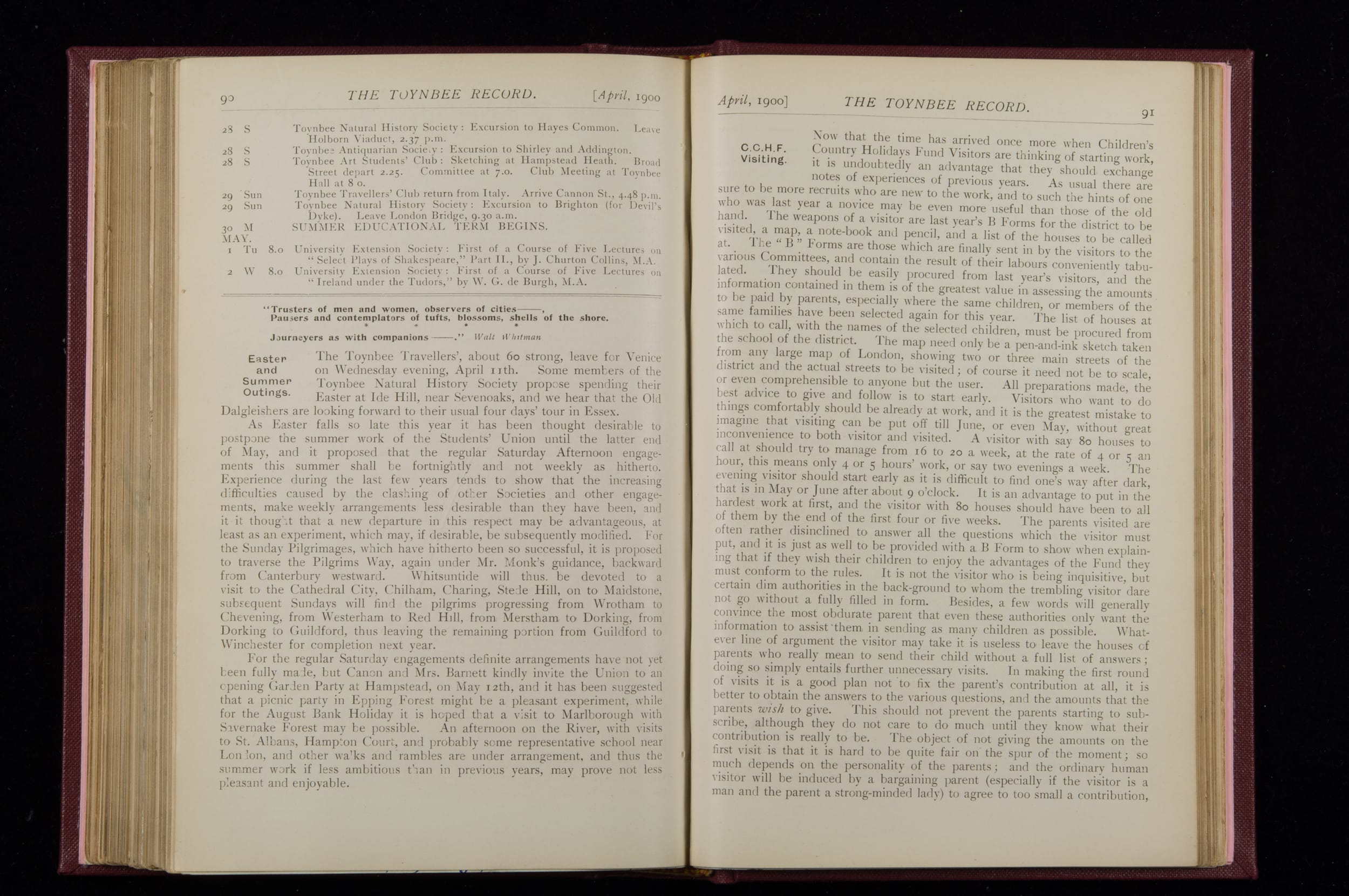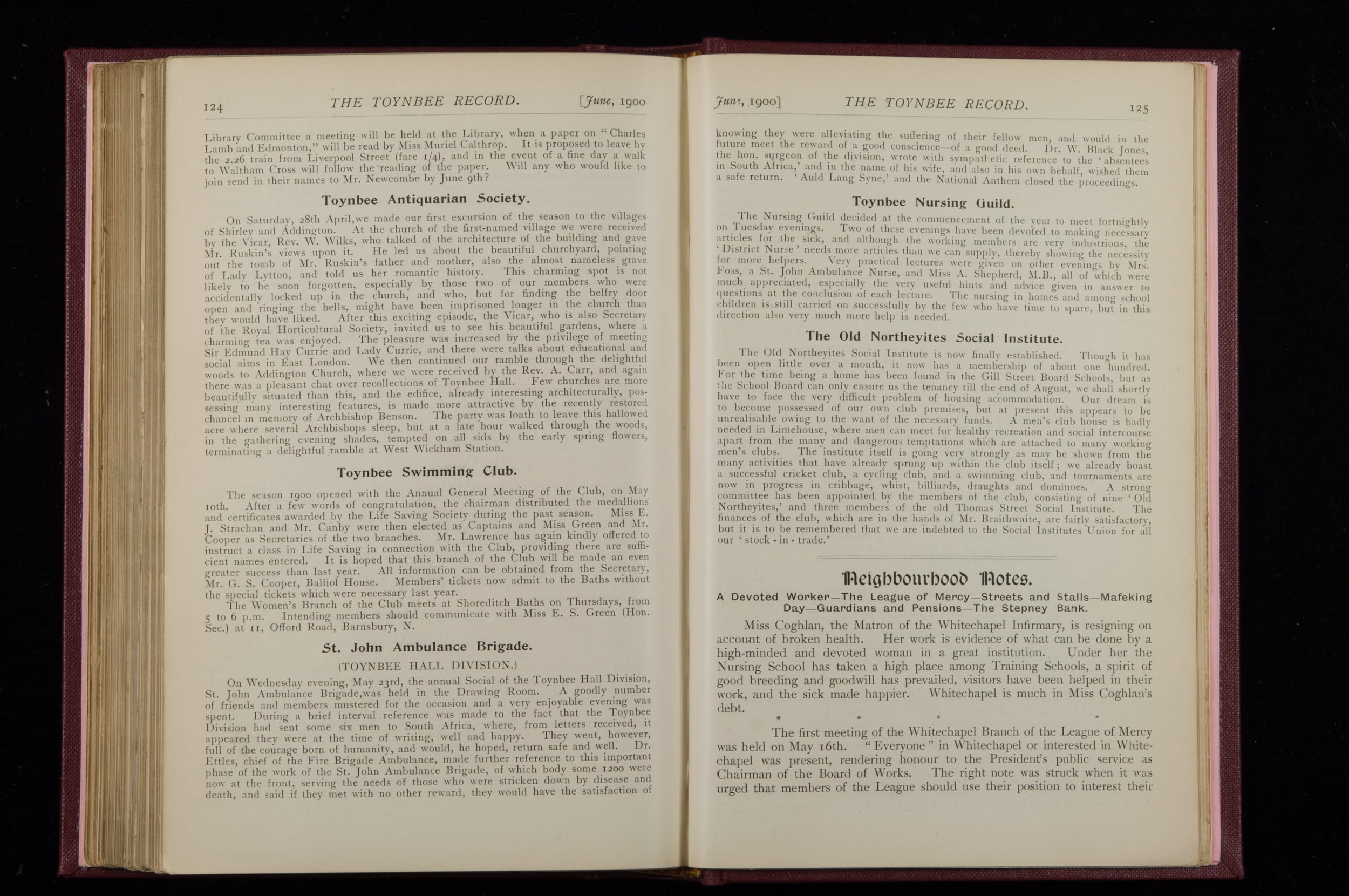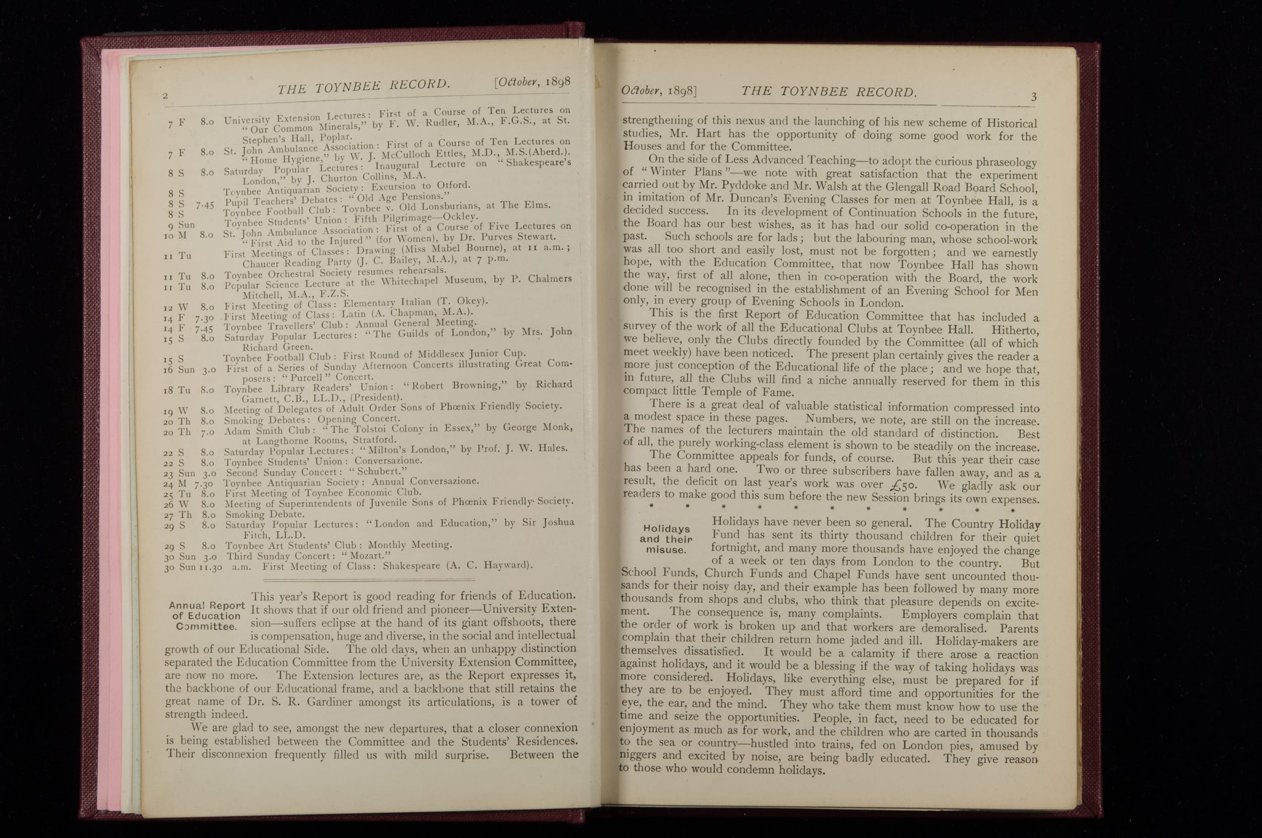 Toynbee Hall Record 1898 – 1900