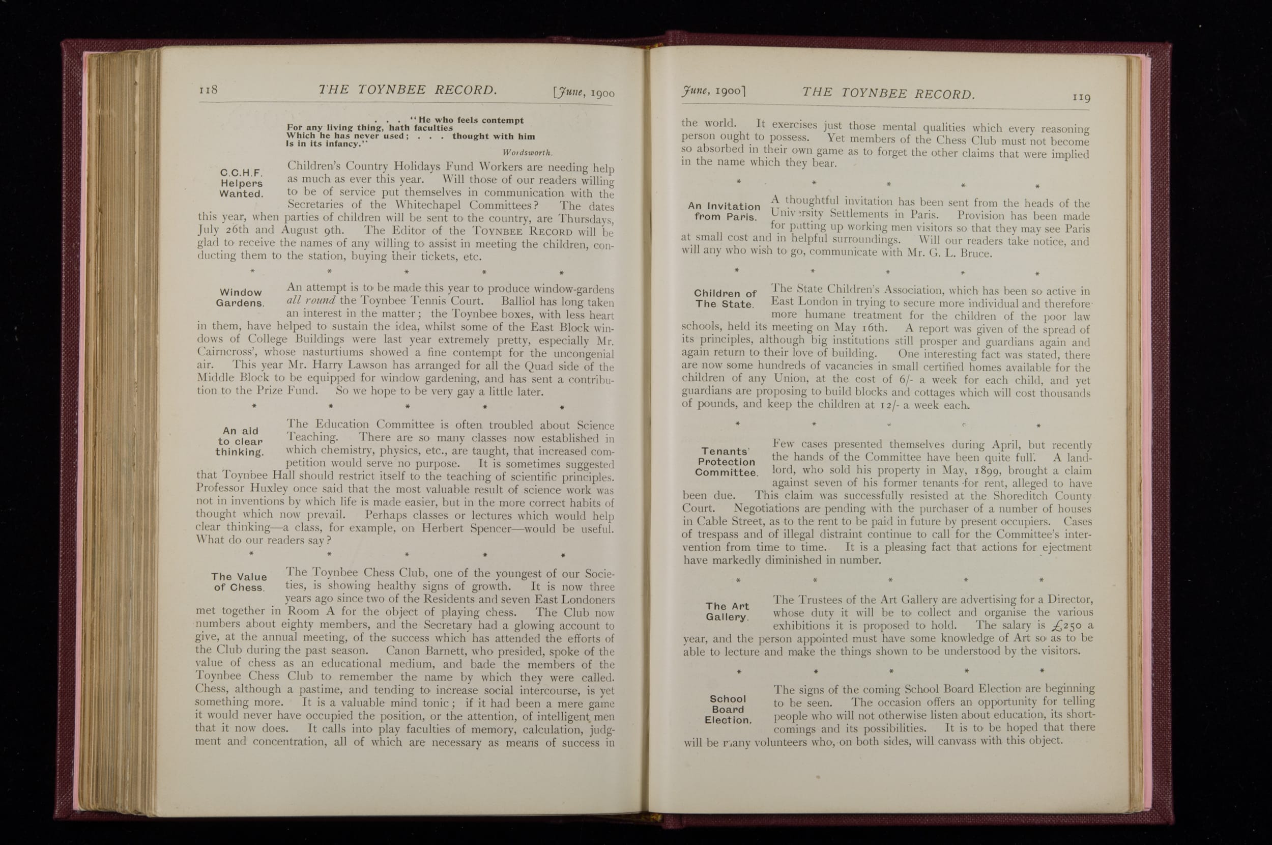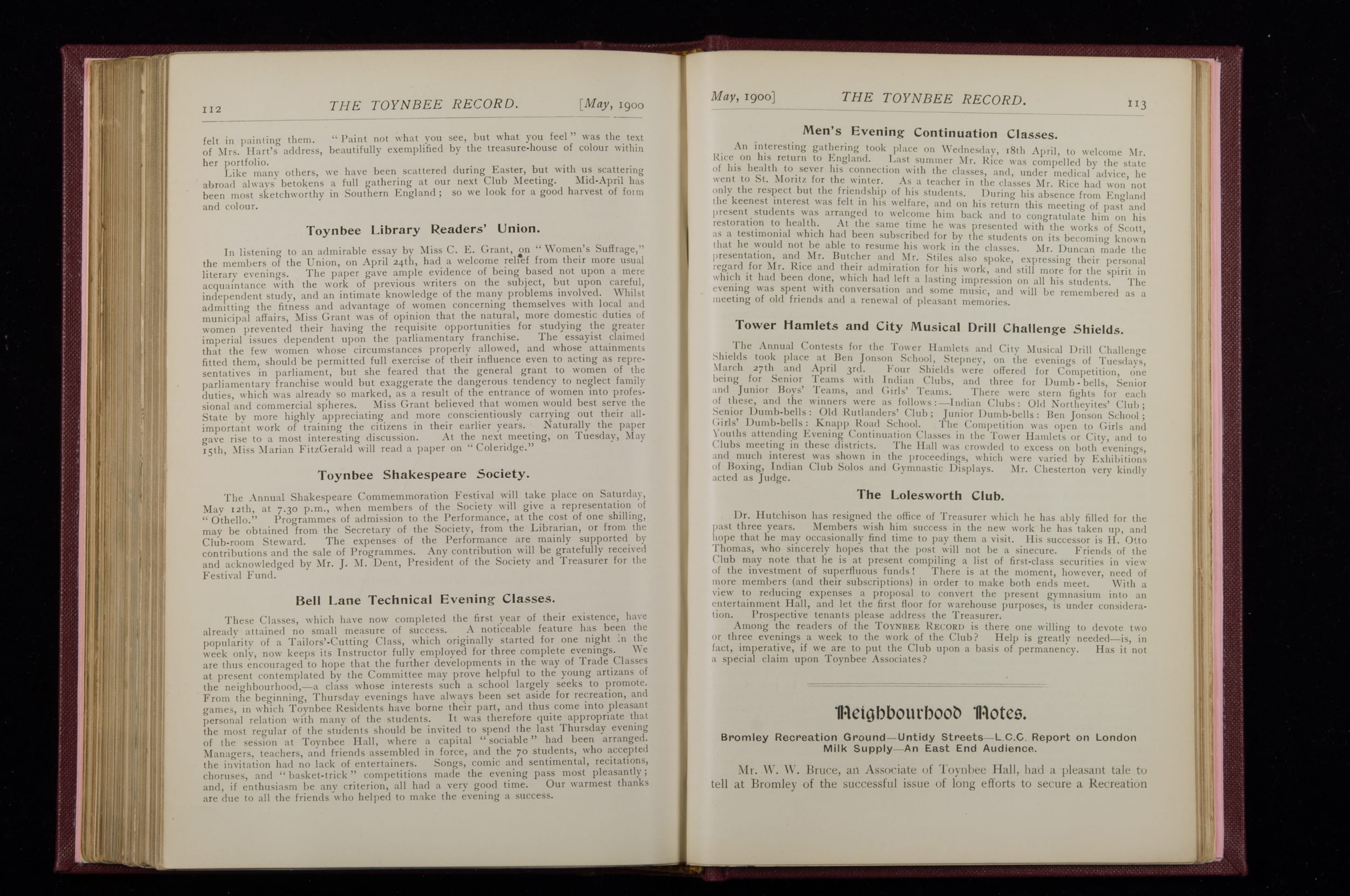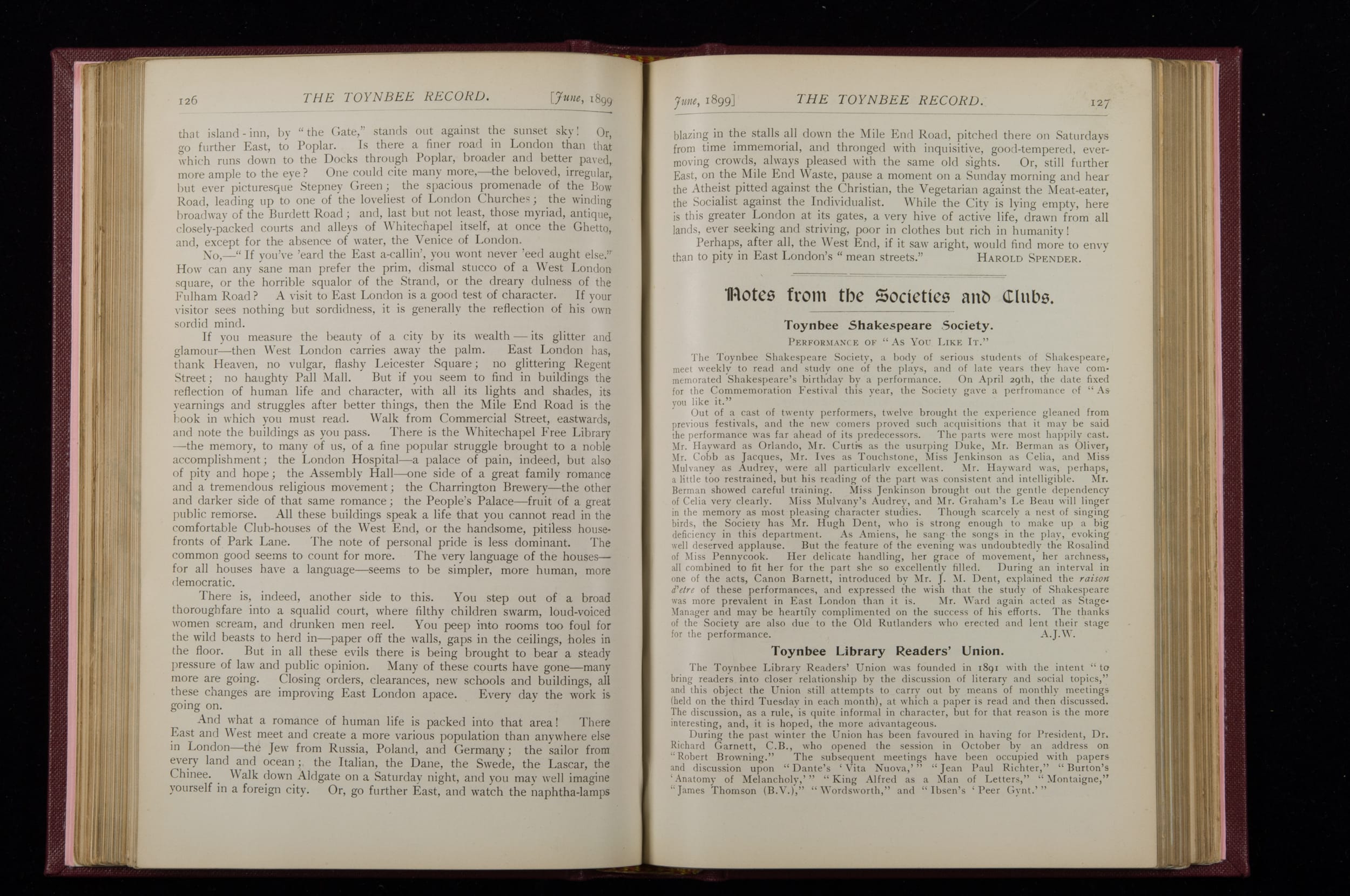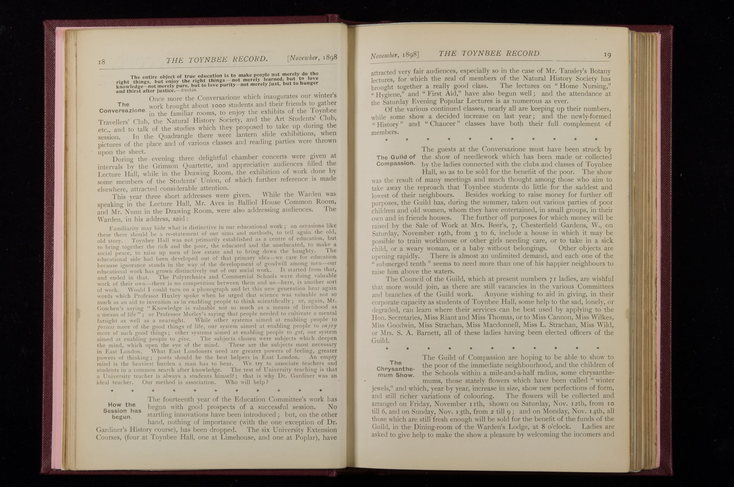 Toynbee Hall Record 1898 – 1900