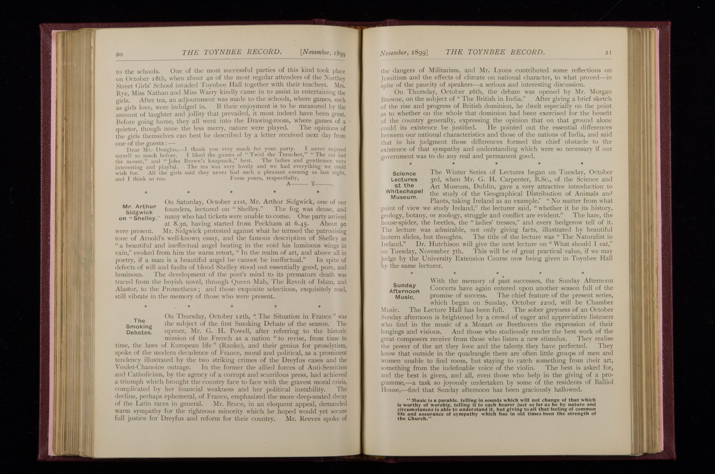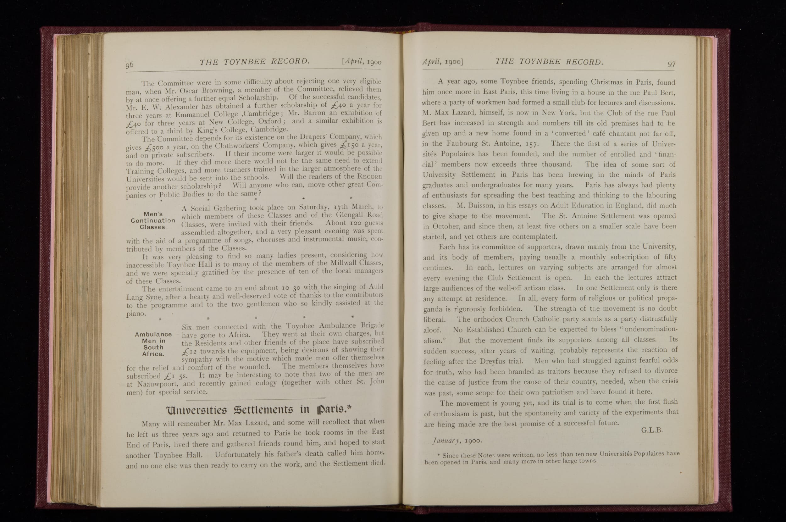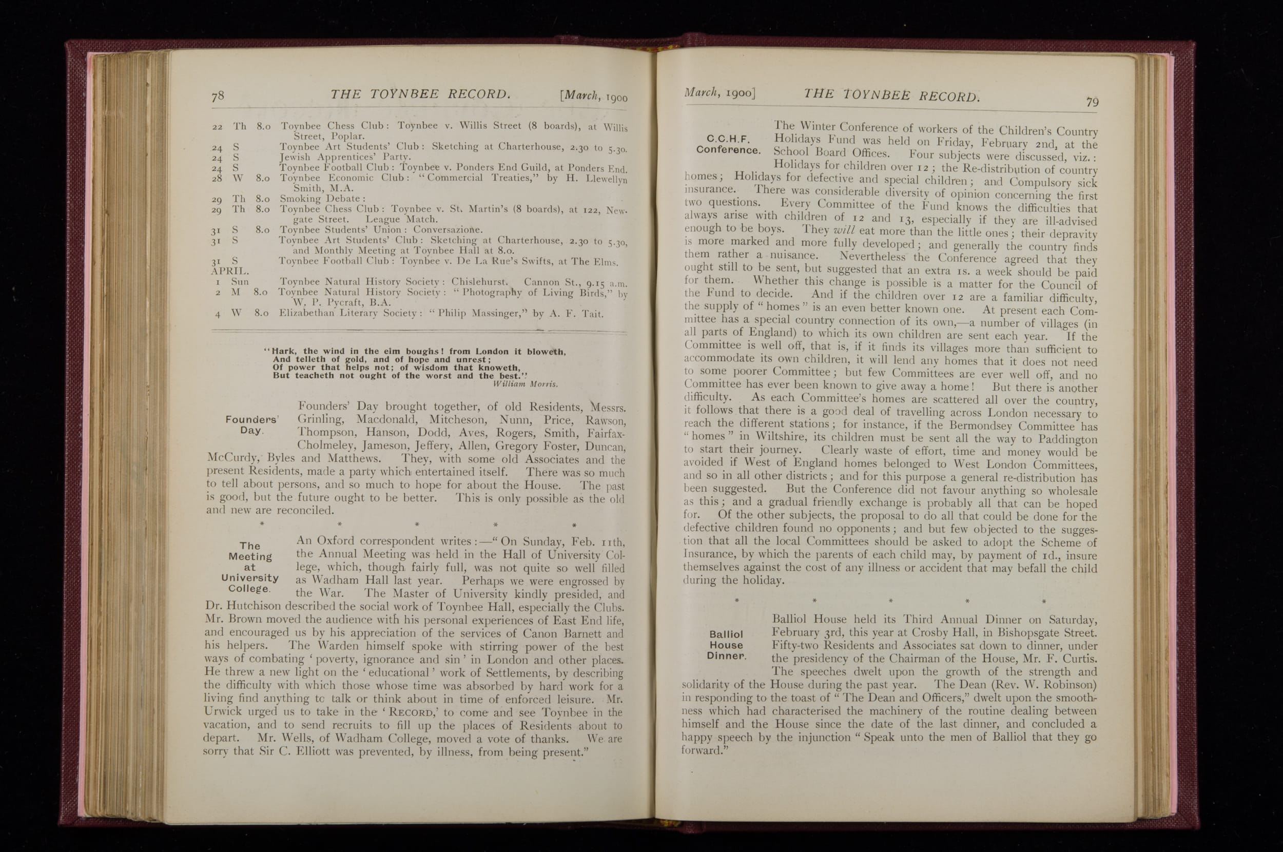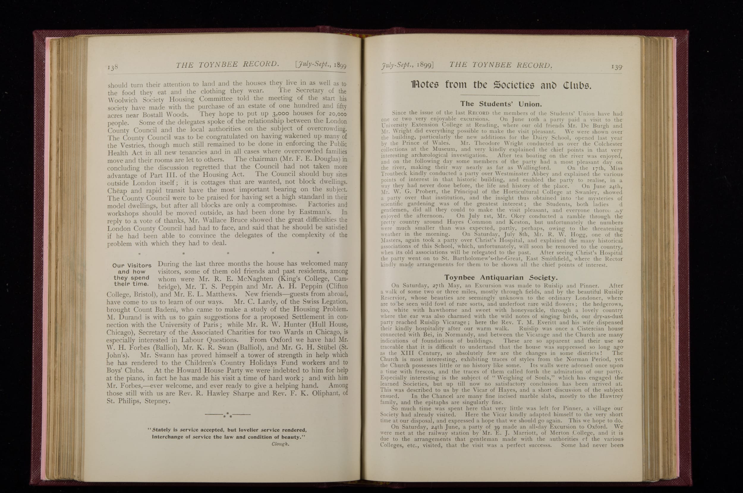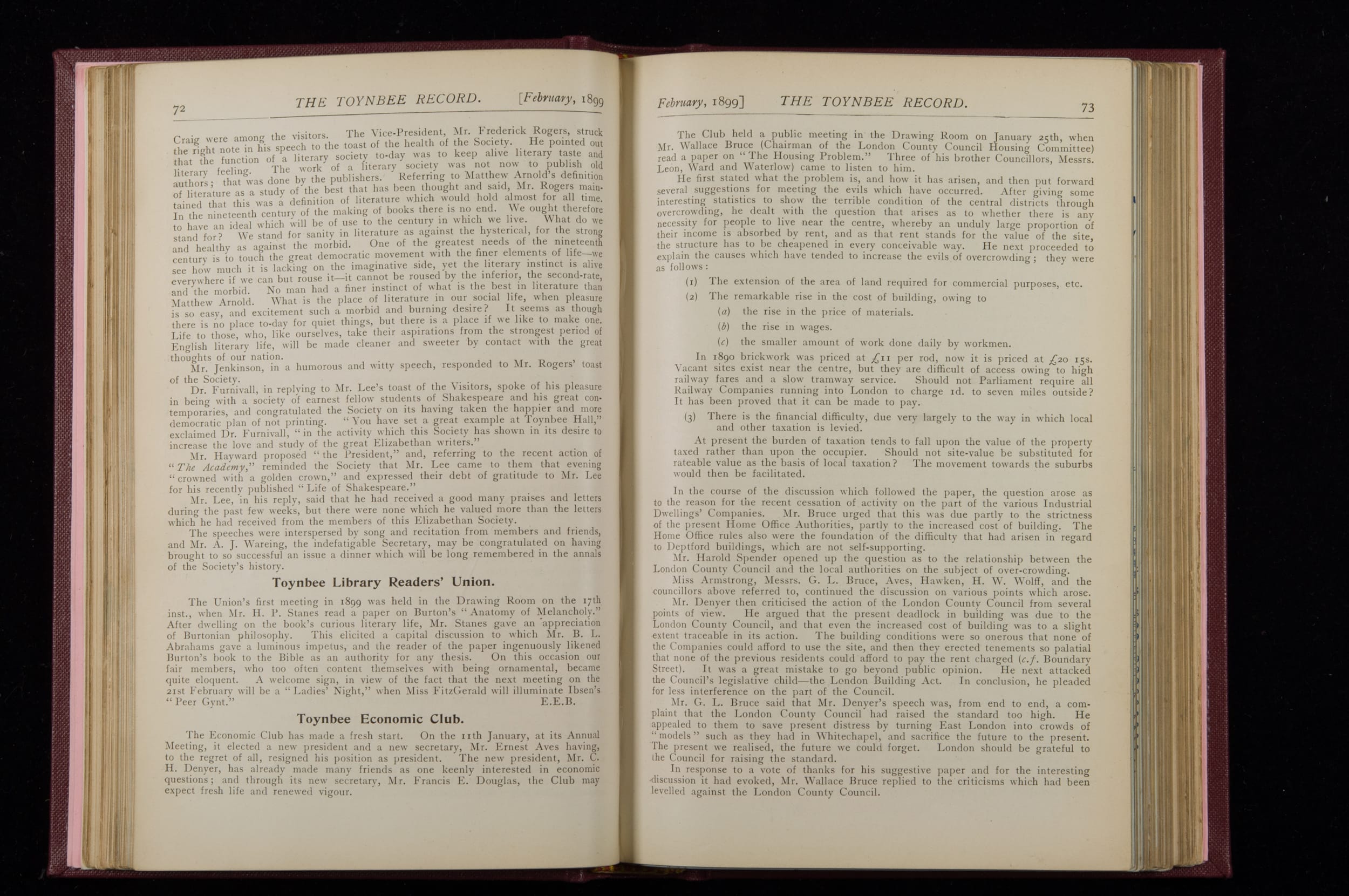 Toynbee Hall Record 1898 – 1900
