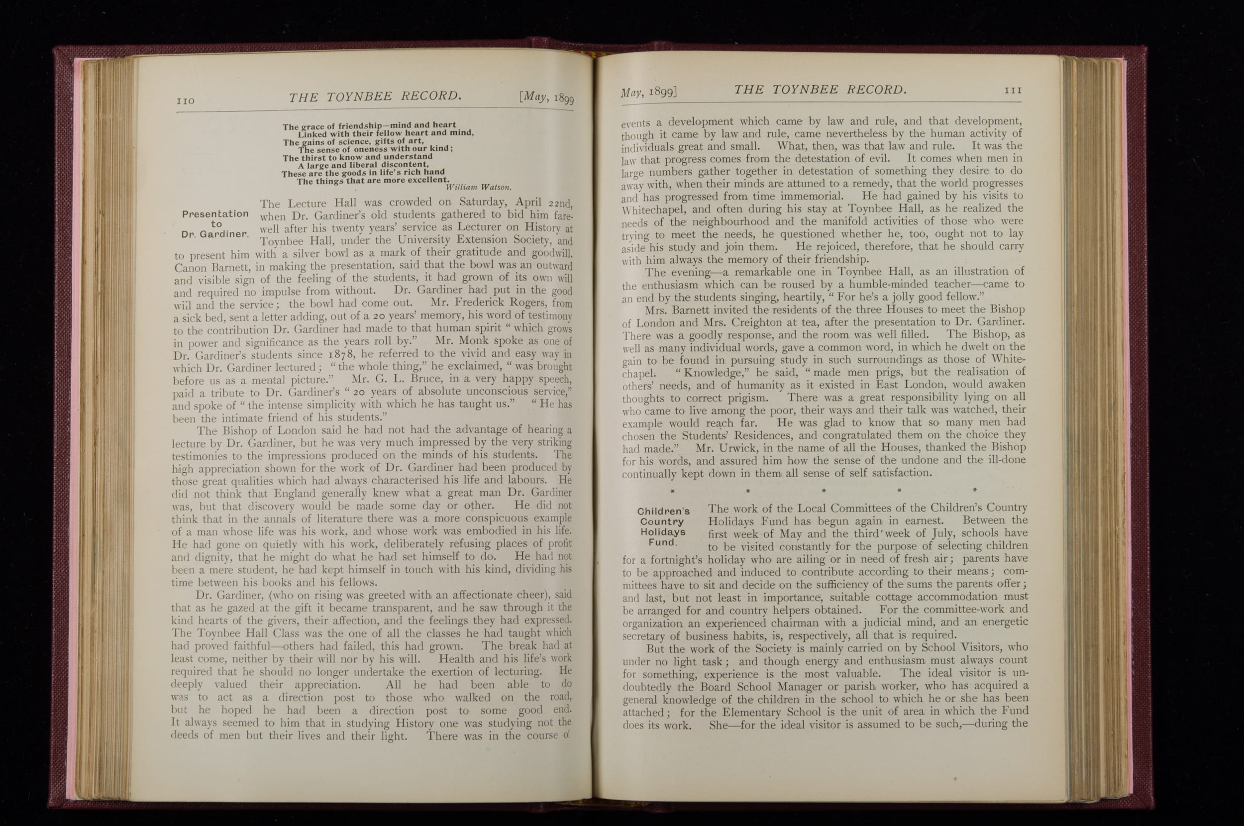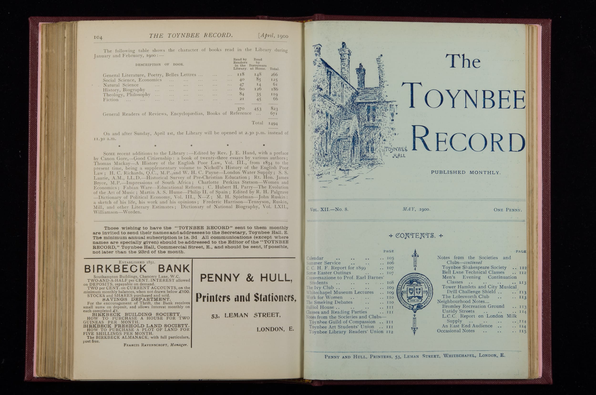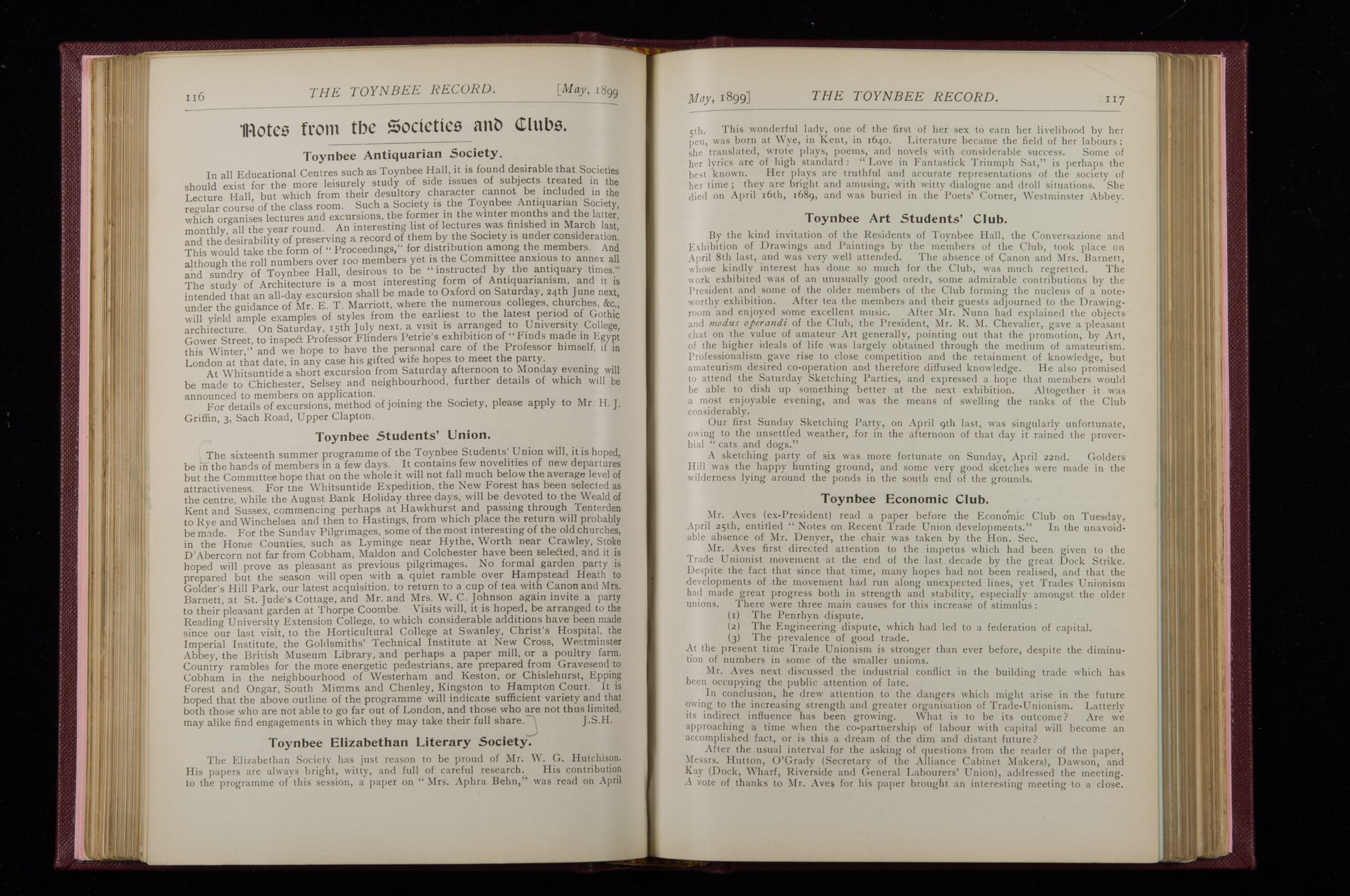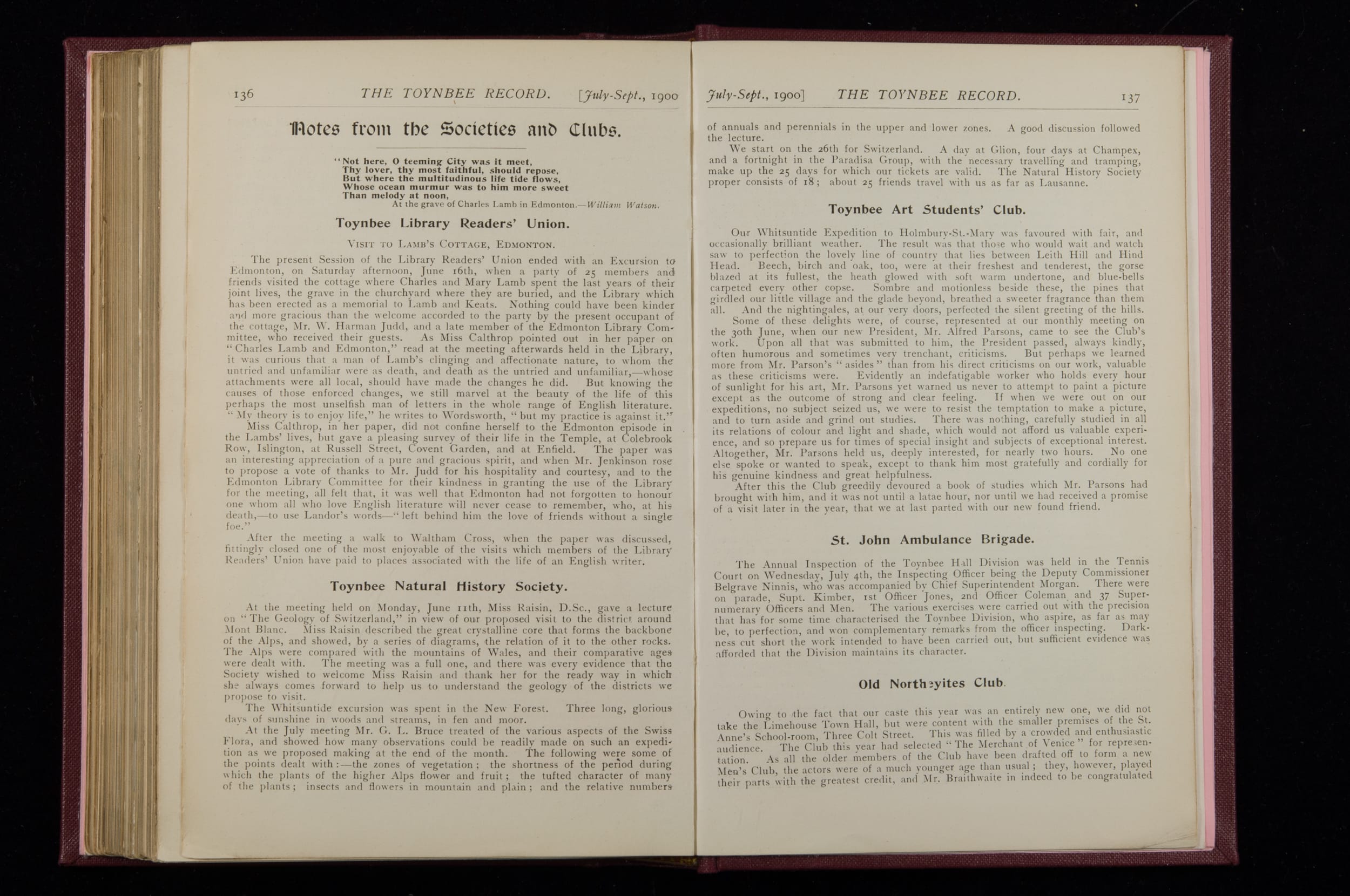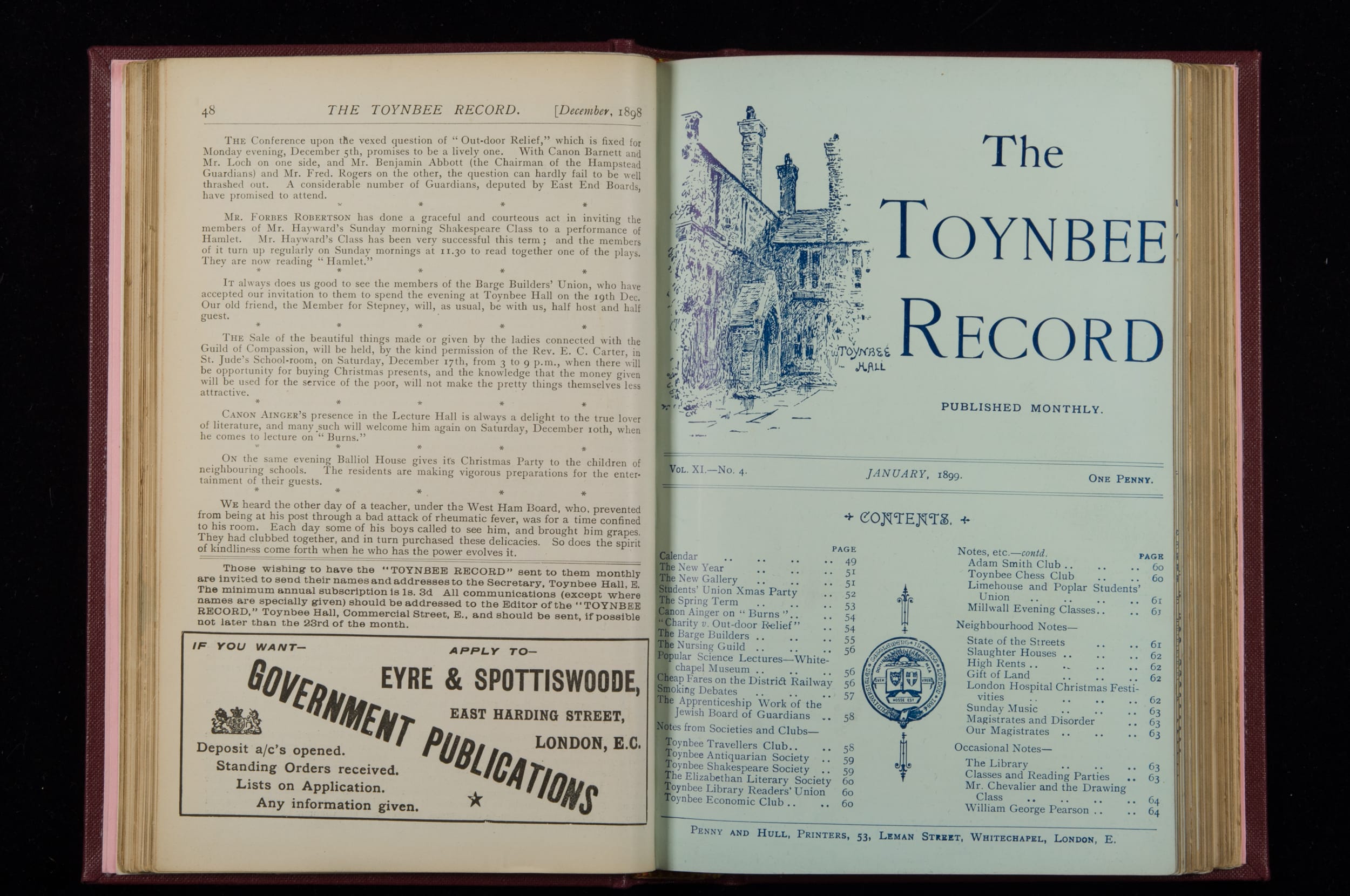 Toynbee Hall Record 1898 – 1900