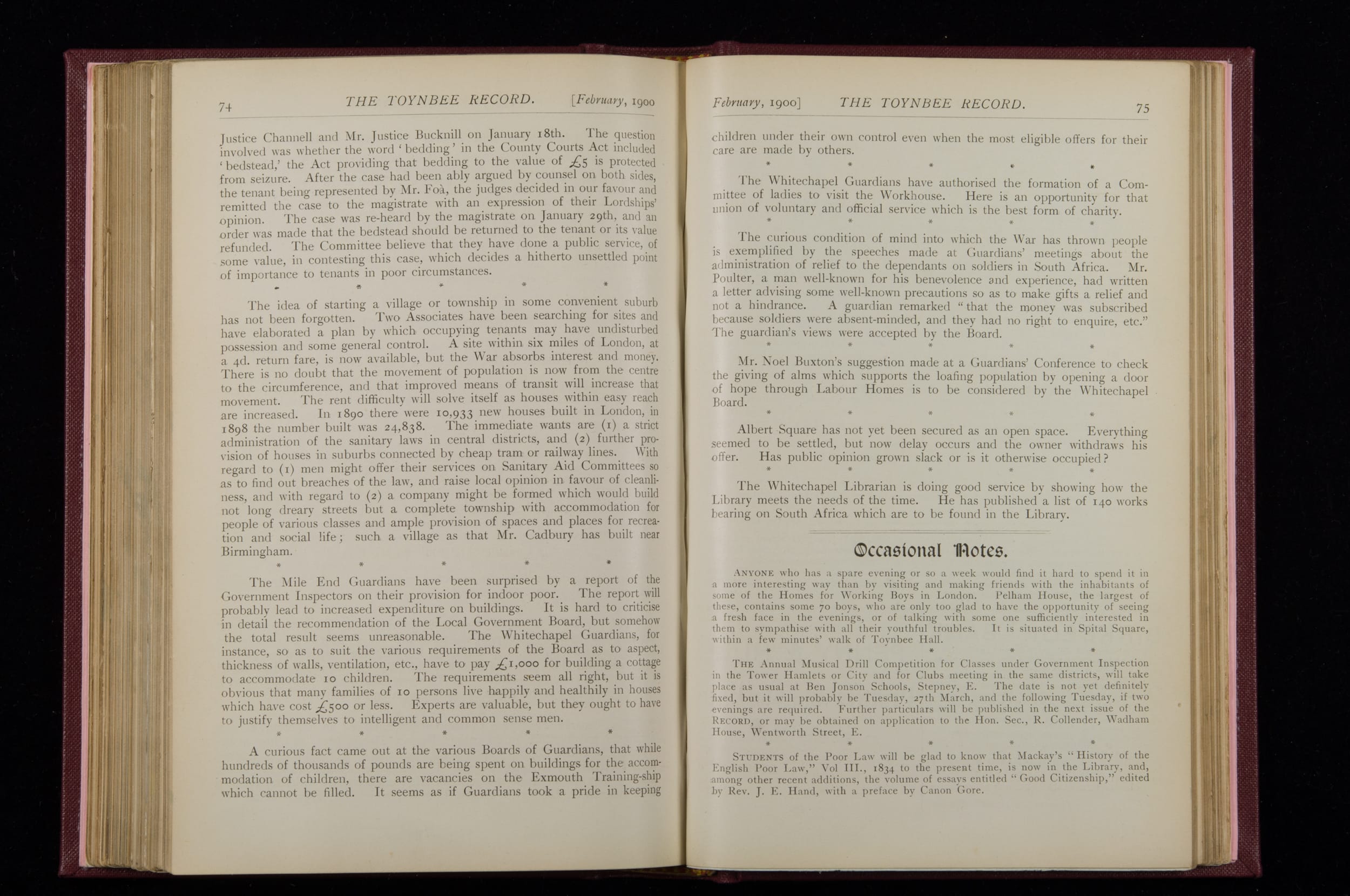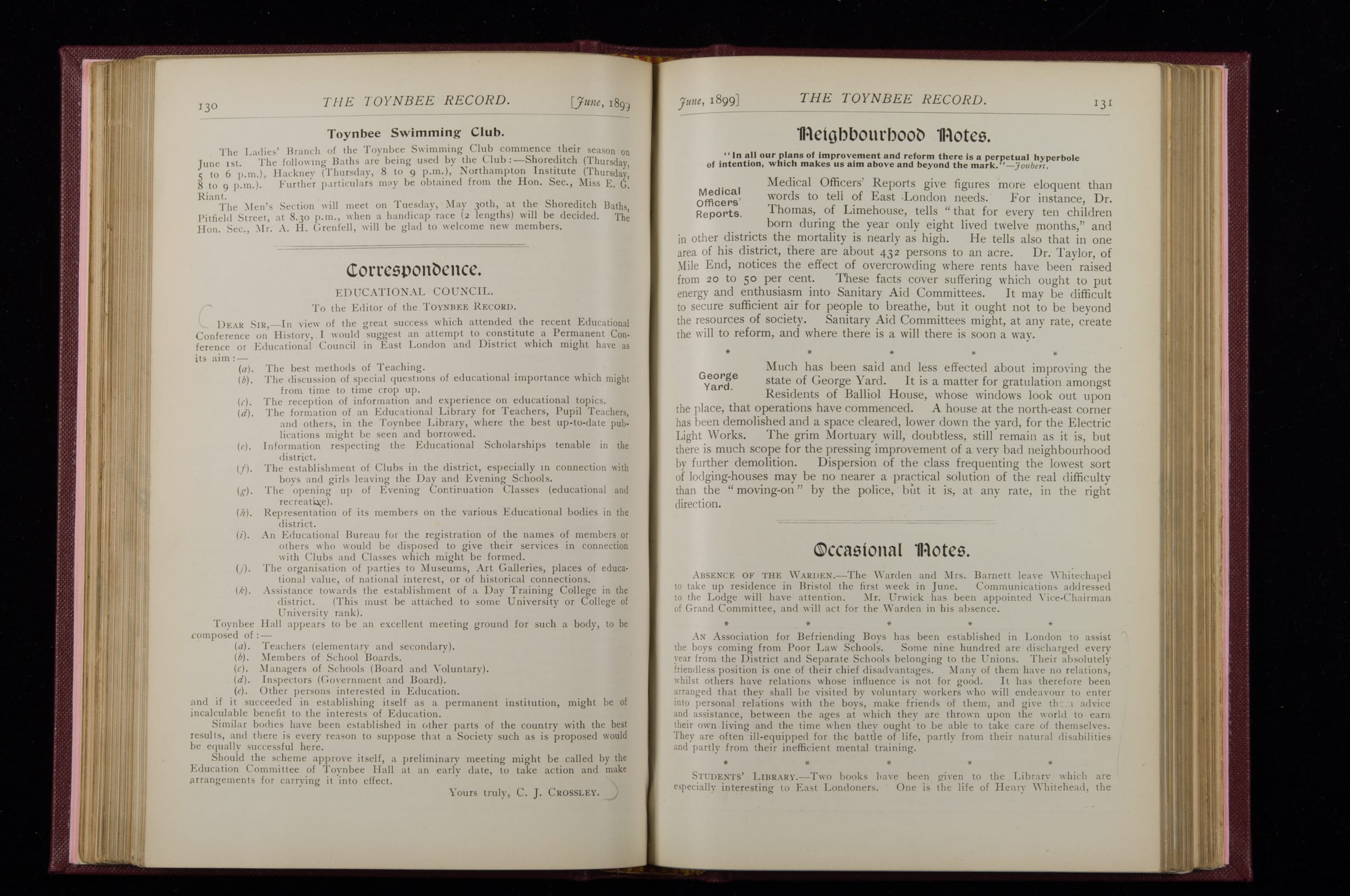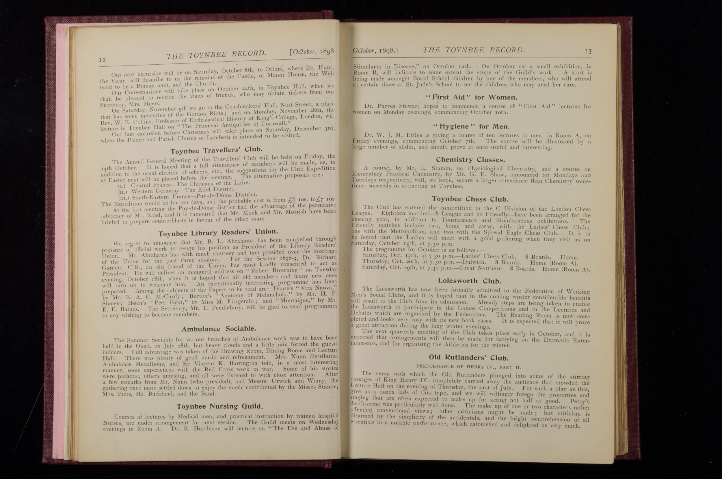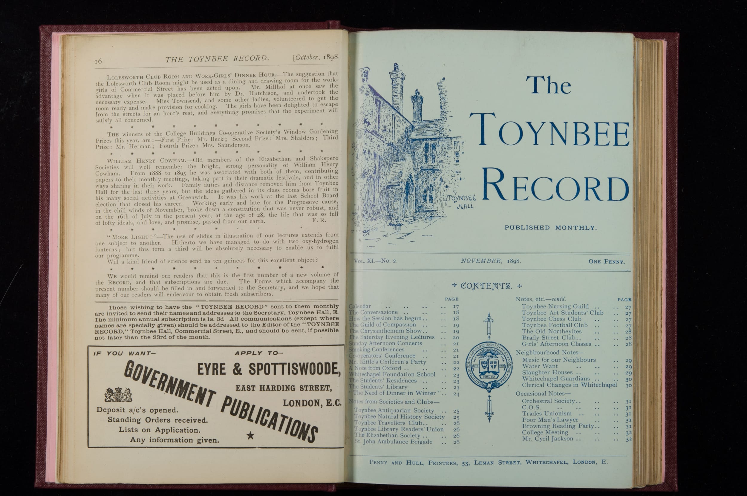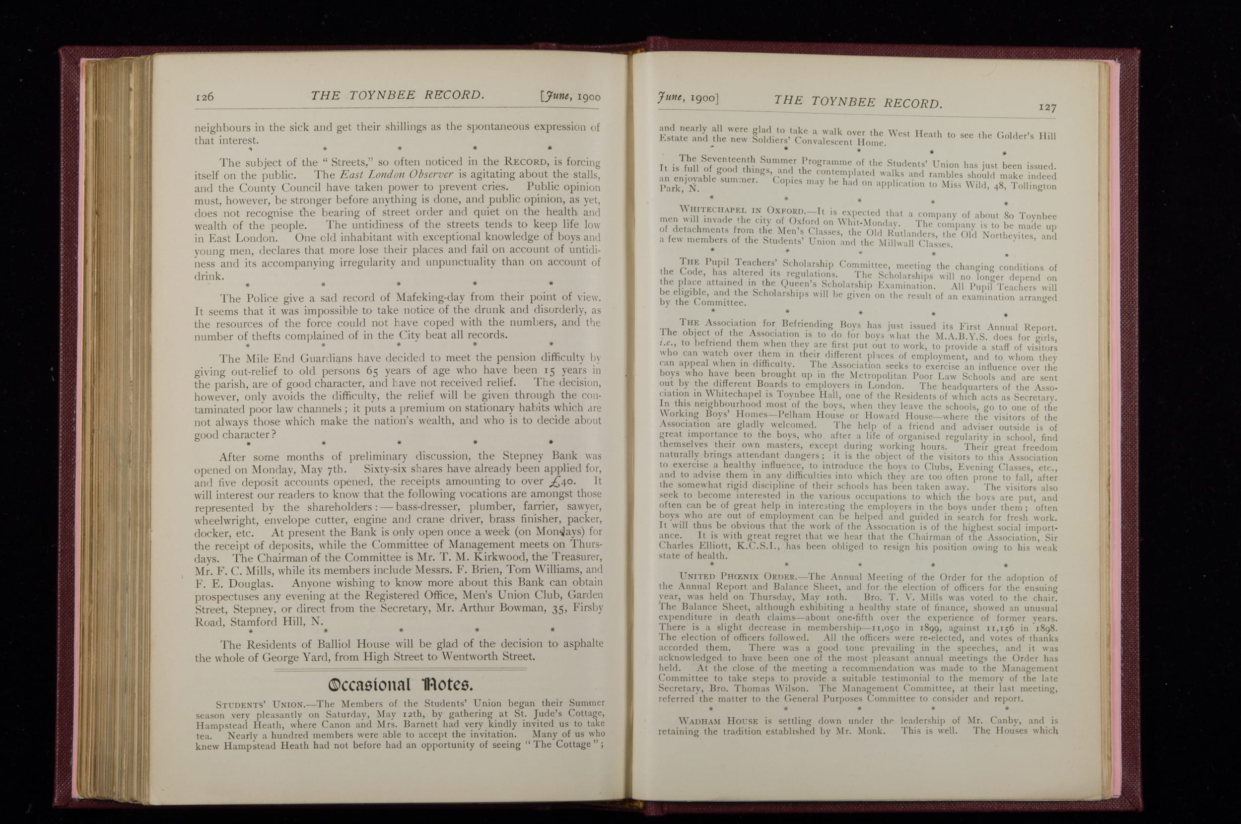 Toynbee Hall Record 1898 – 1900