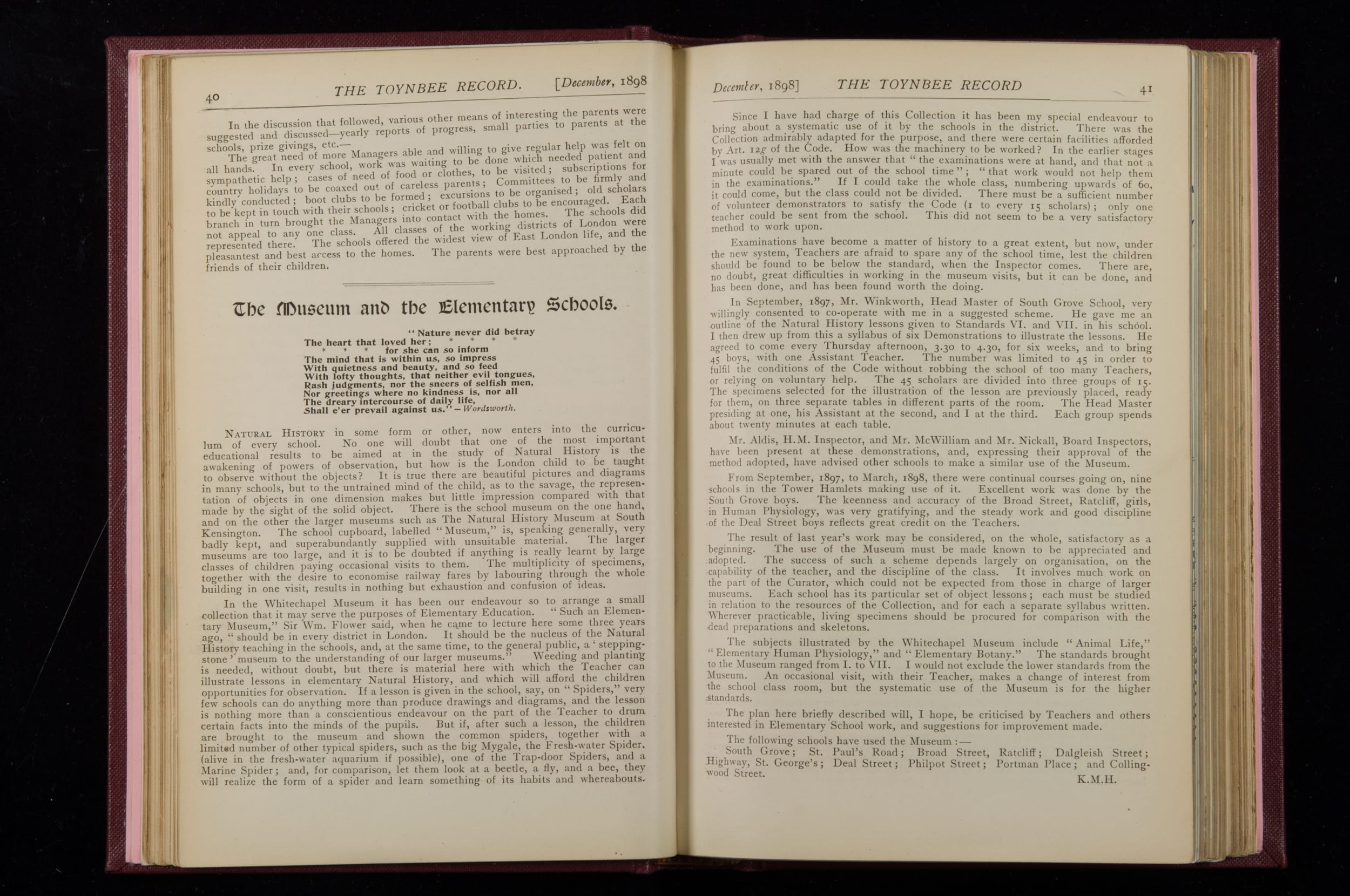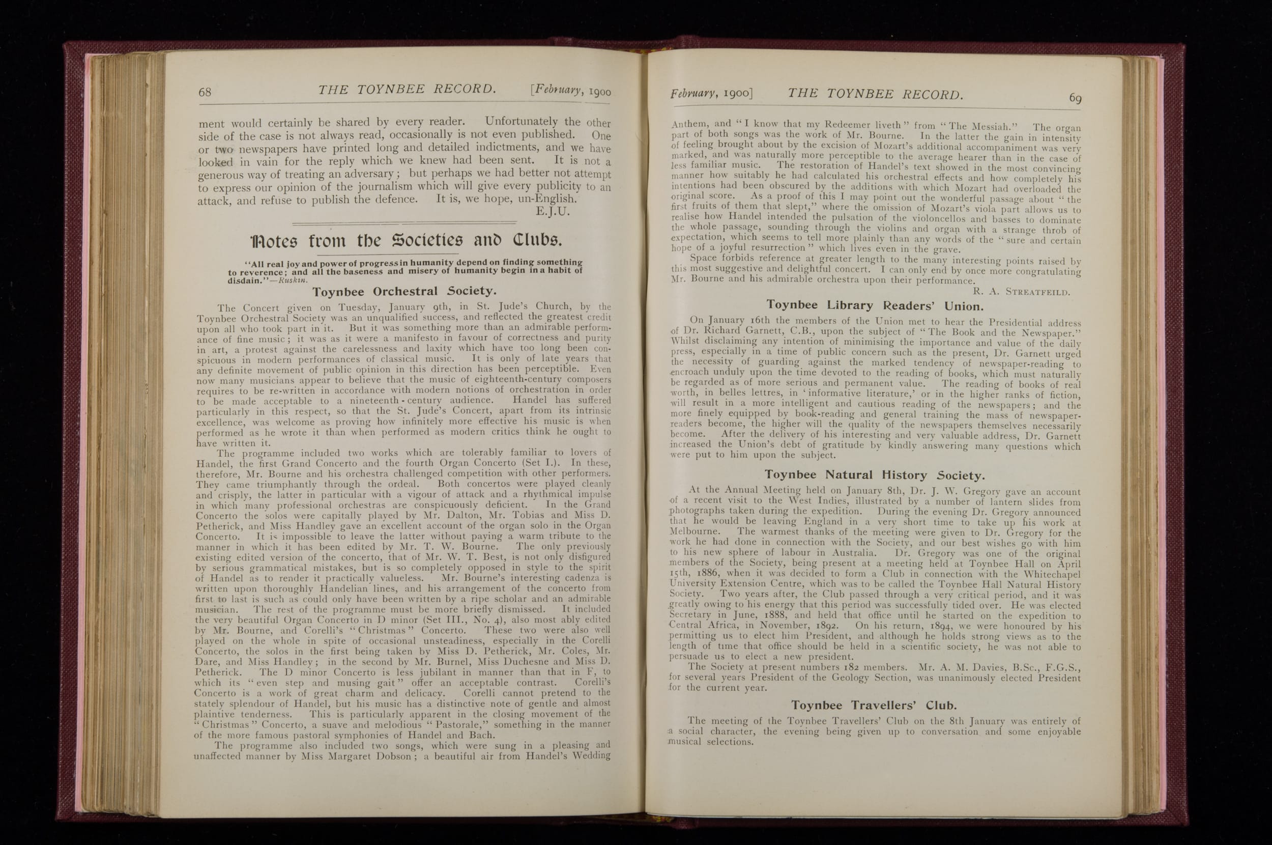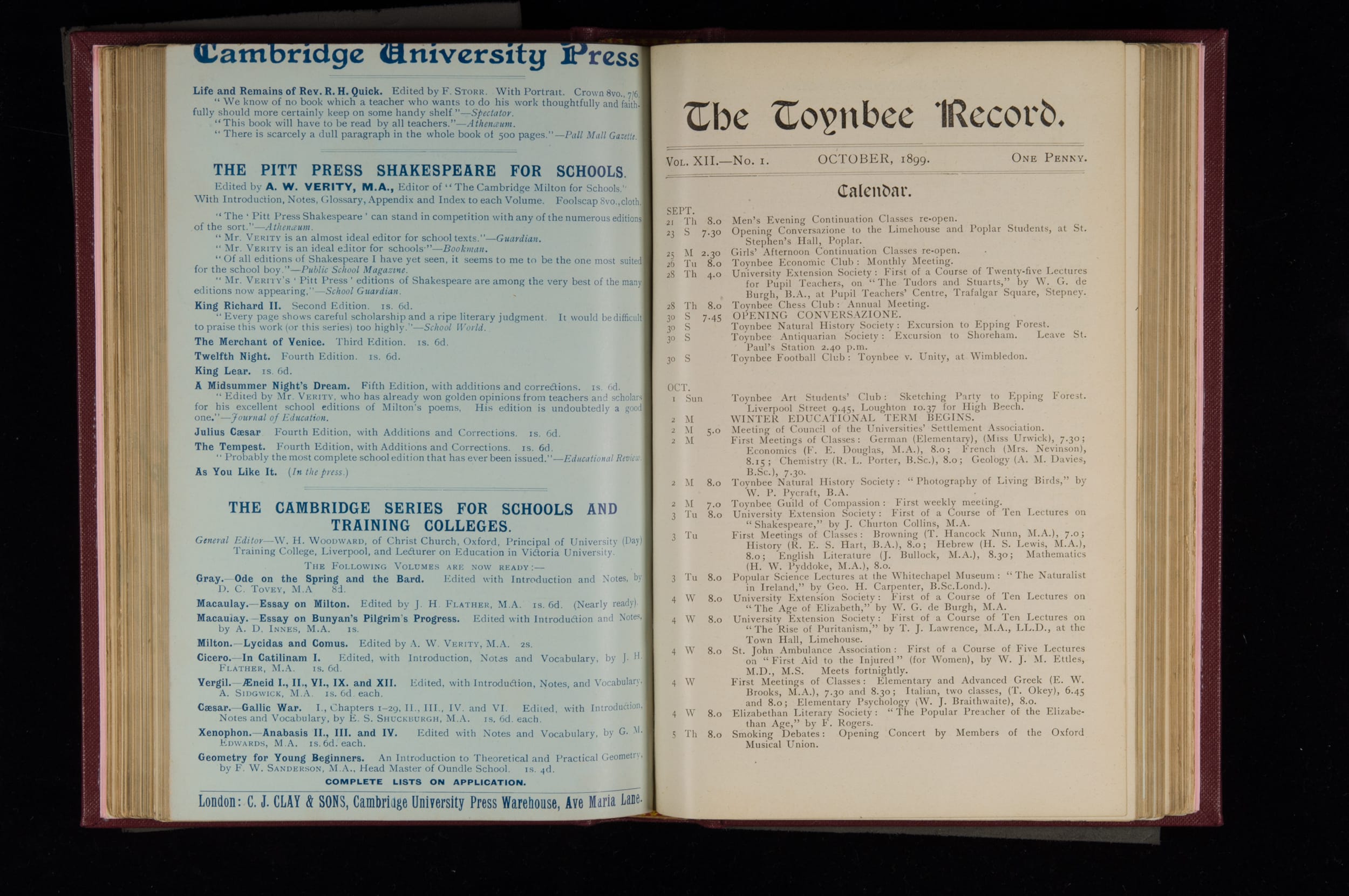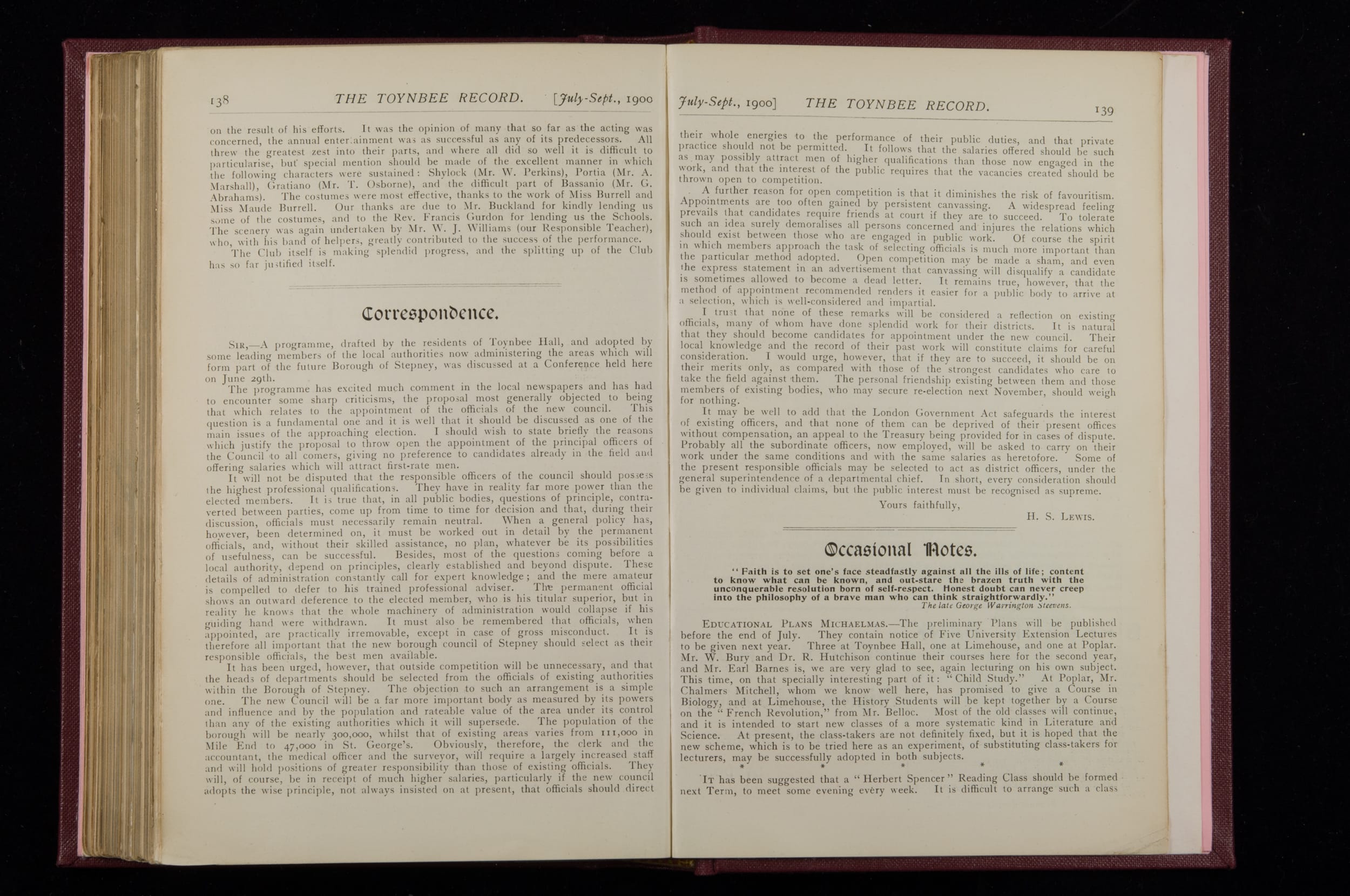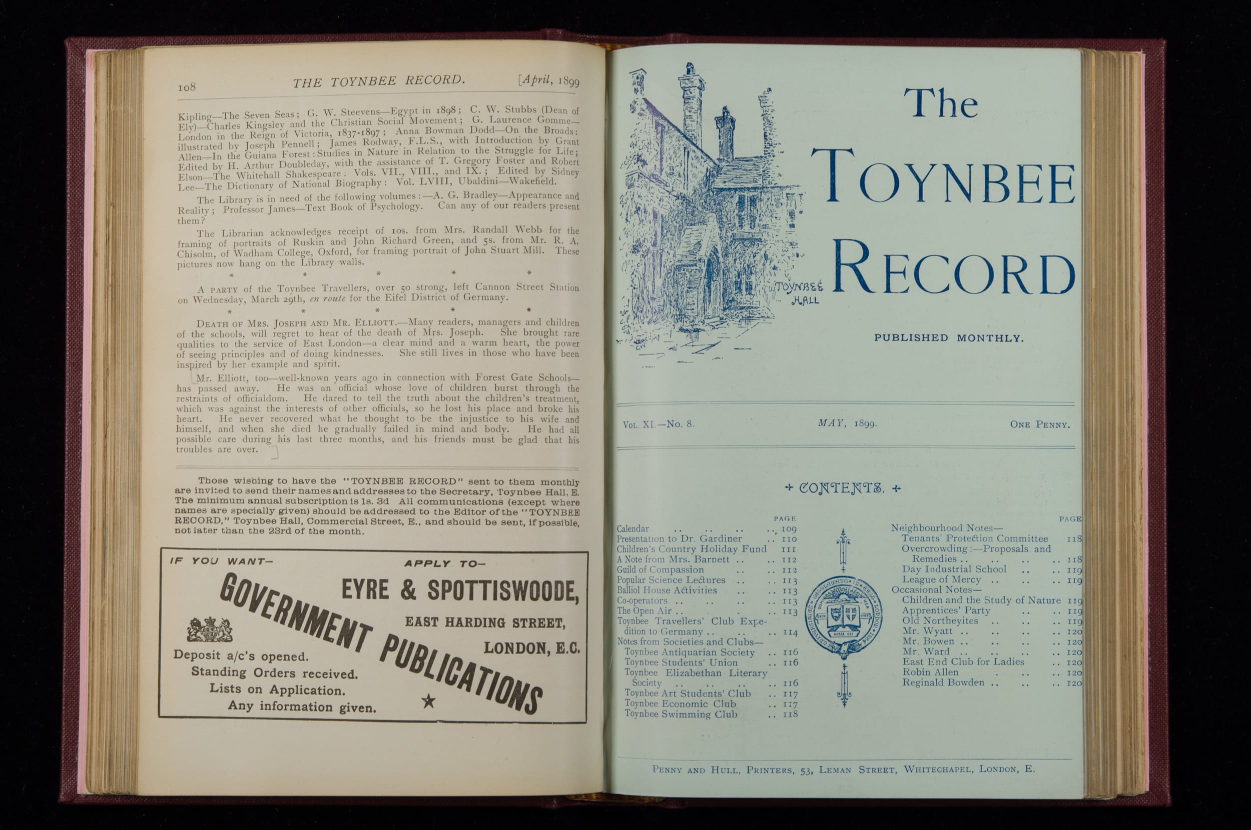 Toynbee Hall Record 1898 – 1900