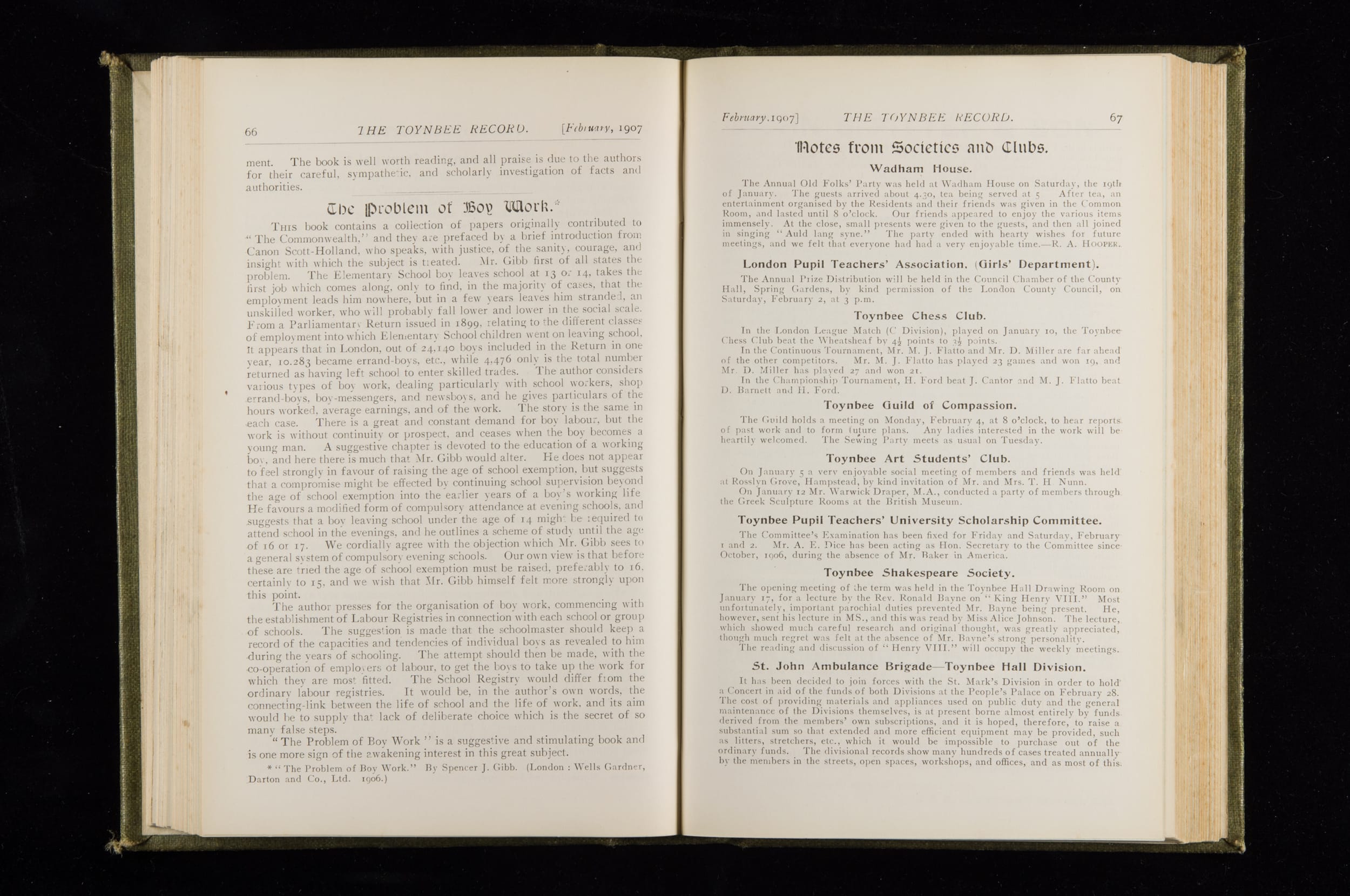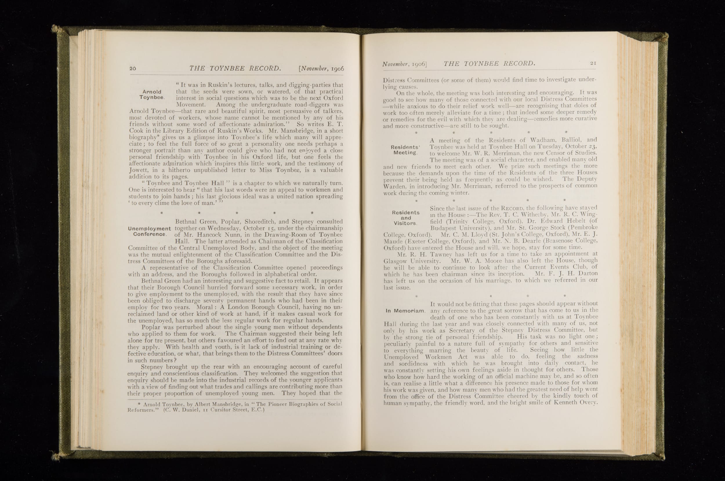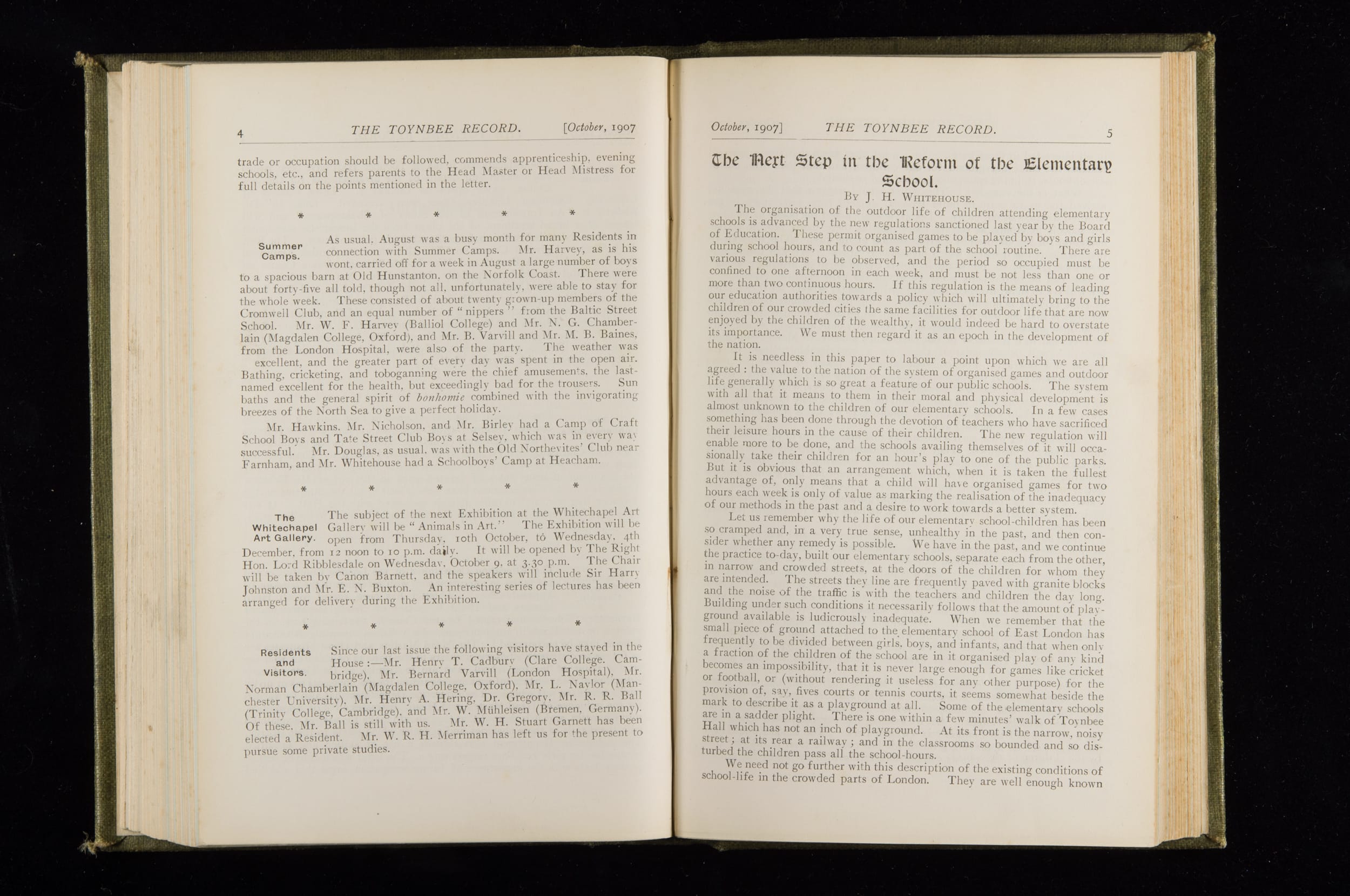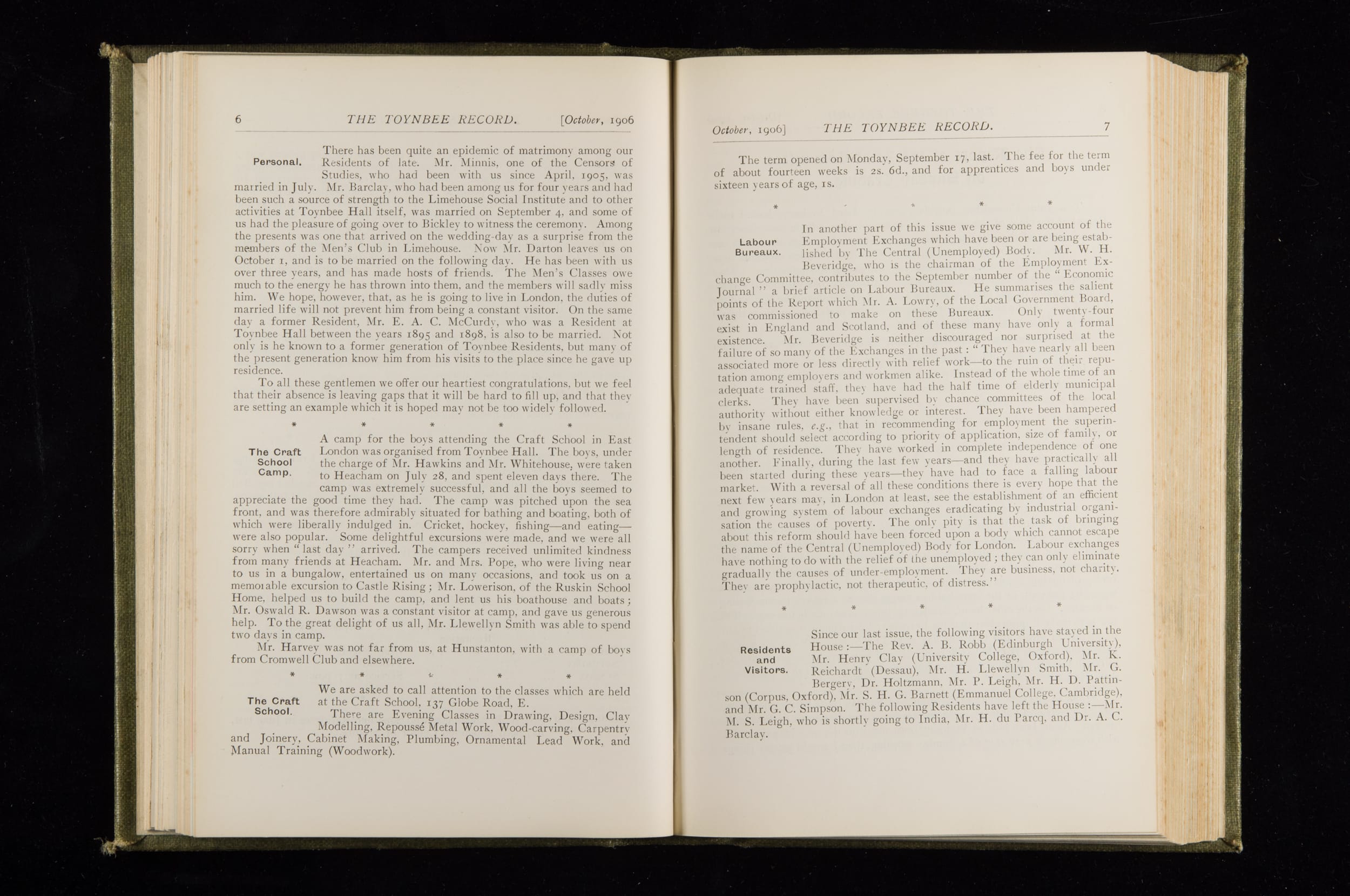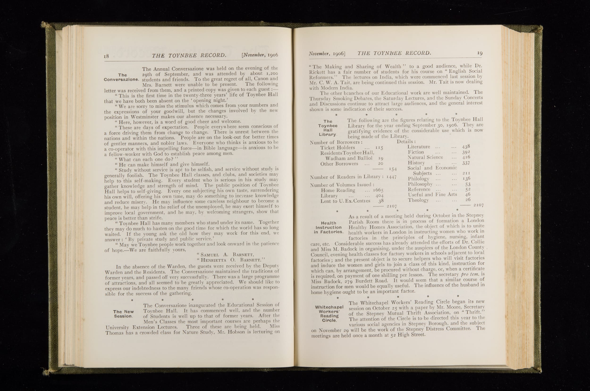 Toynbee Hall Record 1905 – 1908
