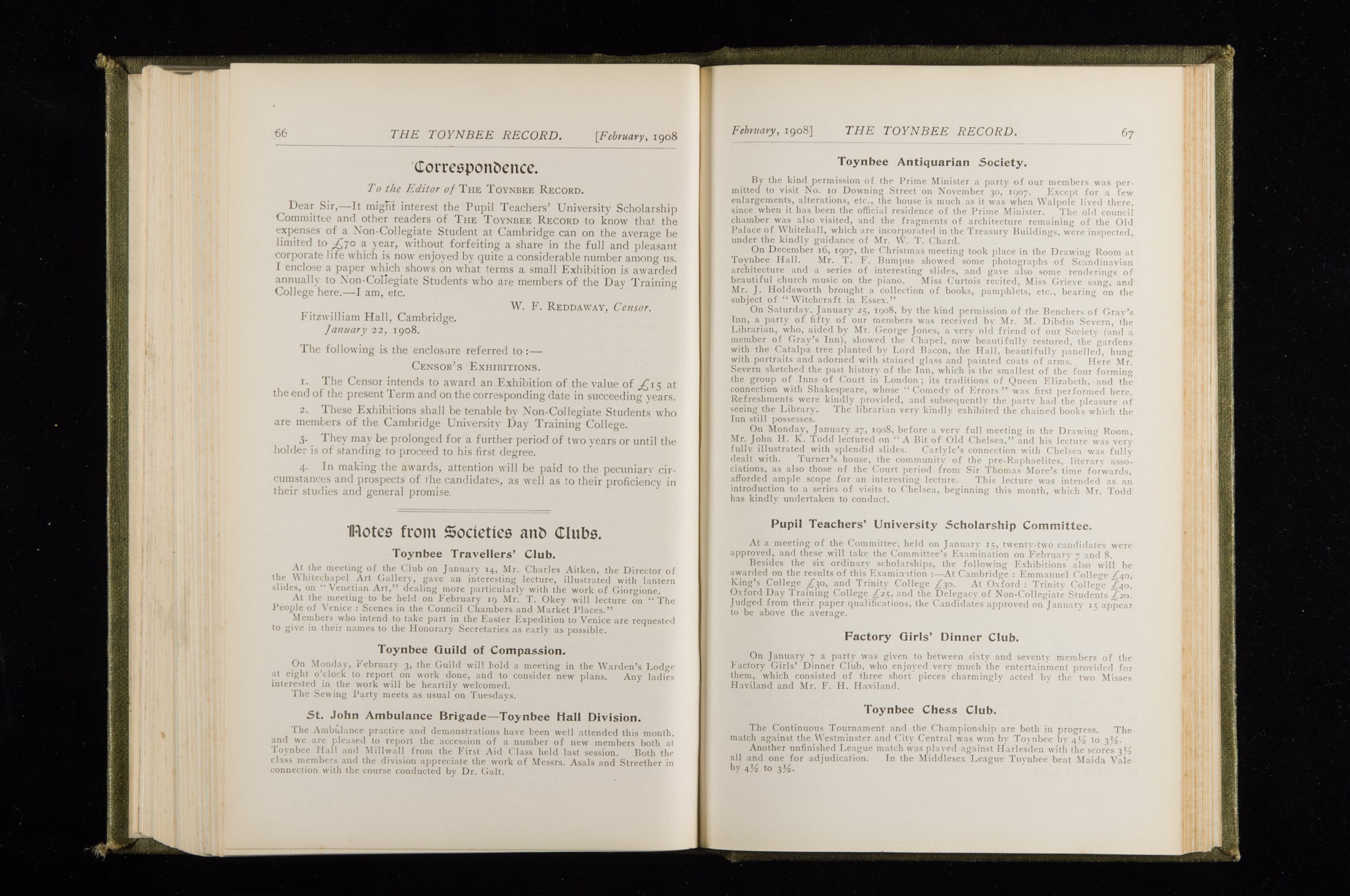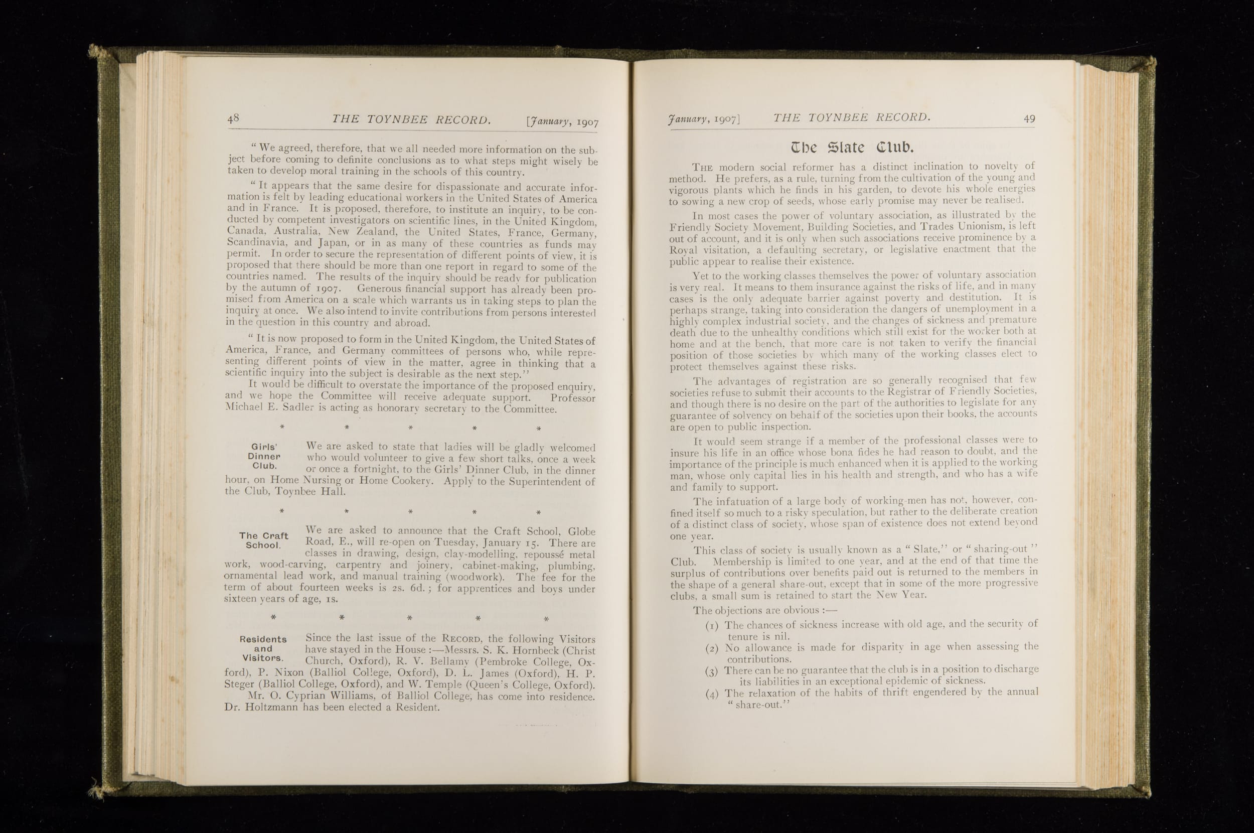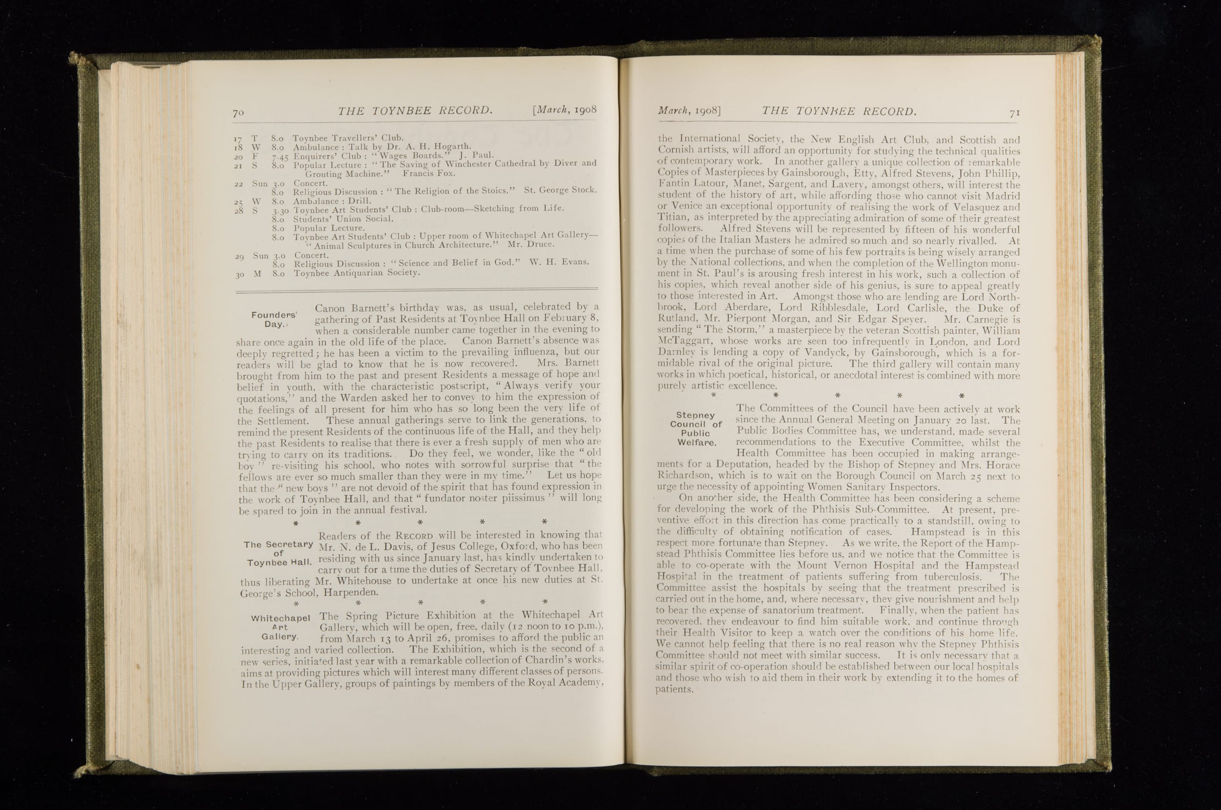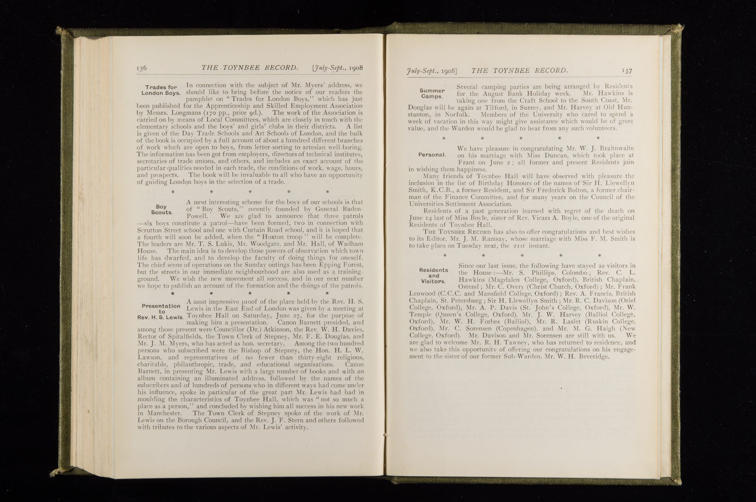 Toynbee Hall Record 1905 – 1908