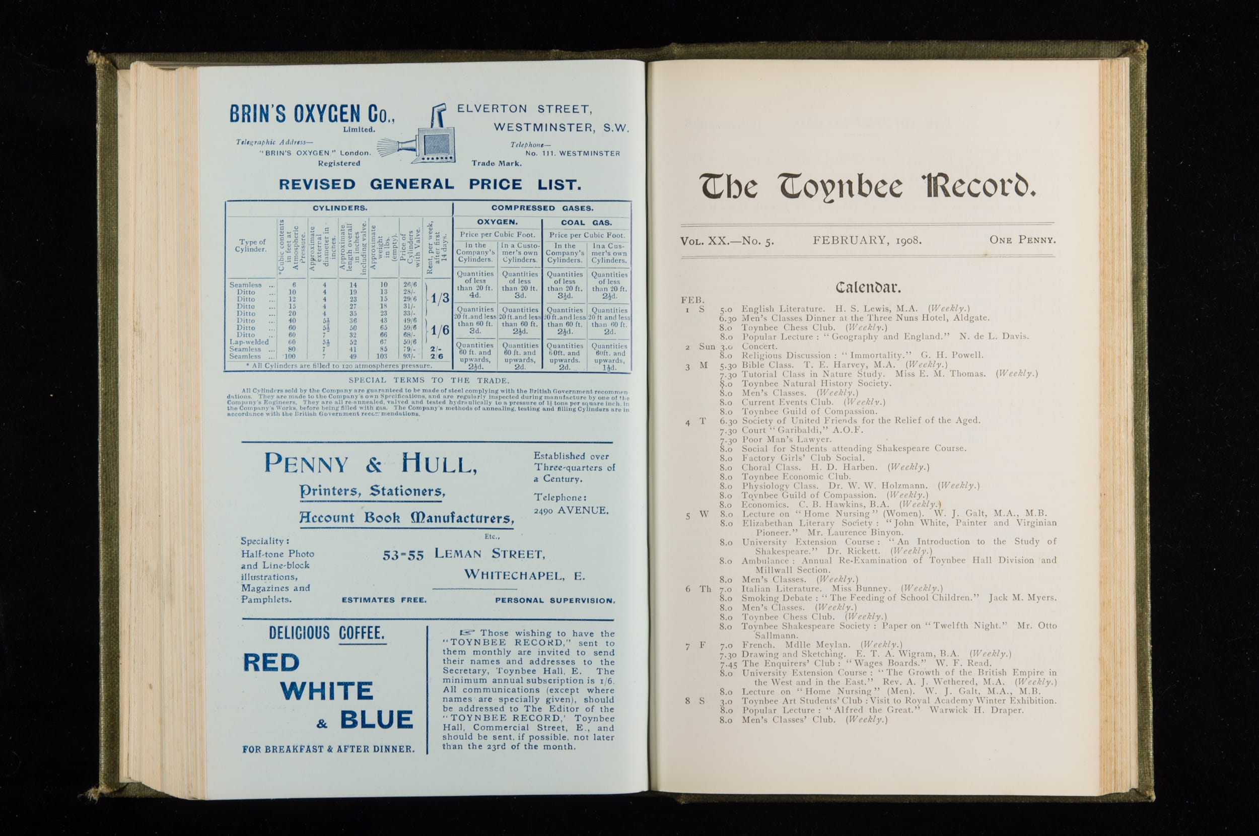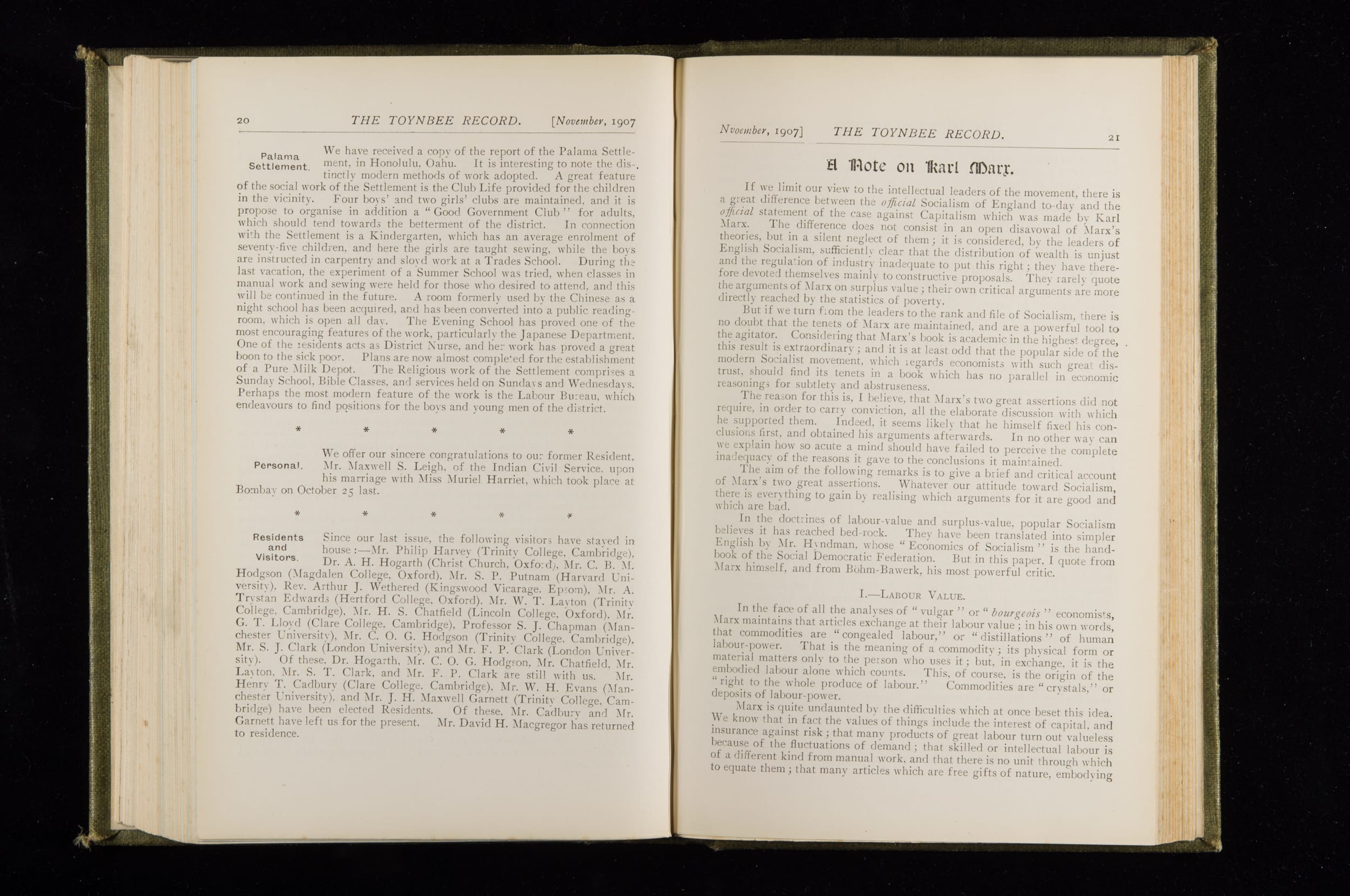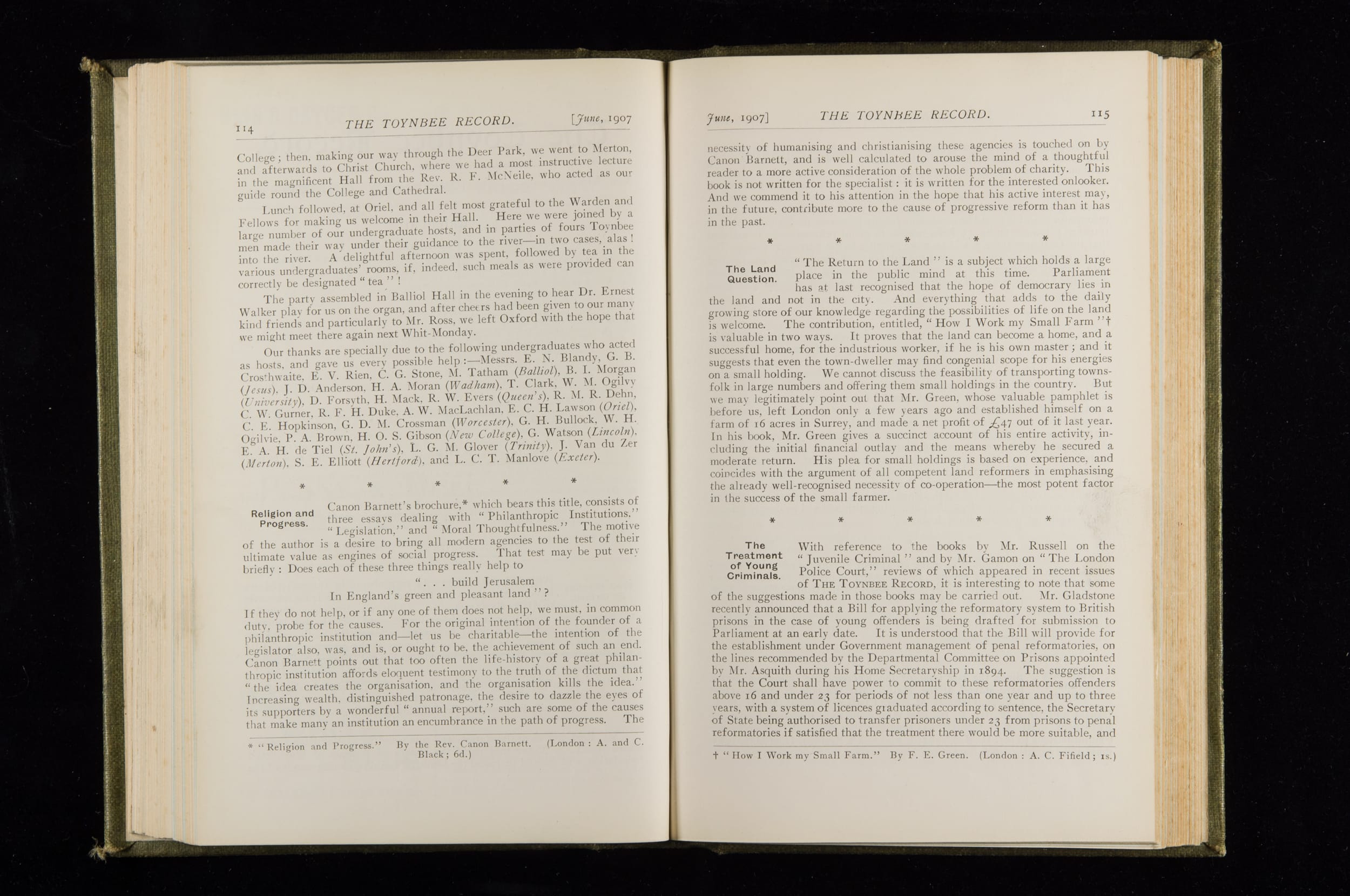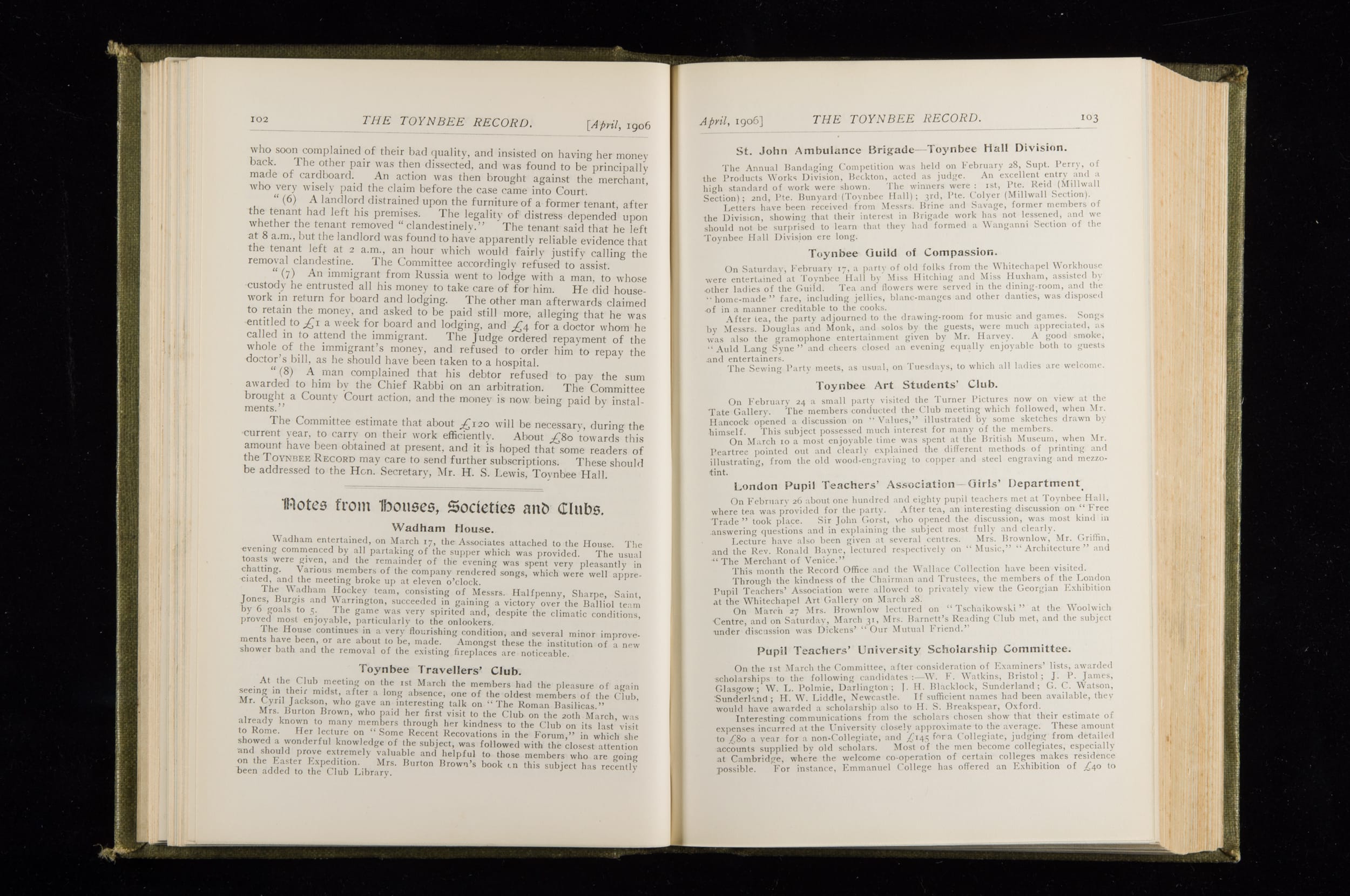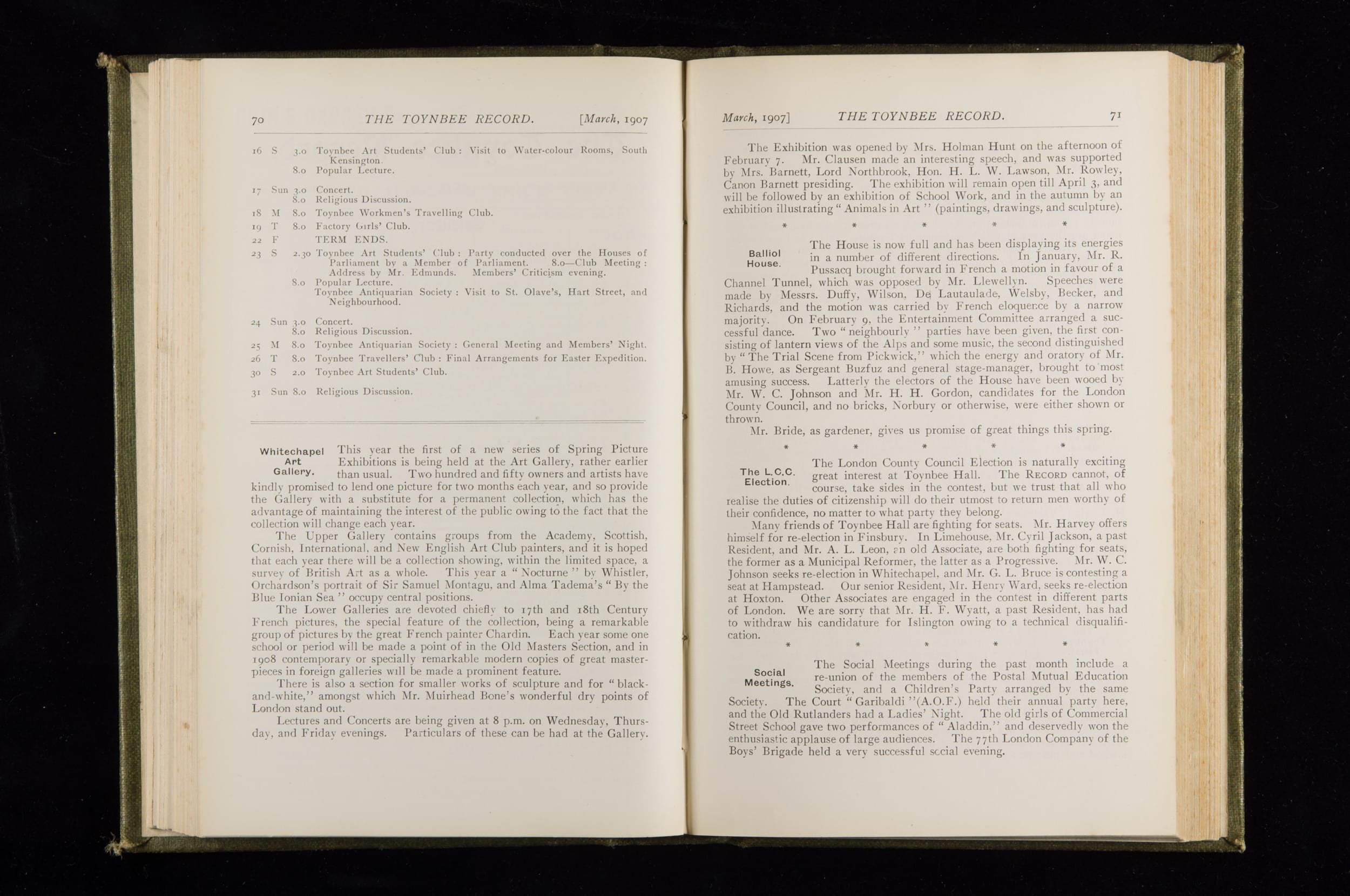 Toynbee Hall Record 1905 – 1908