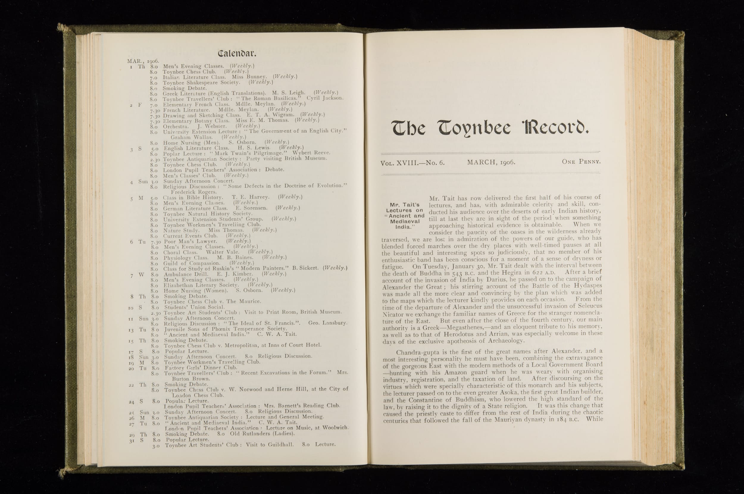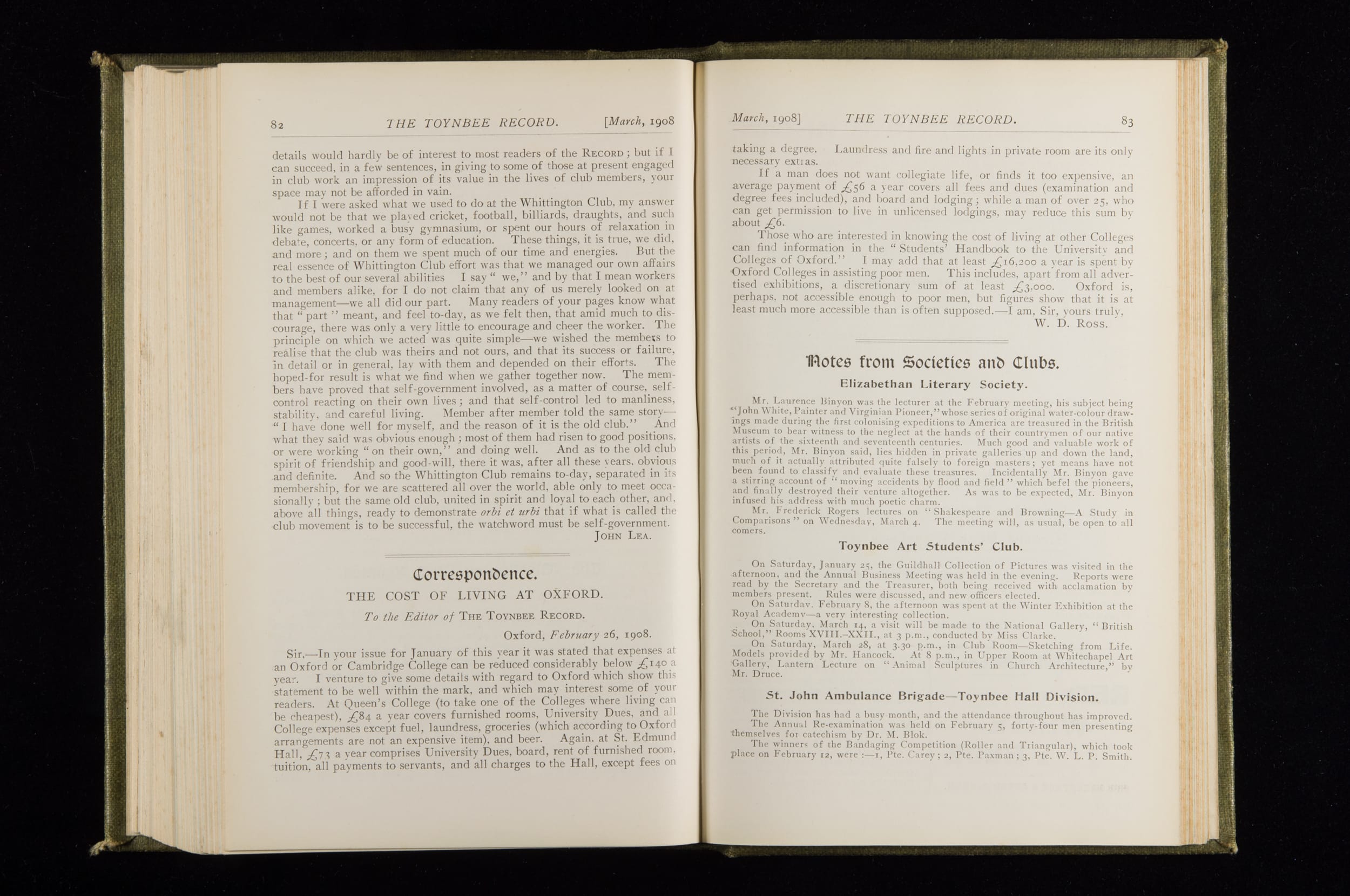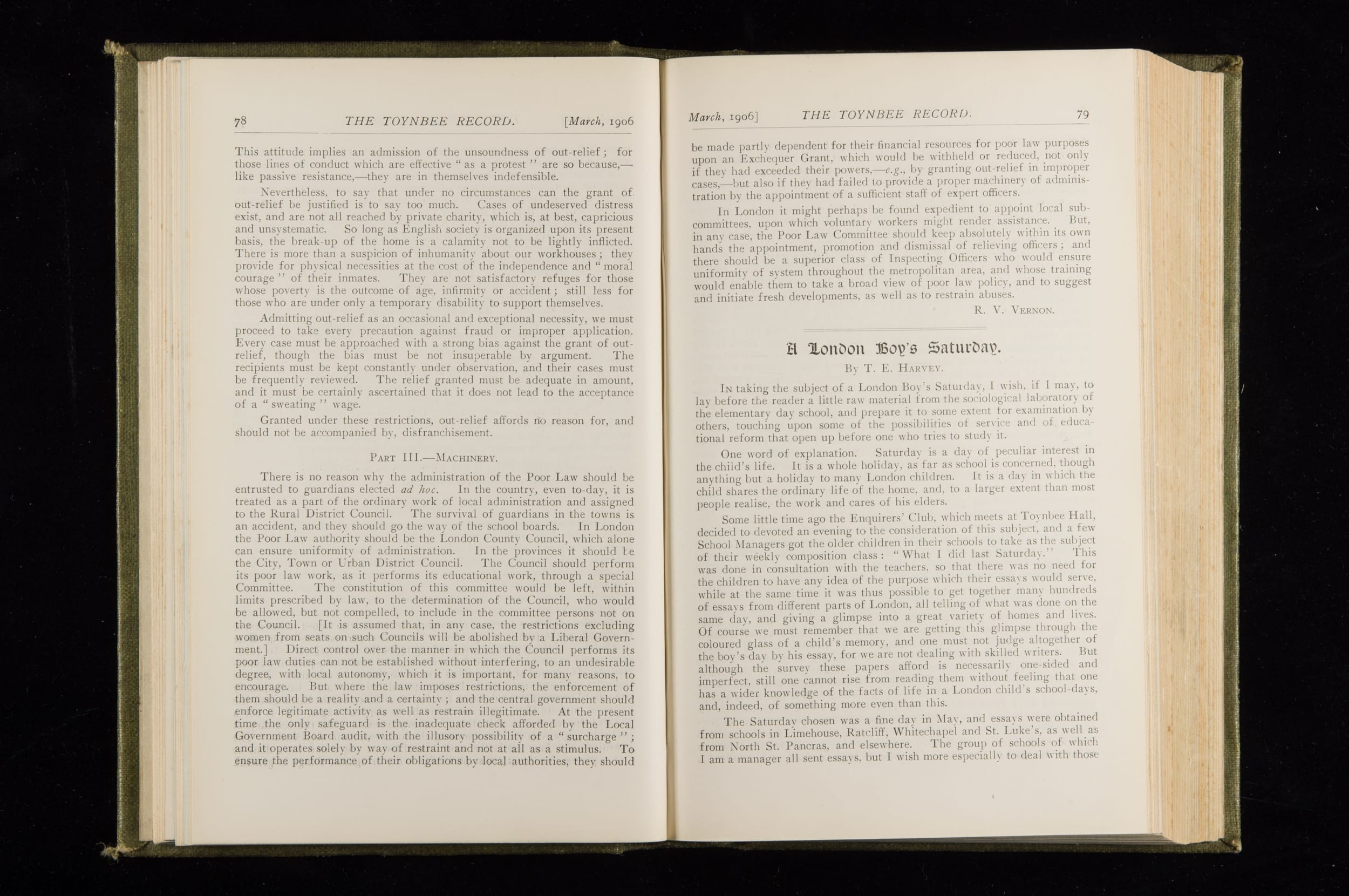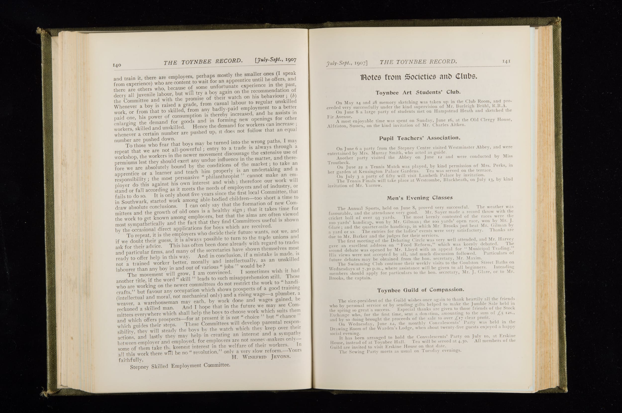 Toynbee Hall Record 1905 – 1908