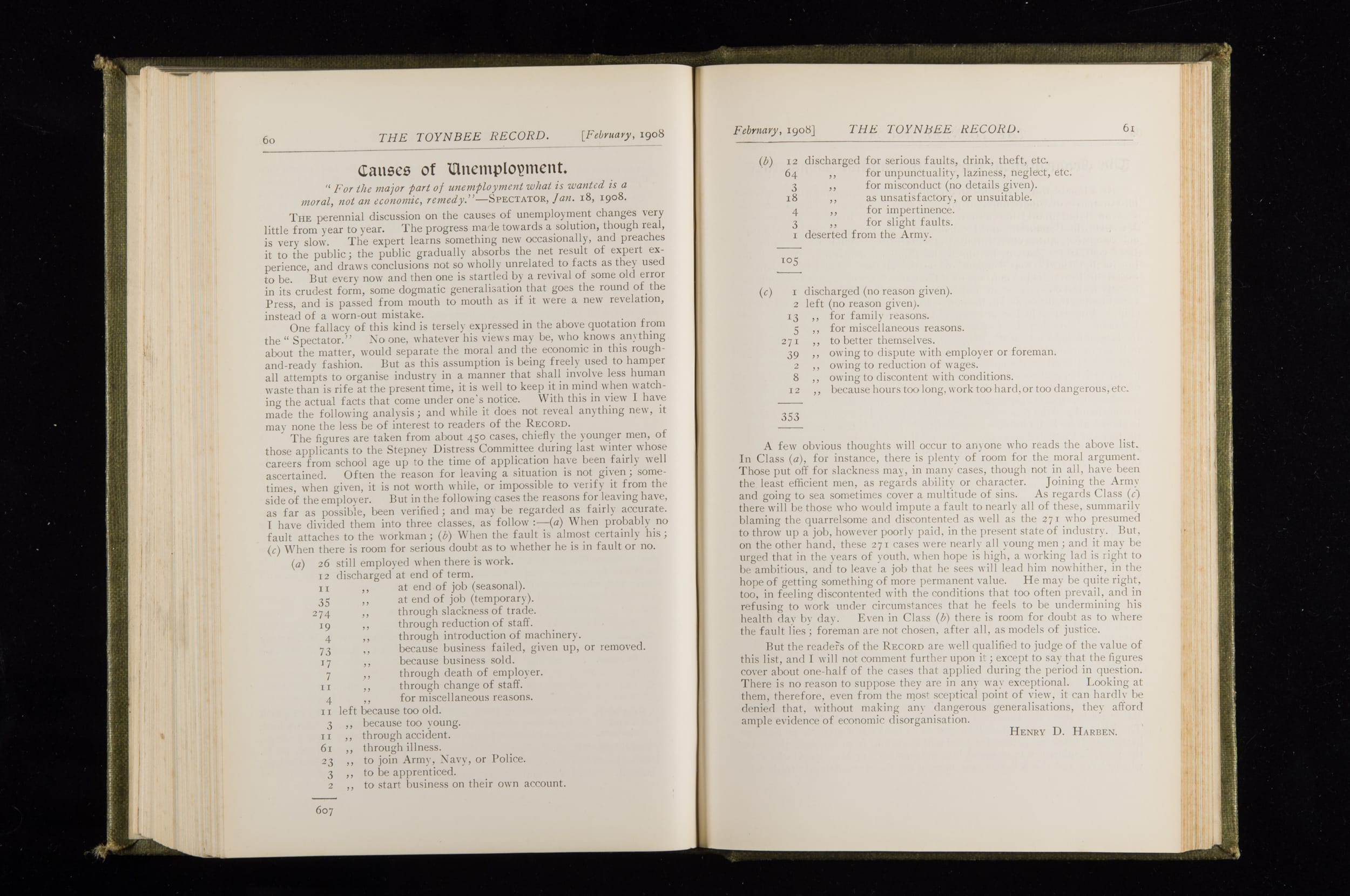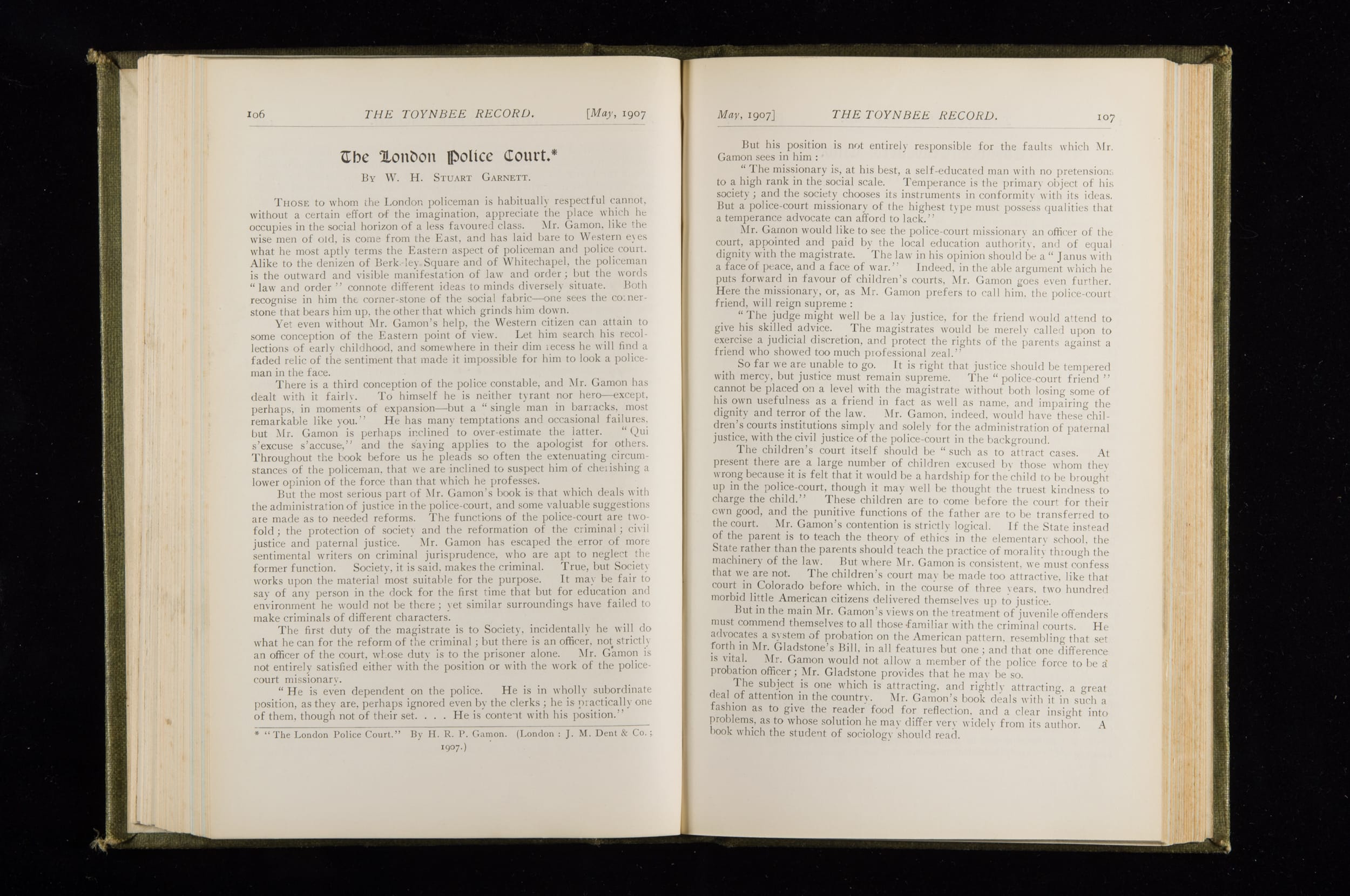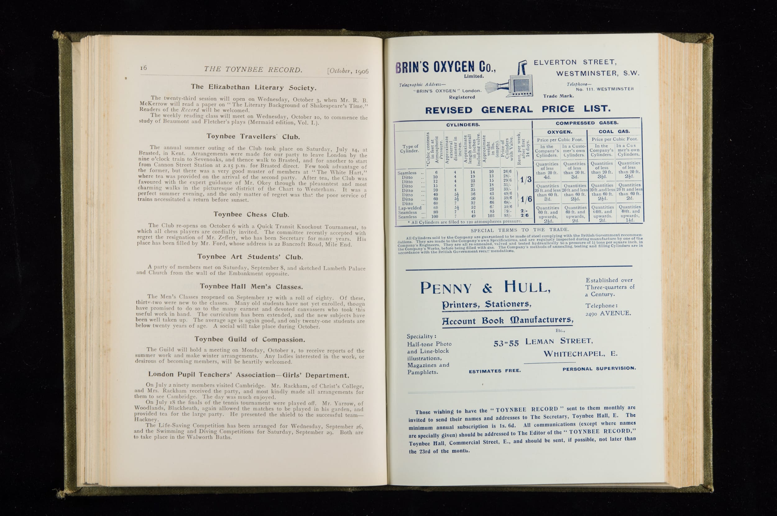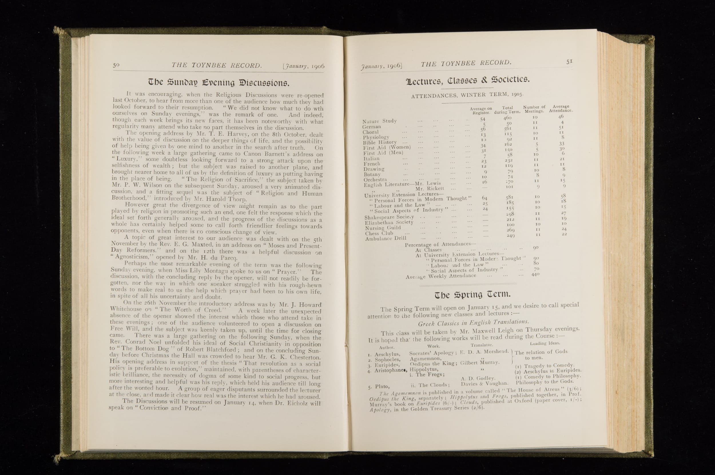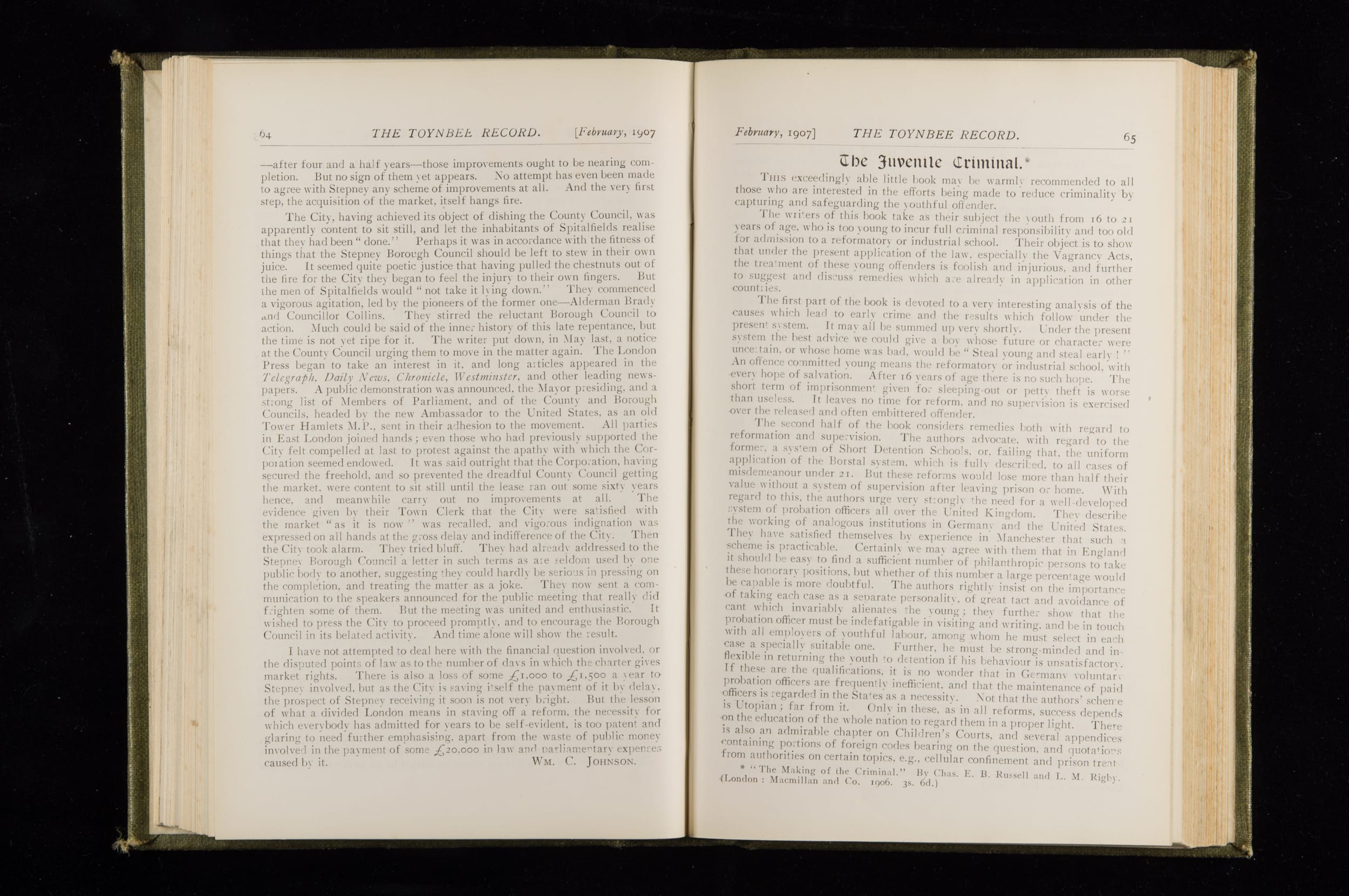 Toynbee Hall Record 1905 – 1908