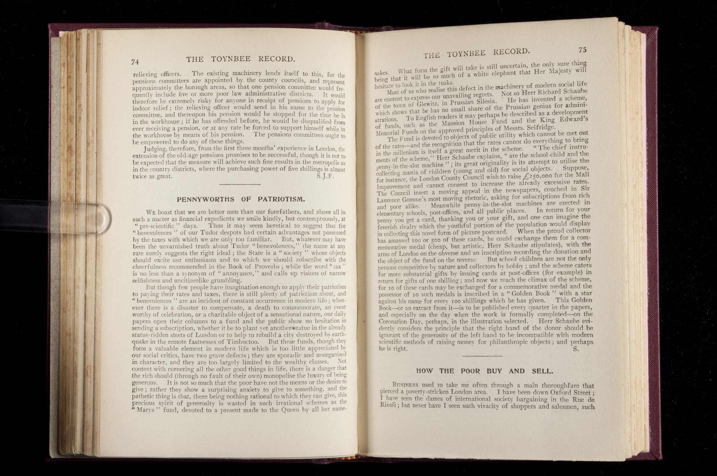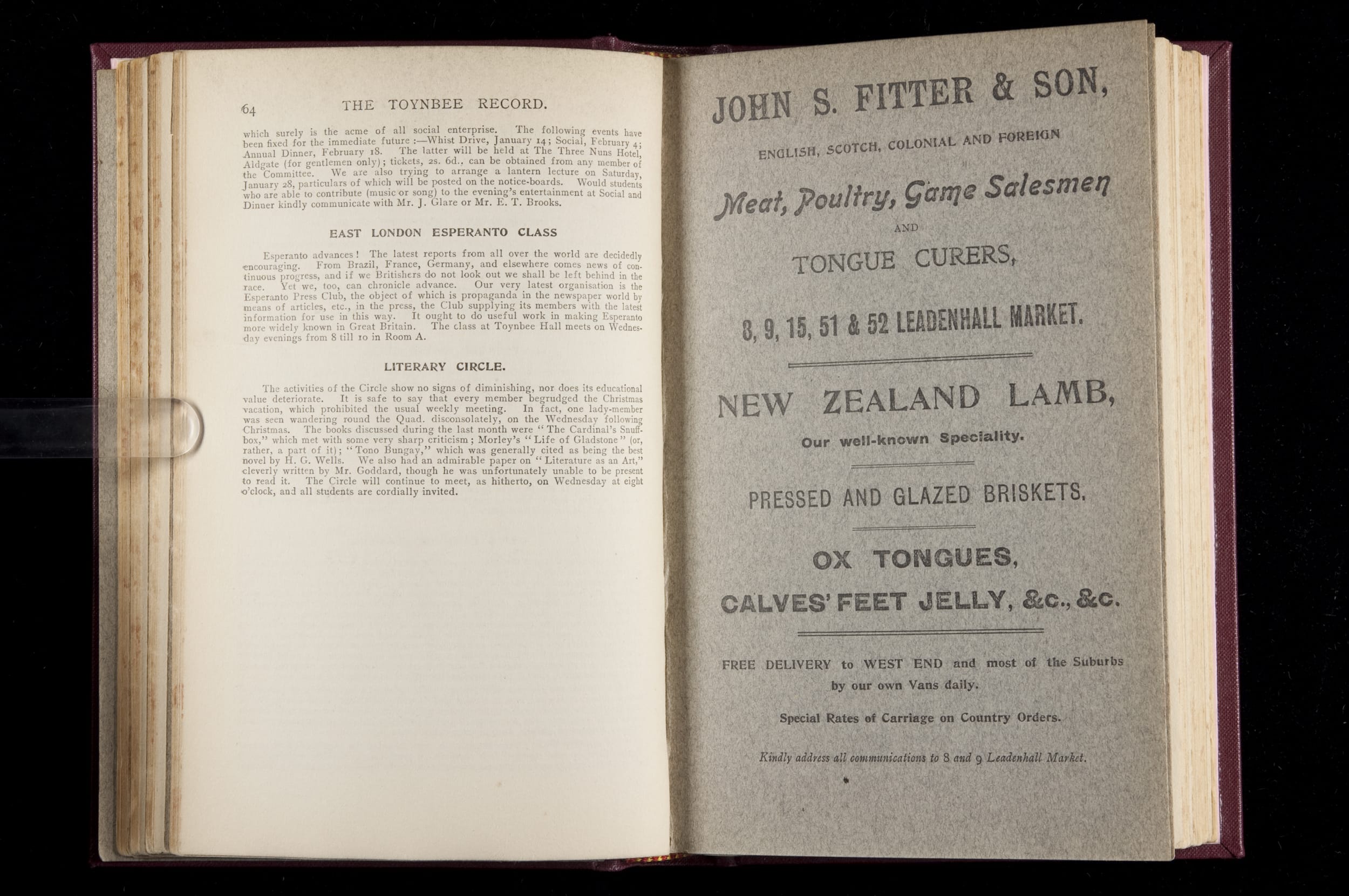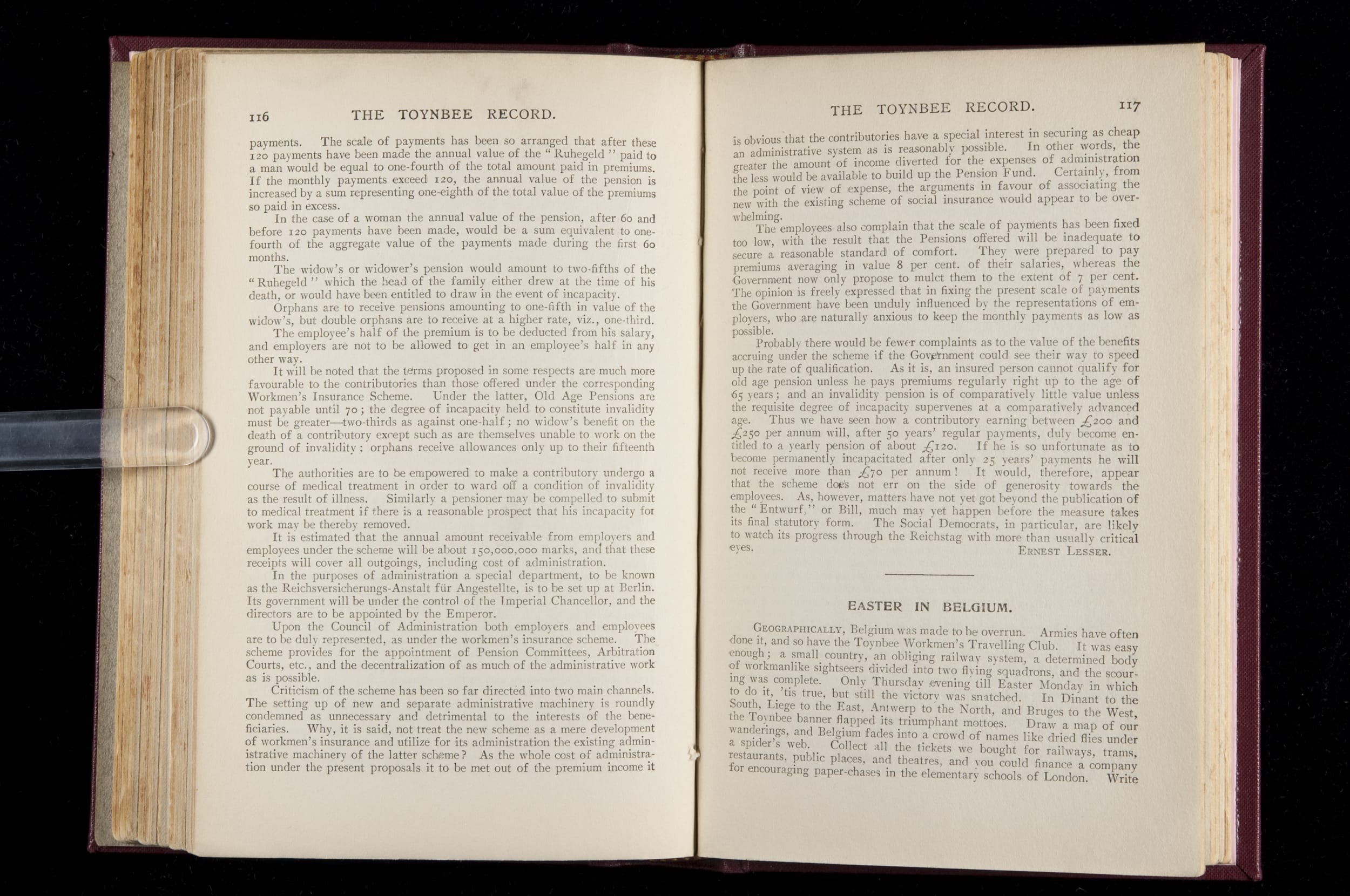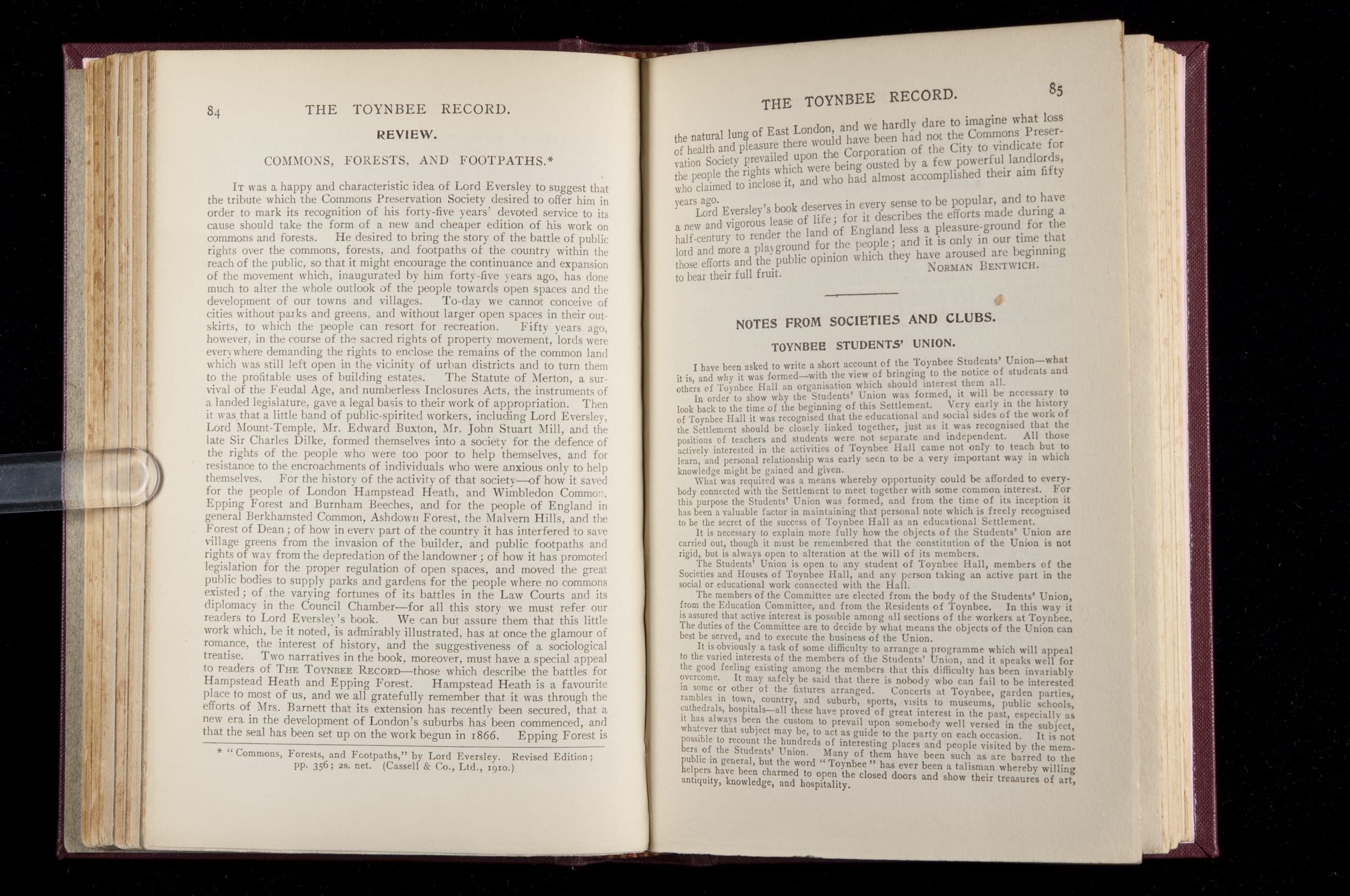 Contains detailed reports of activities and societies, clubs, reports and occasional notes. Includes an article on the Insurance for employees, the Post Office Messanger and the prevention of destitution. Also calenders of events and lists of lectures and classes and black and white photographs. 1 Volume